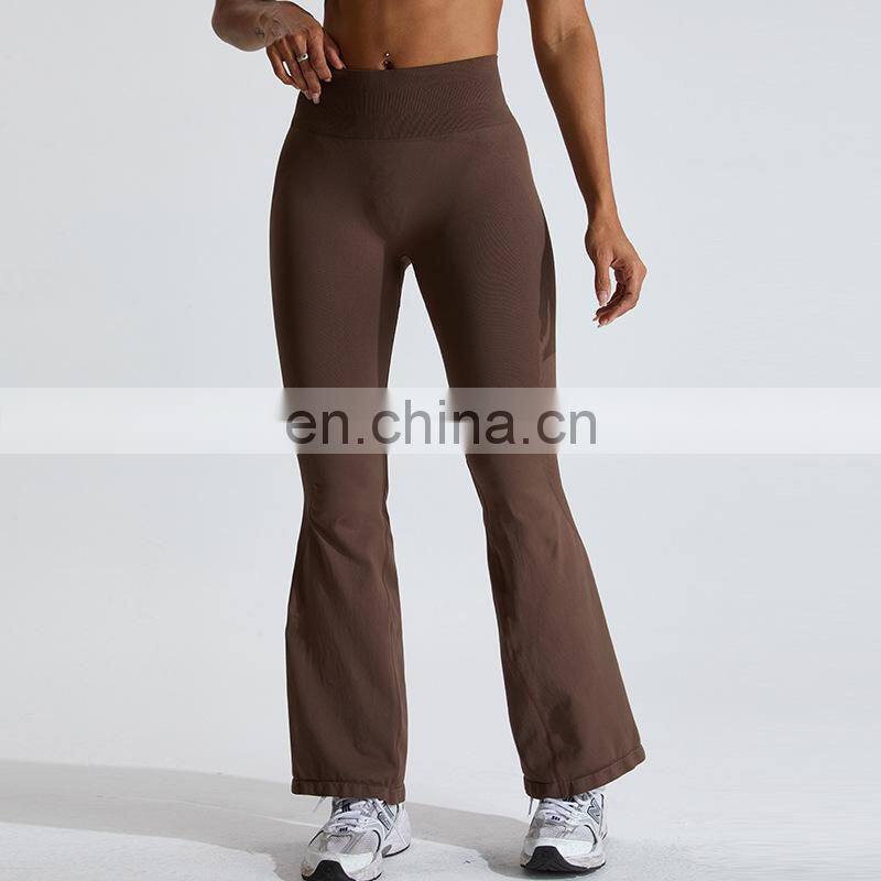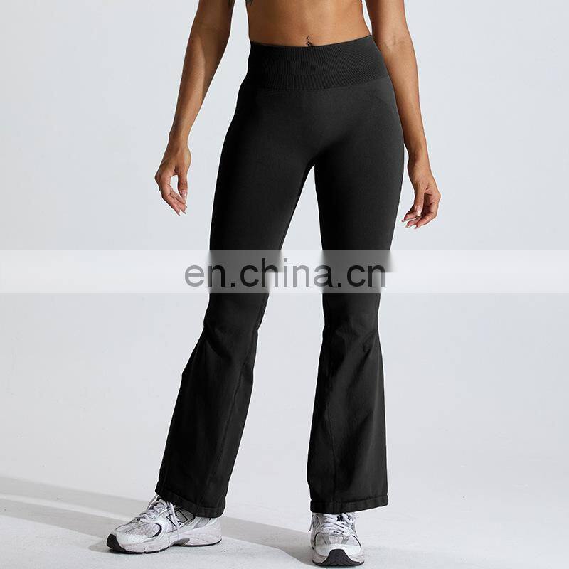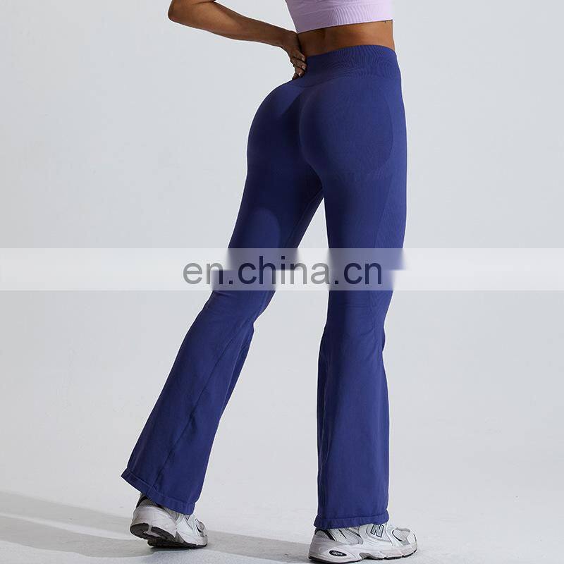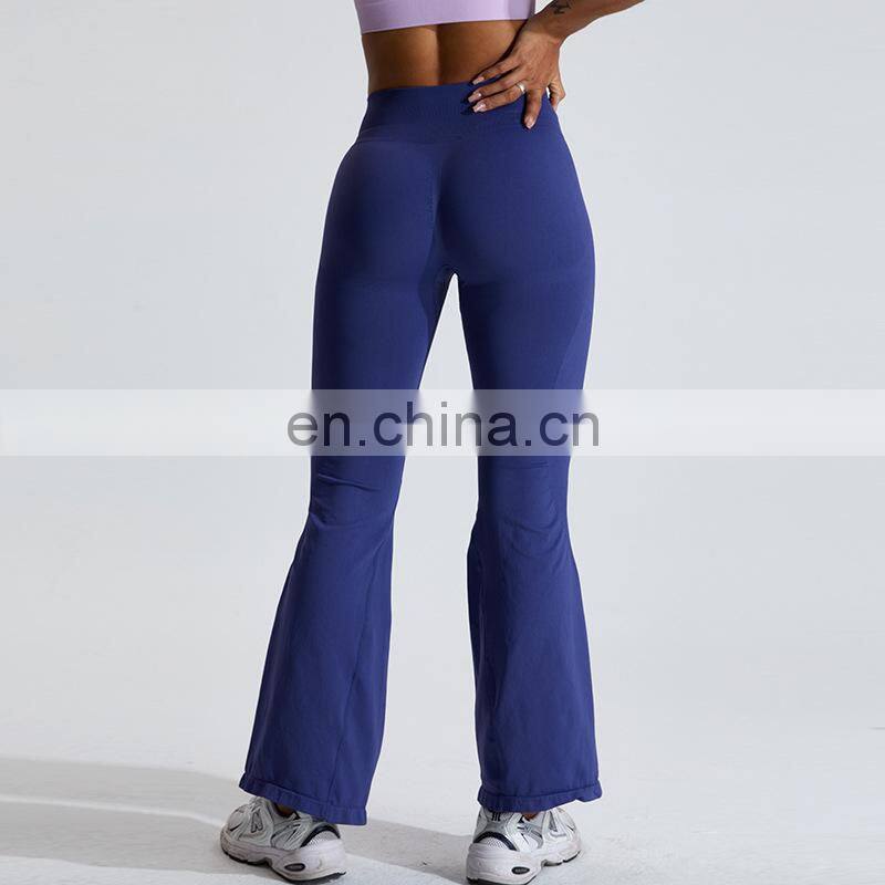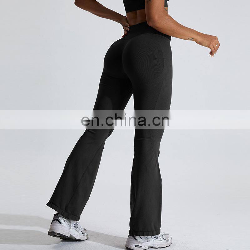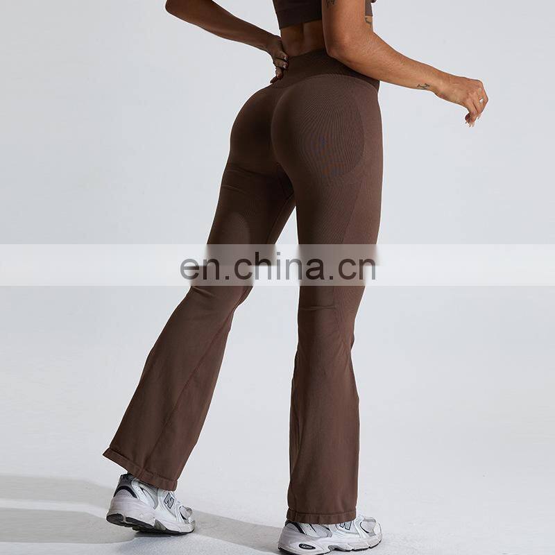 Customized Logo Wide Leg Seamless Outdoor Sports Pant Scrunch Butt High Waist Fitness Pants Women Seamless Flare Yoga Leggings