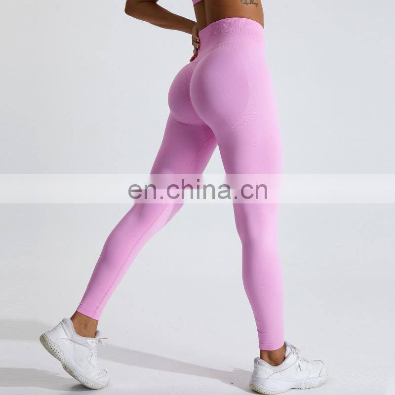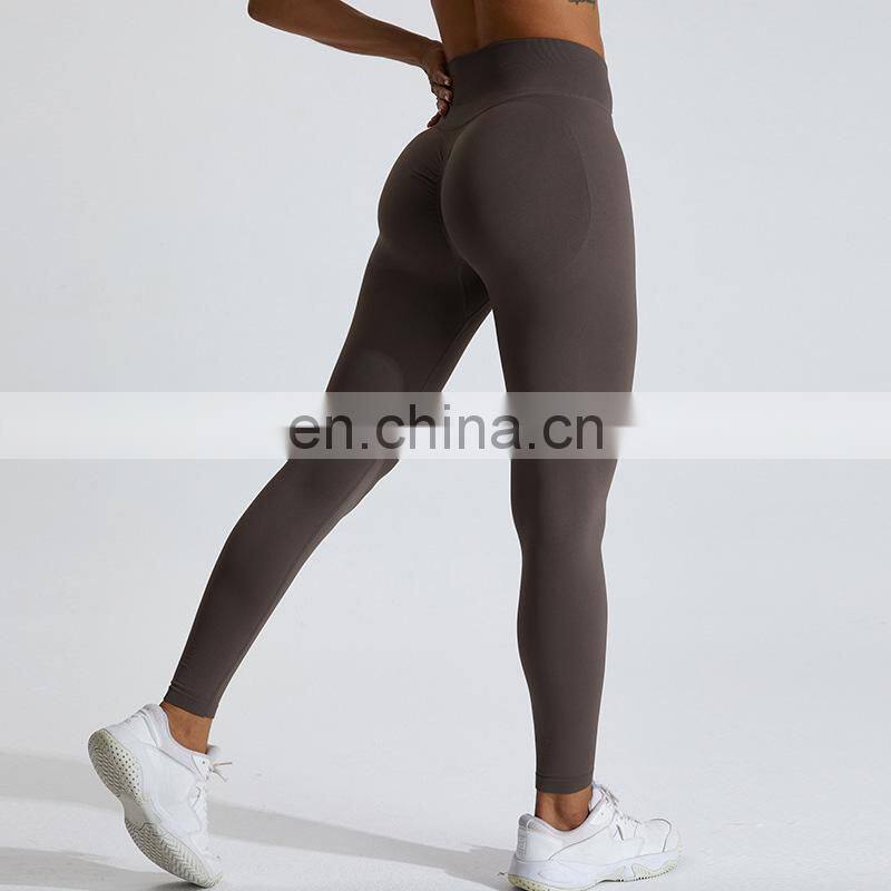 Custom Peach Hip V-Arc Waisted Running Sports Leggings Scrunch Butt High Waist Fitness Pants Seamless Yoga Leggings For Women
