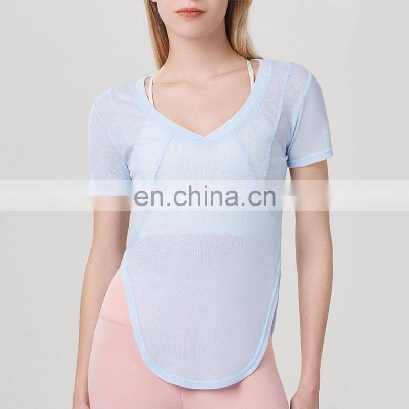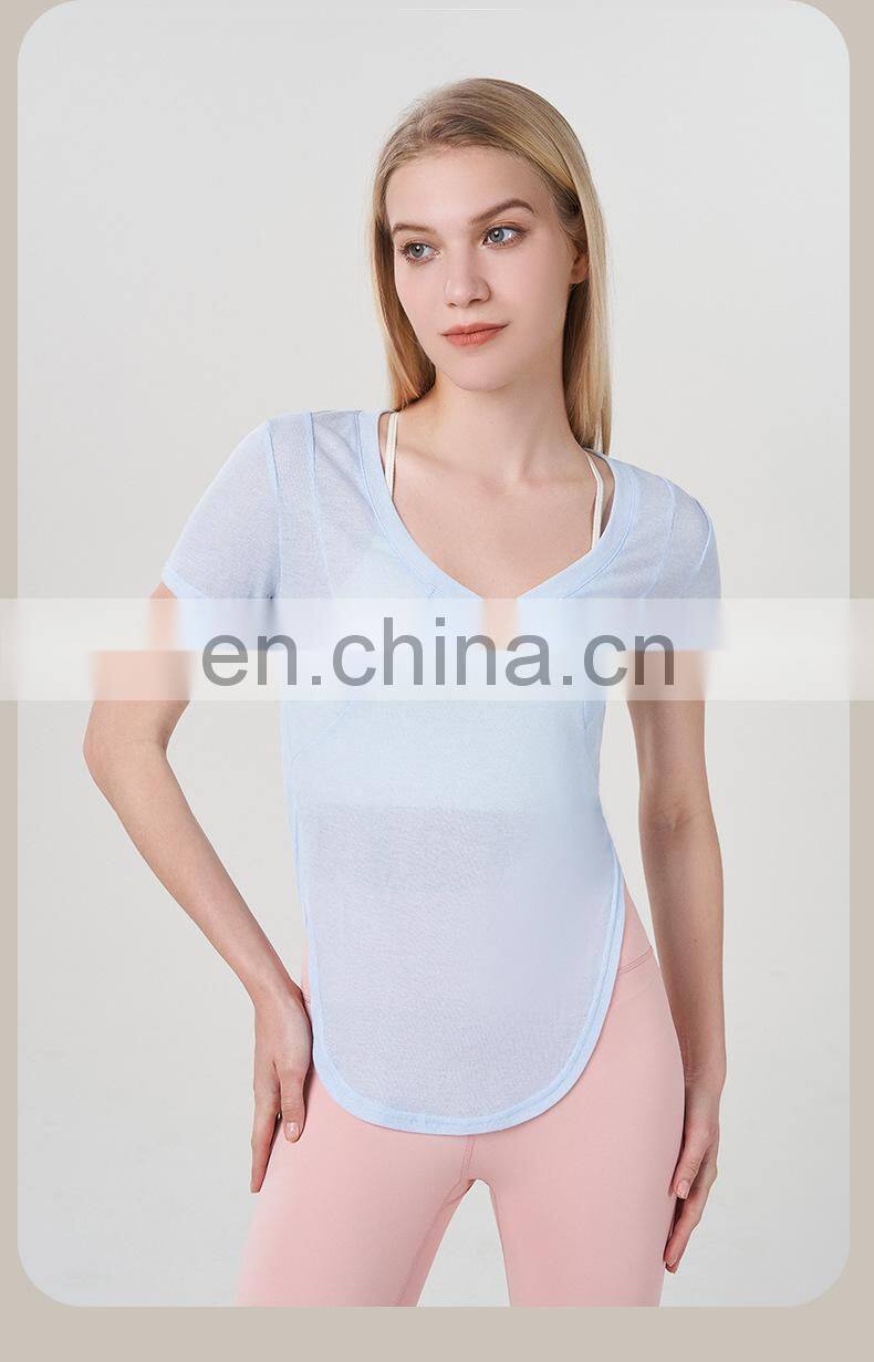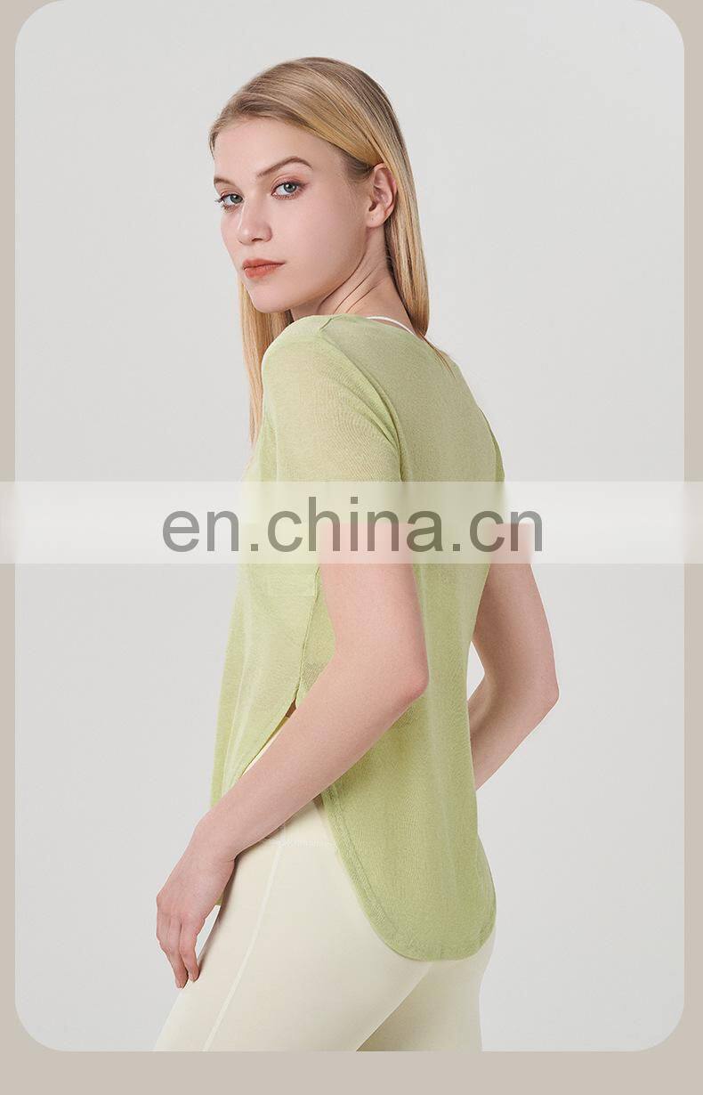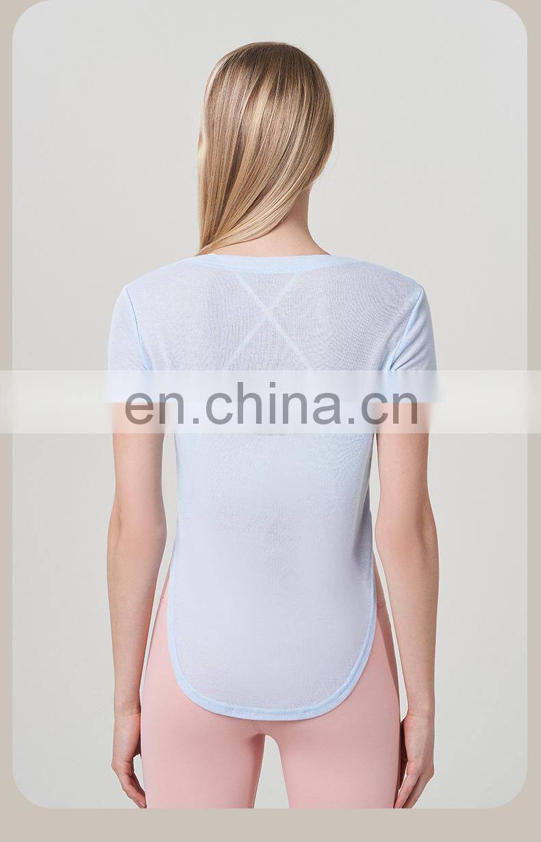 Factory Wholesale Cool Fabric Bottom Split Short Sleeve Gym Shirt Breathable Fitness T-Shirts Quick Dry Mesh Yoga Top For Women