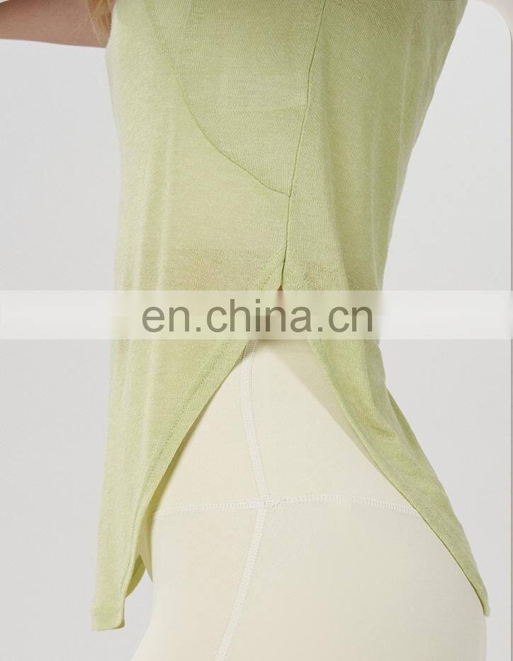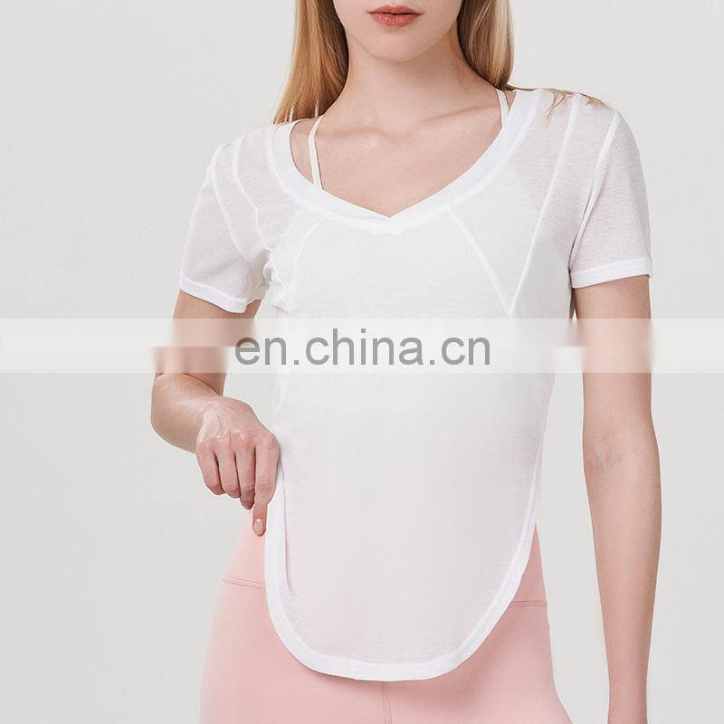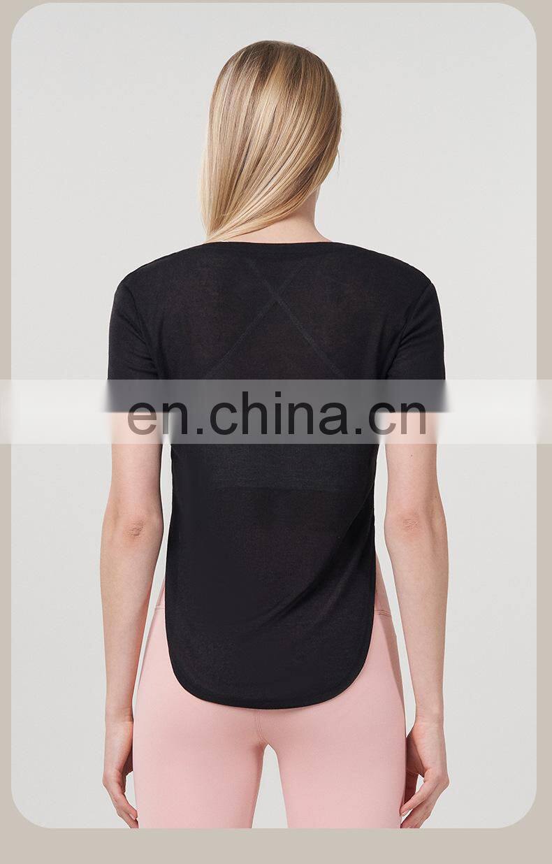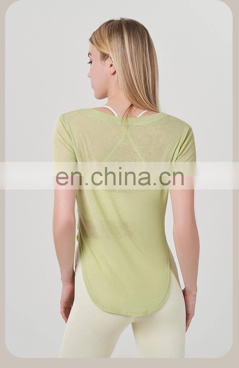 Factory Wholesale Cool Fabric Bottom Split Short Sleeve Gym Shirt Breathable Fitness T-Shirts Quick Dry Mesh Yoga Top For Women