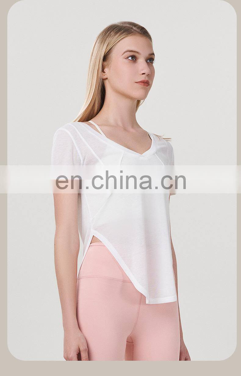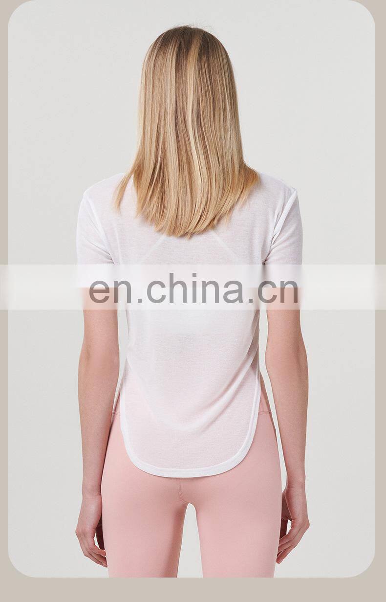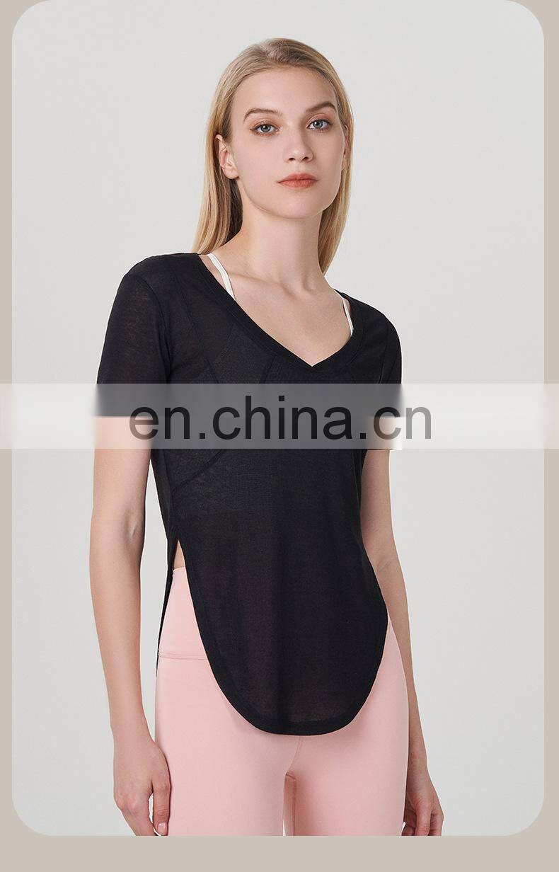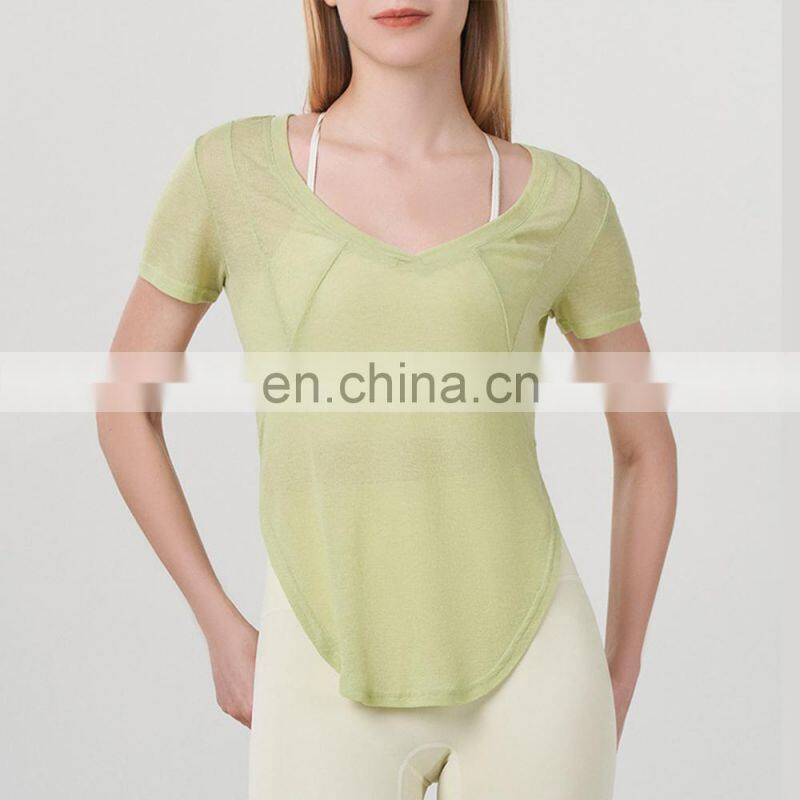 New Design Lightweight Breathable V Neck Quick Dry Short Sleeve T-Shirt Loose Sports Blouse Women Workout Gym Yoga Wear Shirts