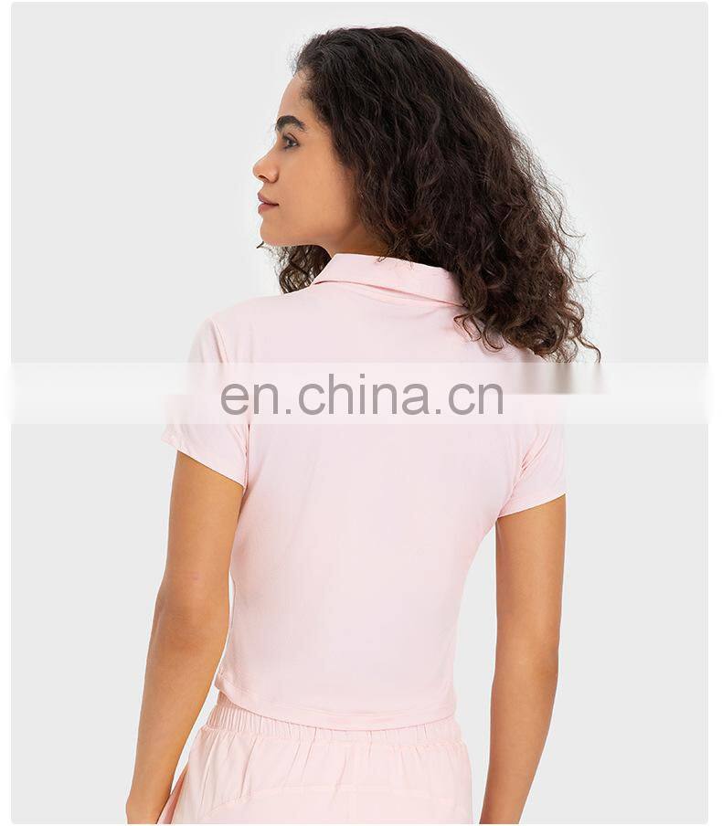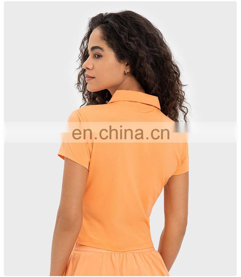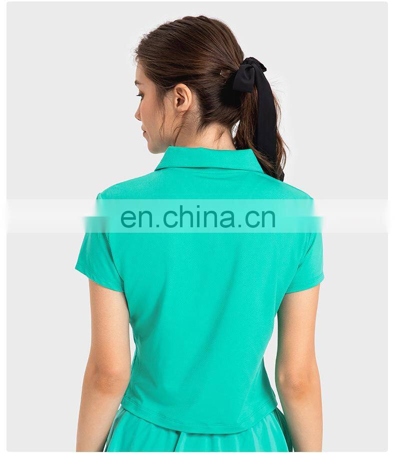 Wholesale Quick Dry Cool Fabric Short Sleeve Tennis Sports Yoga Polo Shirt Women Outdoor Lightweight Fitness Gym Wear Clothes