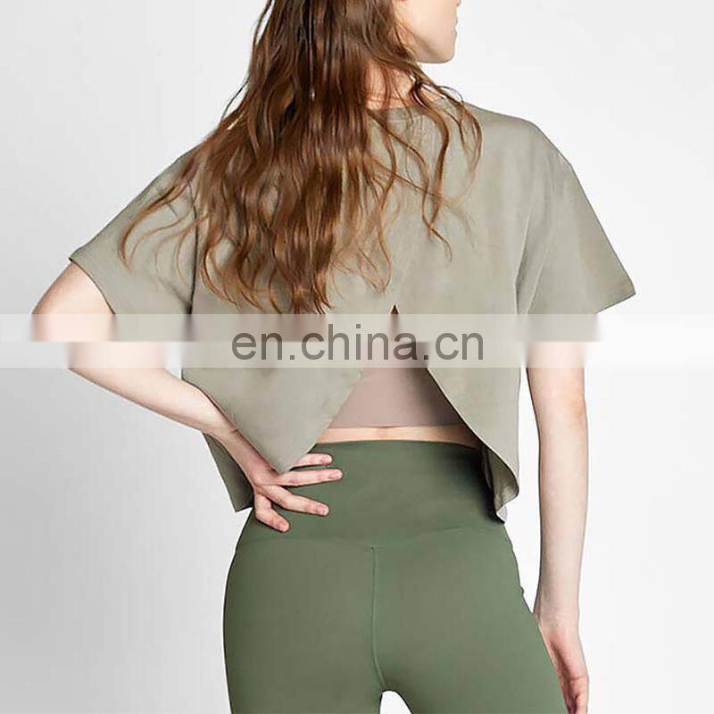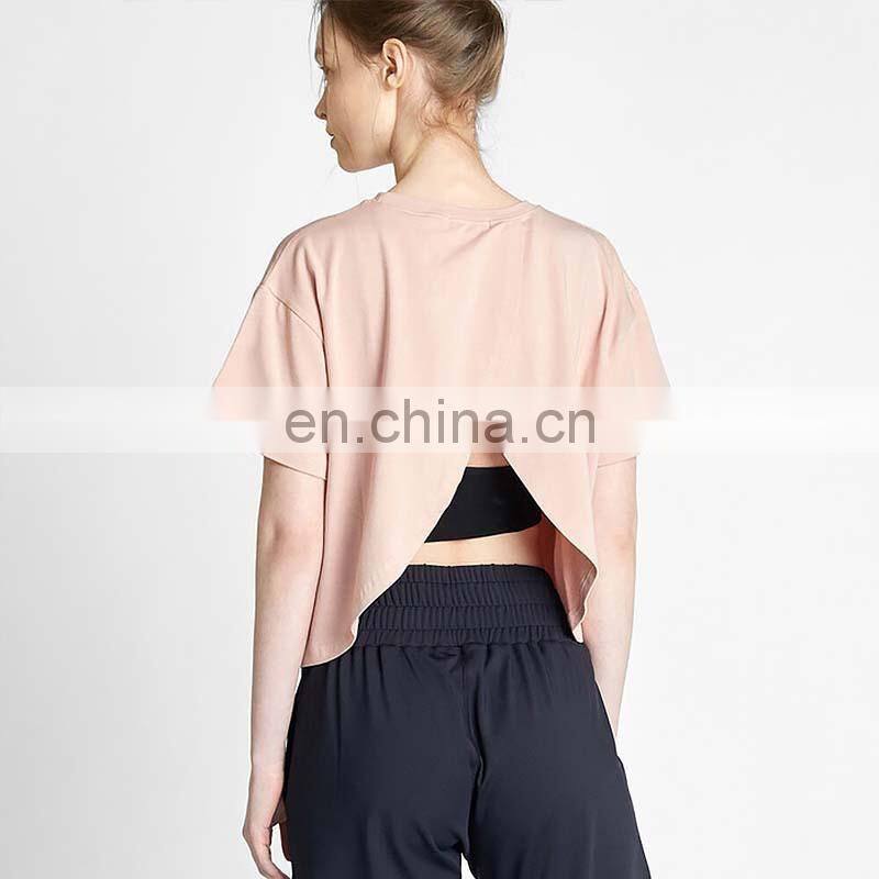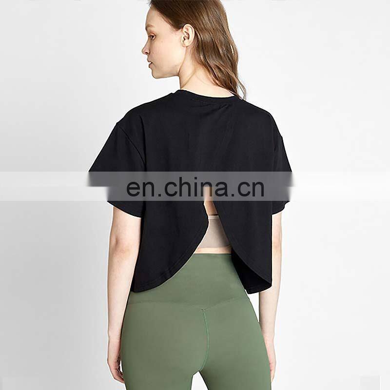 Home > Products > Yoga T shirt > Sexy Cotton Short Sleeve Backless T-Shirt 2023 Fashion Street Wear Casual Blank Gym Top Workout Sports Running Clothes For Women