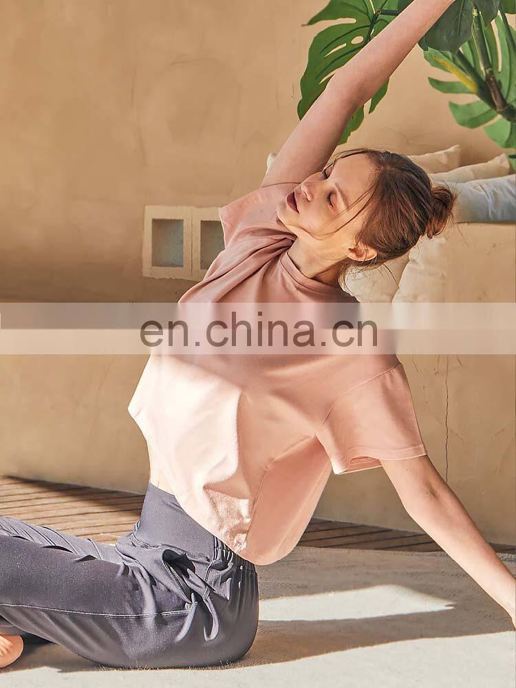 Wholesale New High Neck Slim Fit Sport Yoga Shirt Ladies Gym Fitness Wear Short Sleeve Top Sweat-Wicking Crop Tracksuit