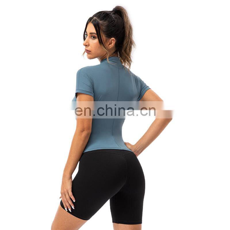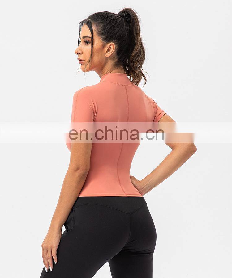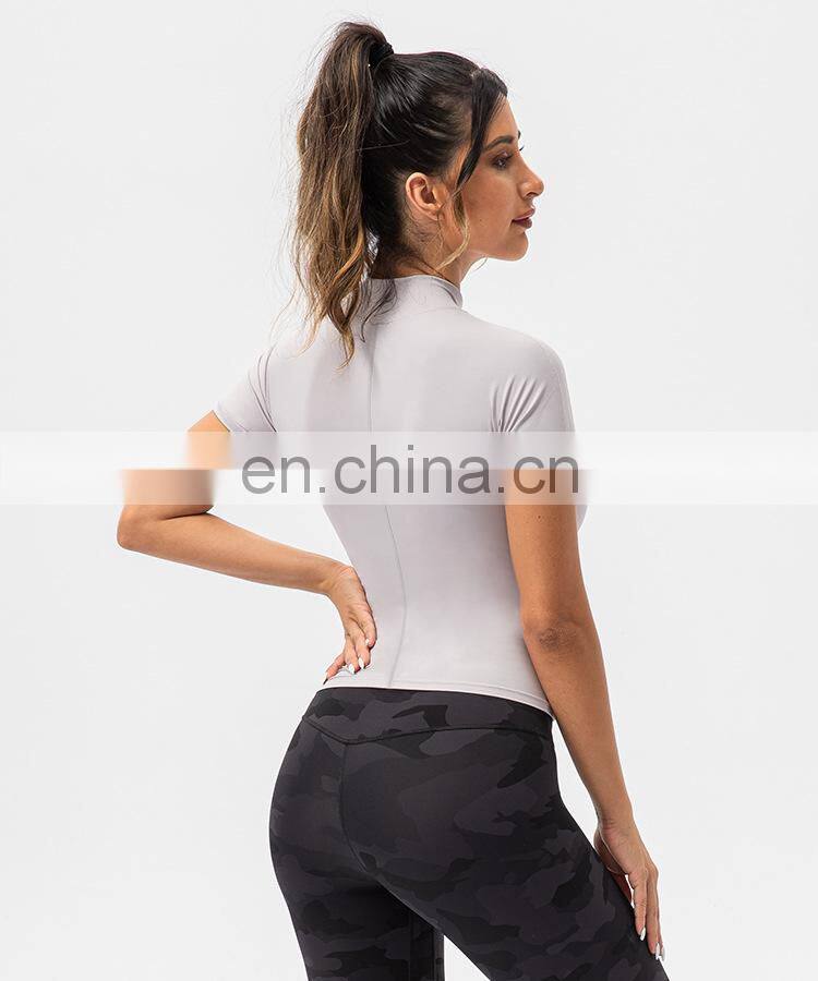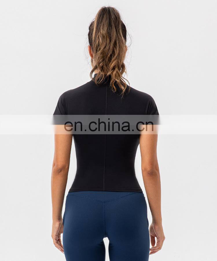 Ready To Ship Blank Custom Logo Women Sportswear Yoga Top Slim Fit Half Zipper Gym Fitness Wear T Shirt