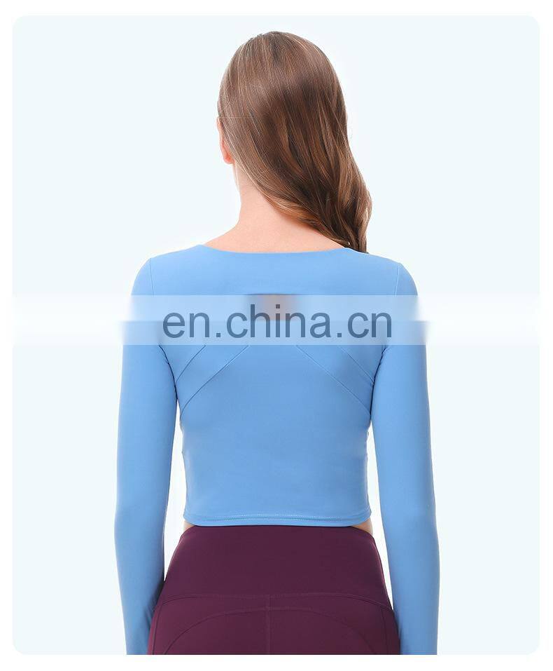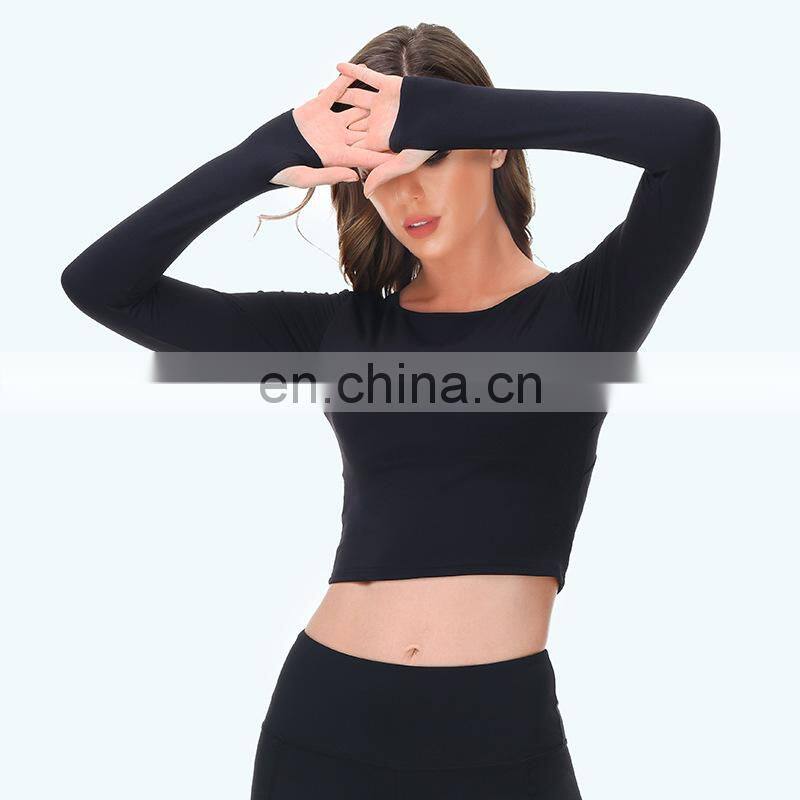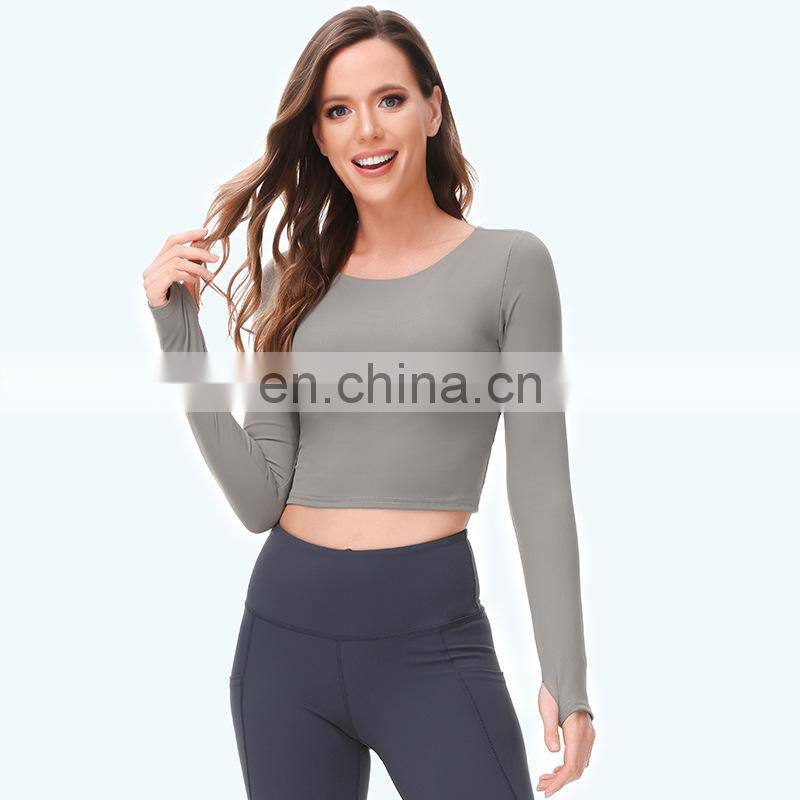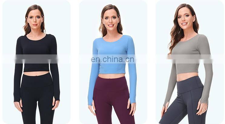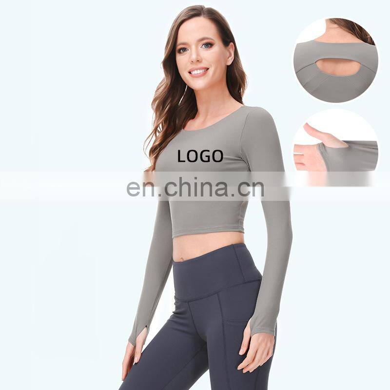 Wholesale Custom Anti-Bacterial Women Gym Wear Fitness Crop Top Long Sleeve Sport Shirt Ladies Workout Exercise Running Clothing