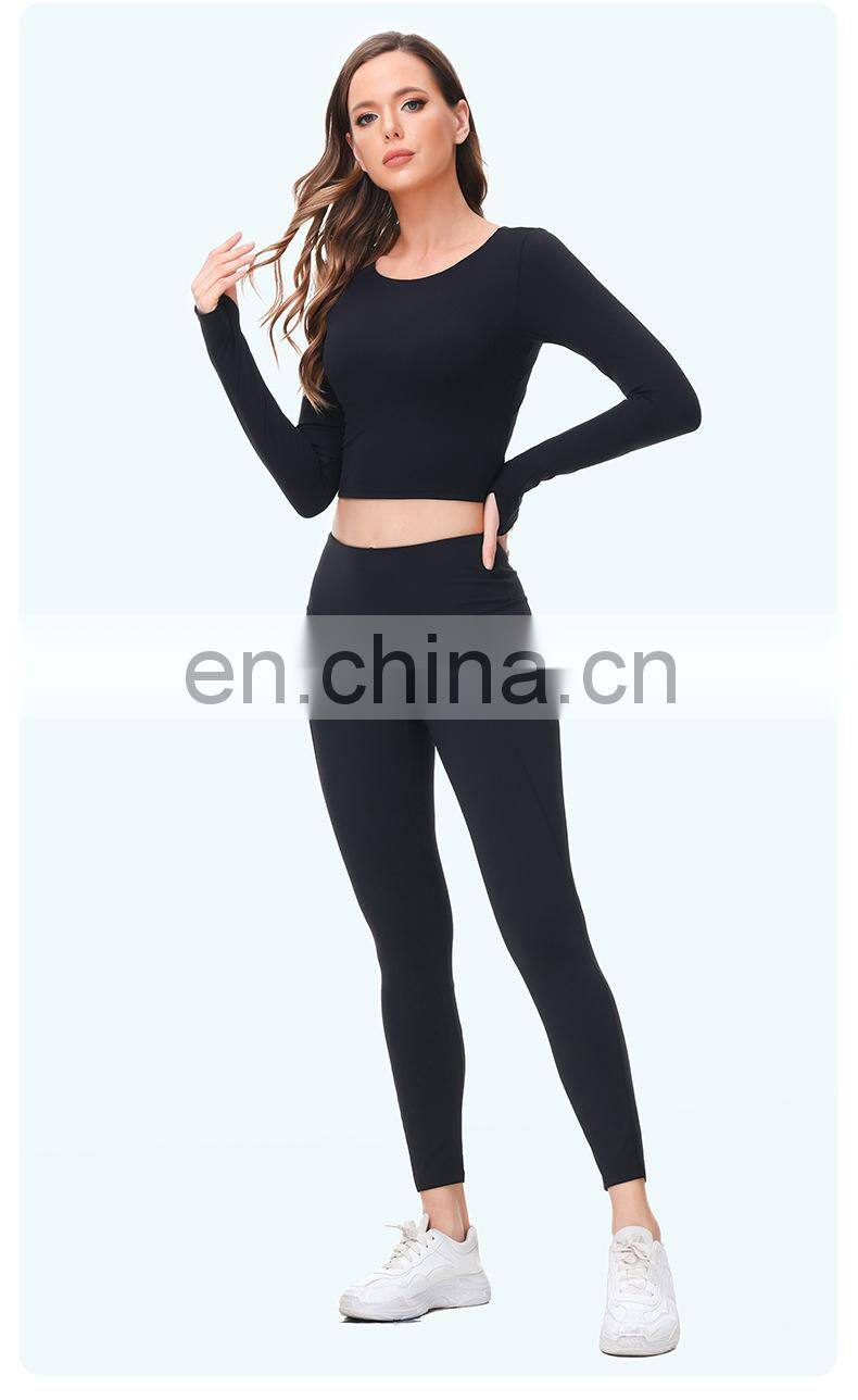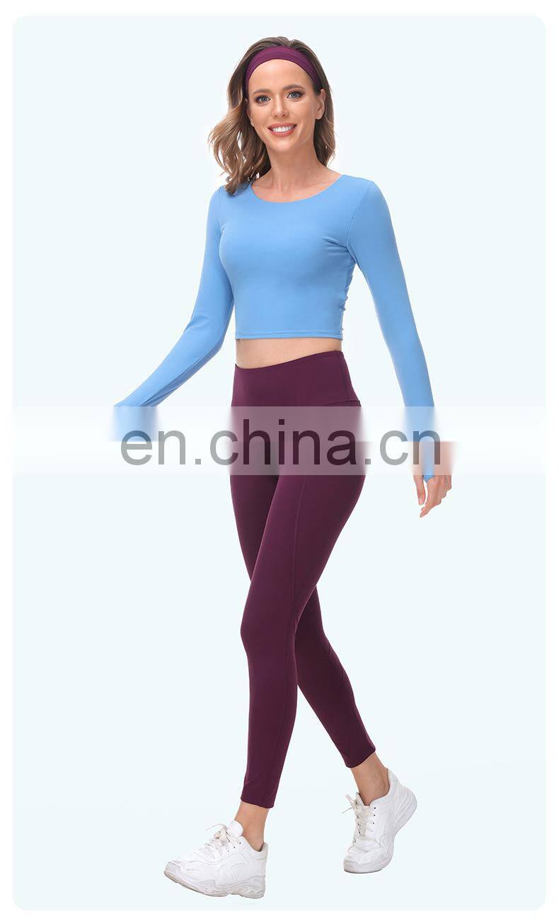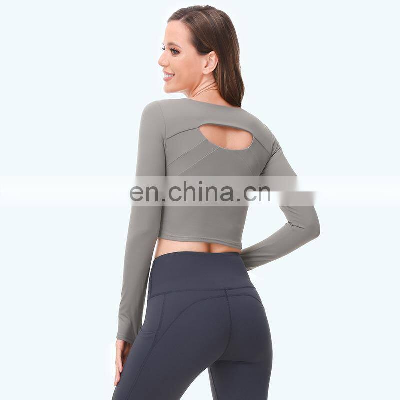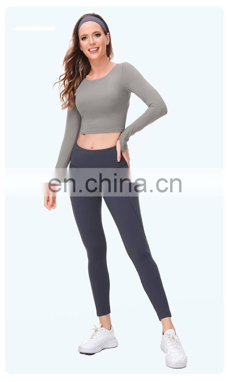 Wholesale Custom Anti-Bacterial Women Gym Wear Fitness Crop Top Long Sleeve Sport Shirt Ladies Workout Exercise Running Clothing