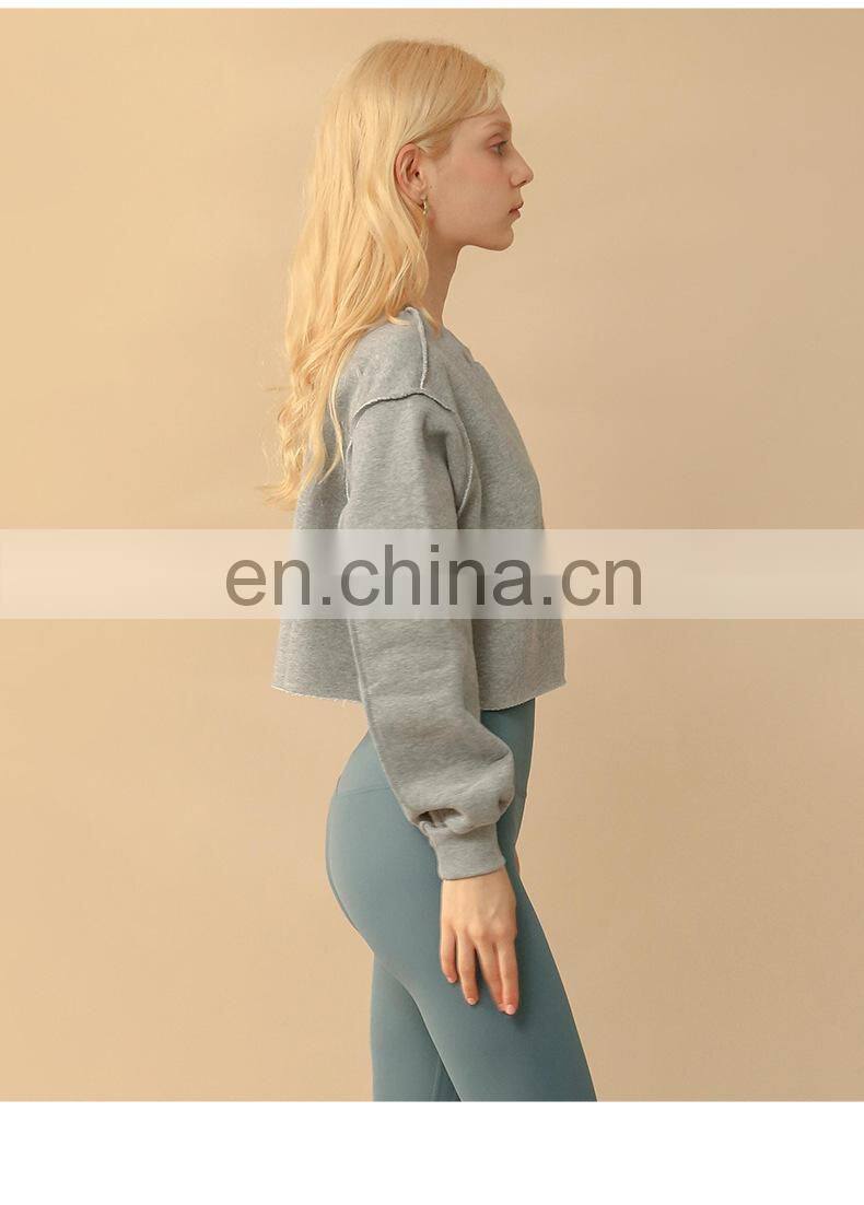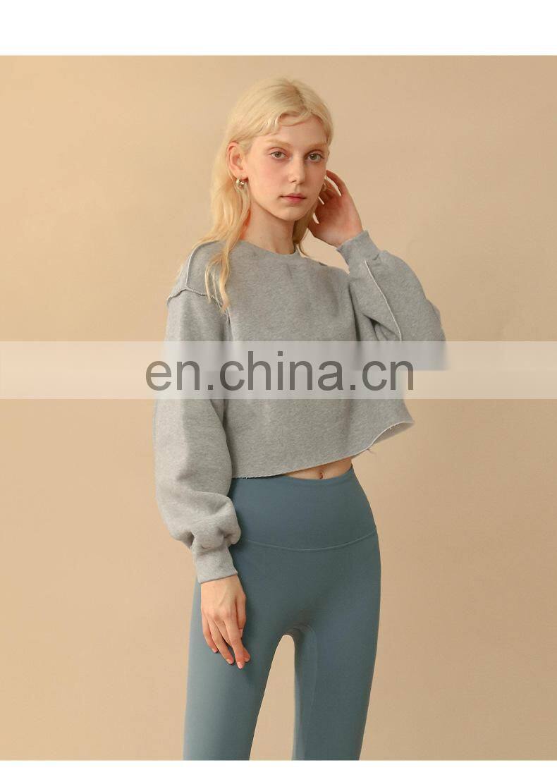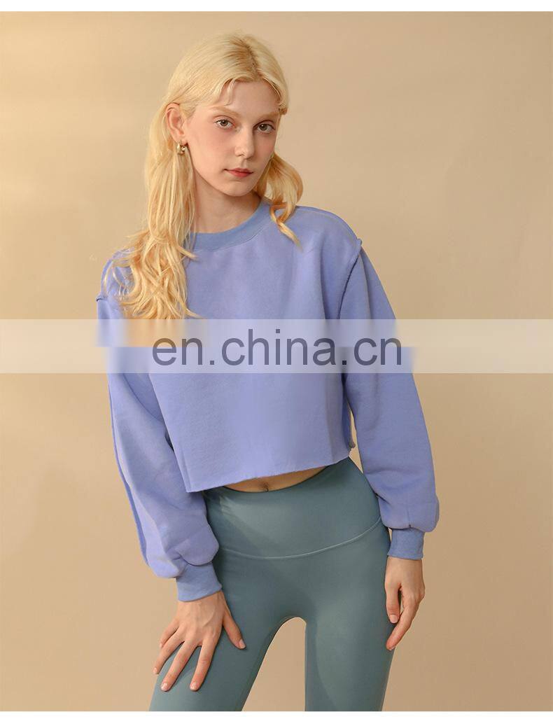 Custom Logo Casual Loose Sweatshirt Women Fashion Long Sleeve Sports Wear Crop Top Women's Pullover Shirt Fitness Yoga Clothing