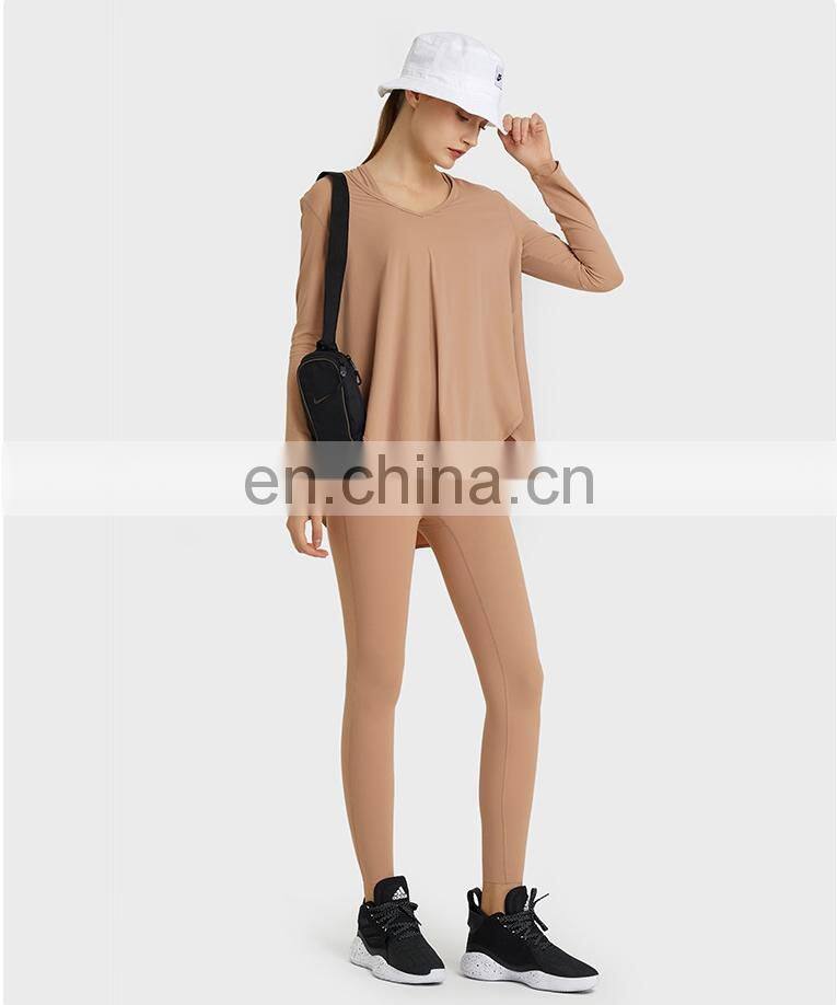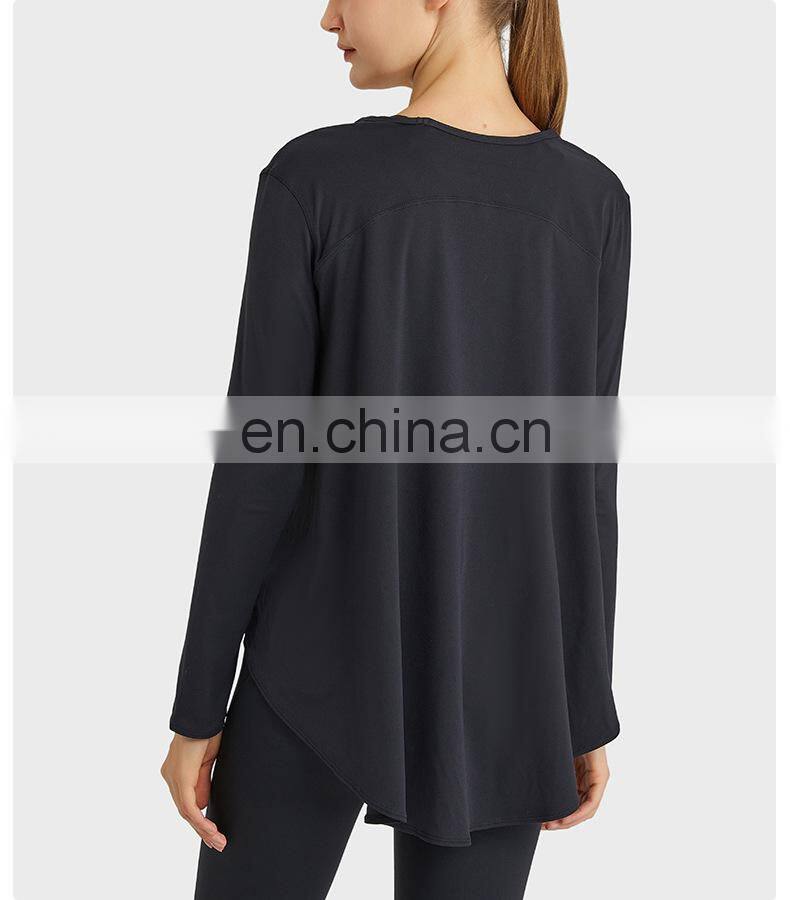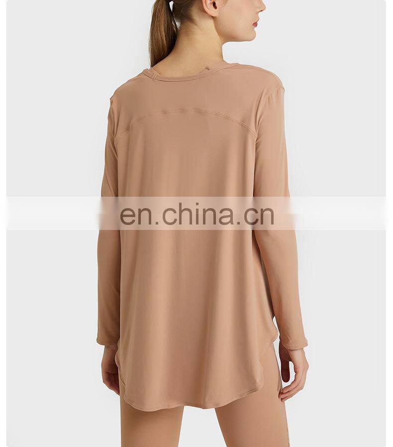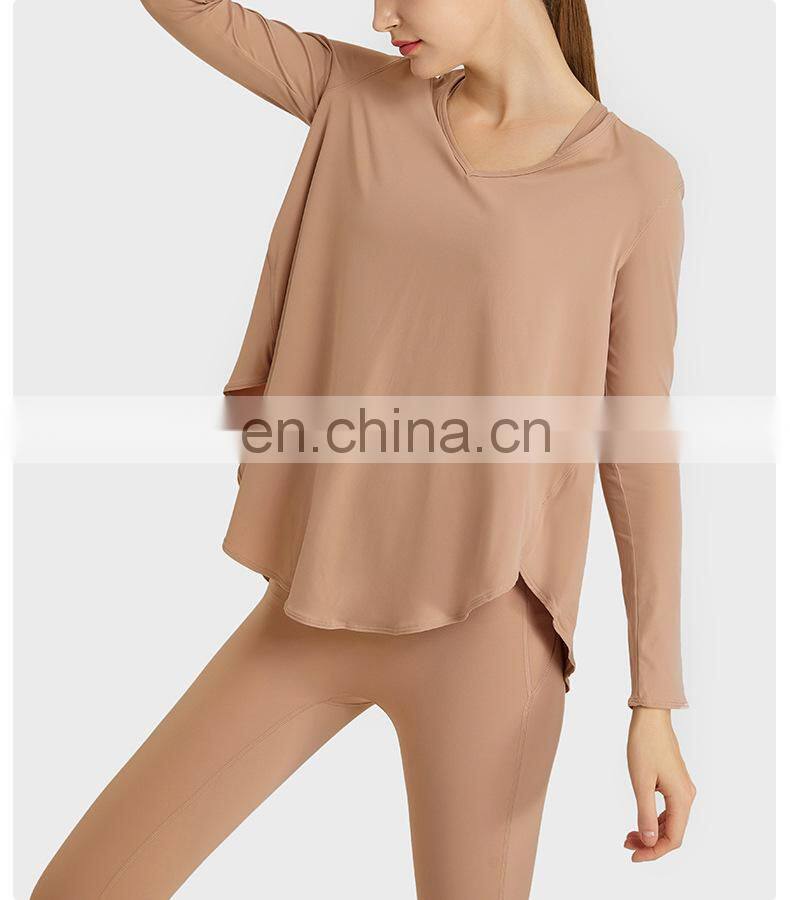 Wholesale Custom Logo Loose Casual Yoga Tee Sportswear Long Sleeves T-shirt Women Gym Top Fitness Clothing