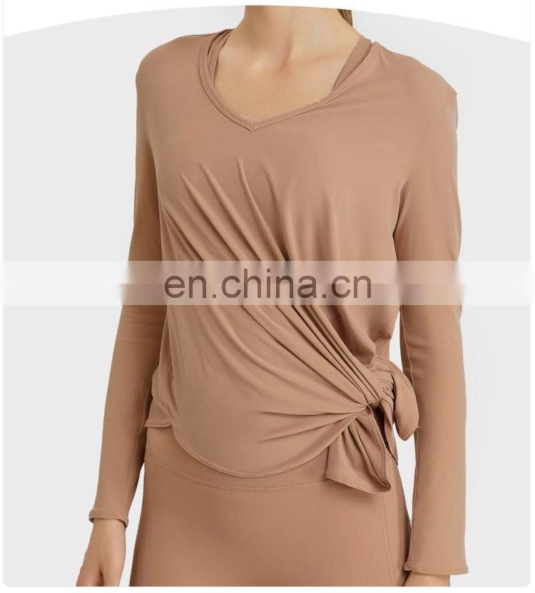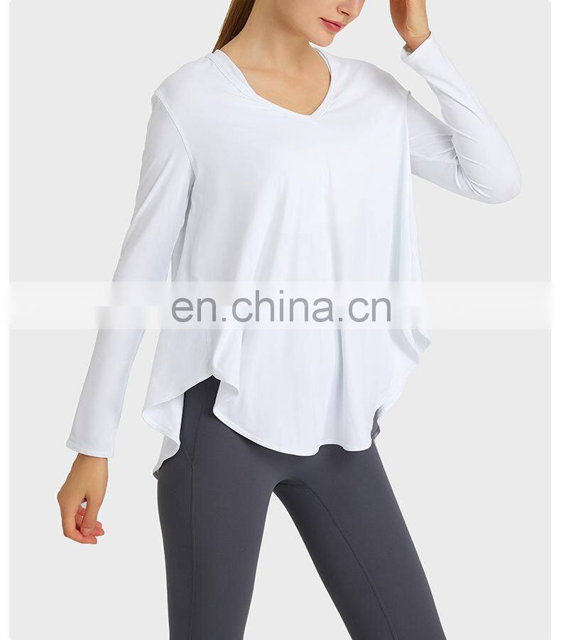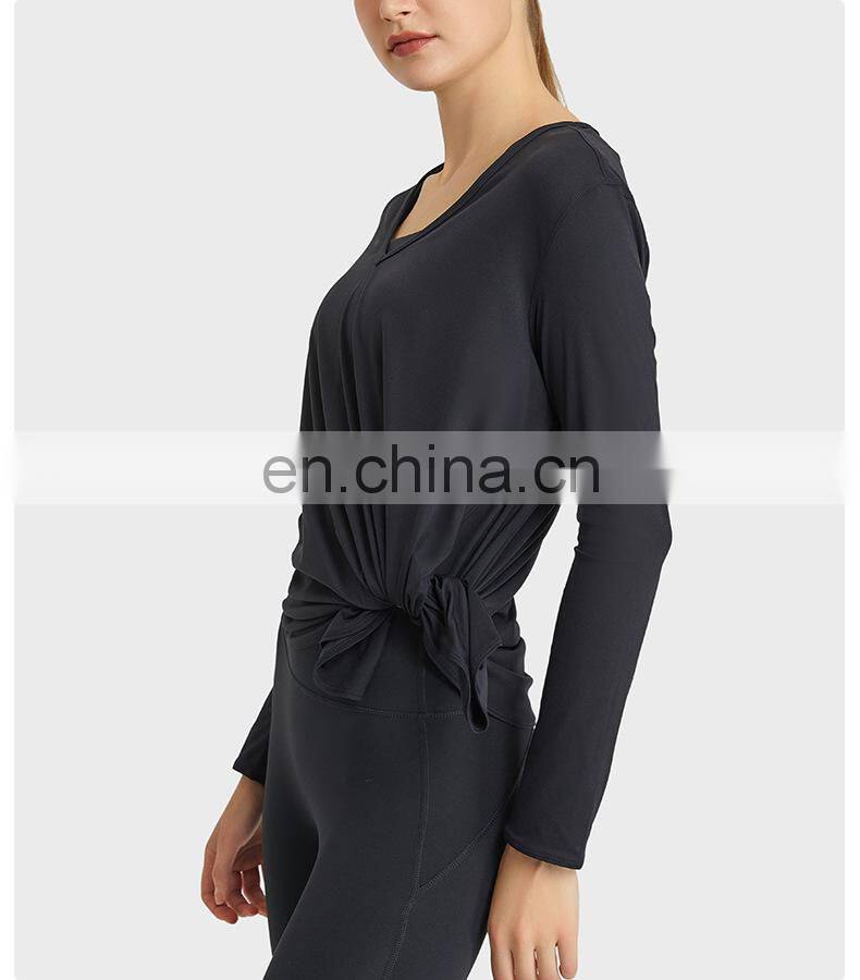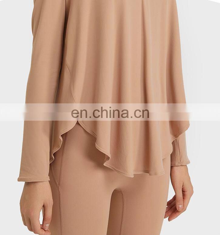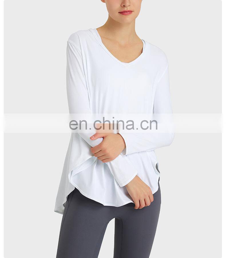 Wholesale Custom Logo Loose Casual Yoga Tee Sportswear Long Sleeves T-shirt Women Gym Top Fitness Clothing