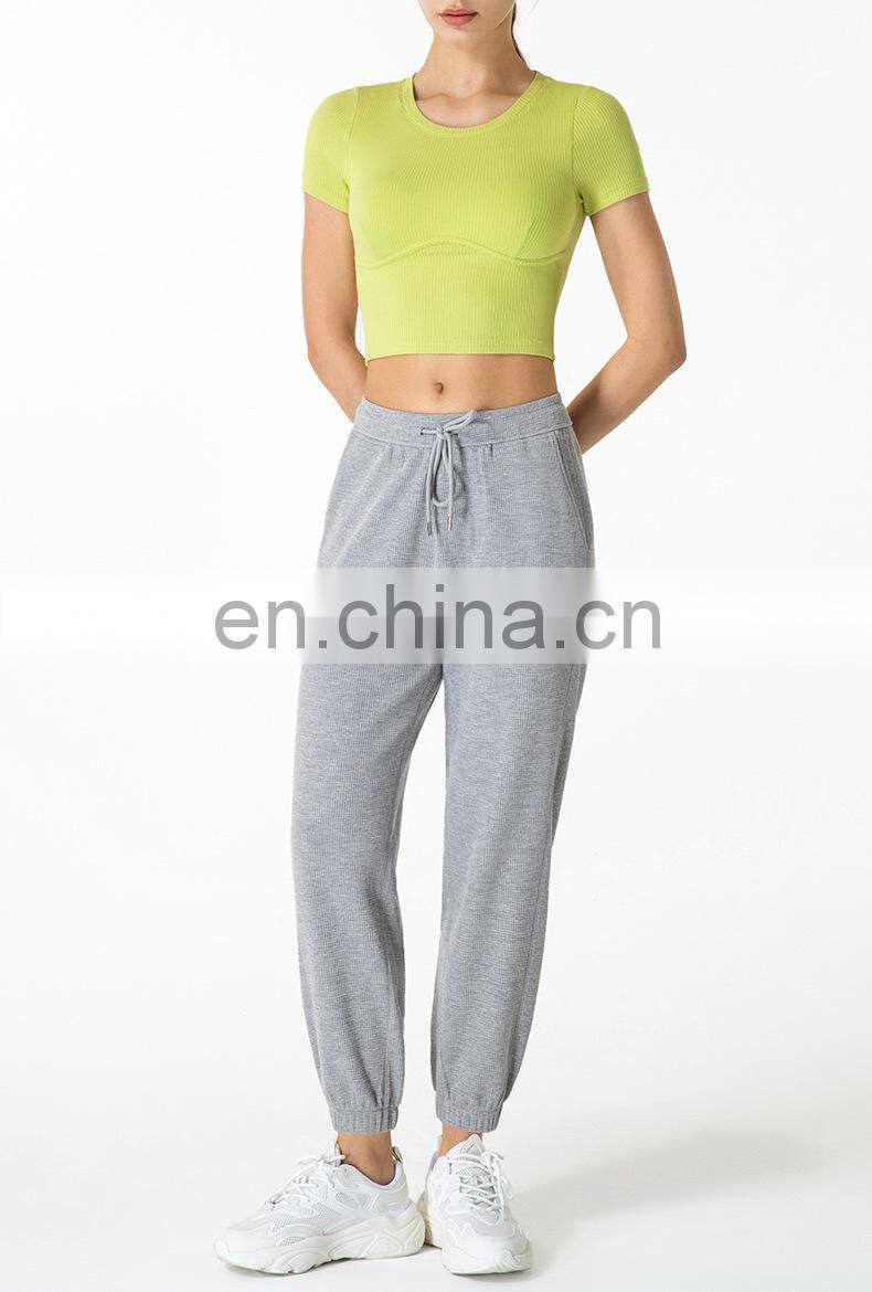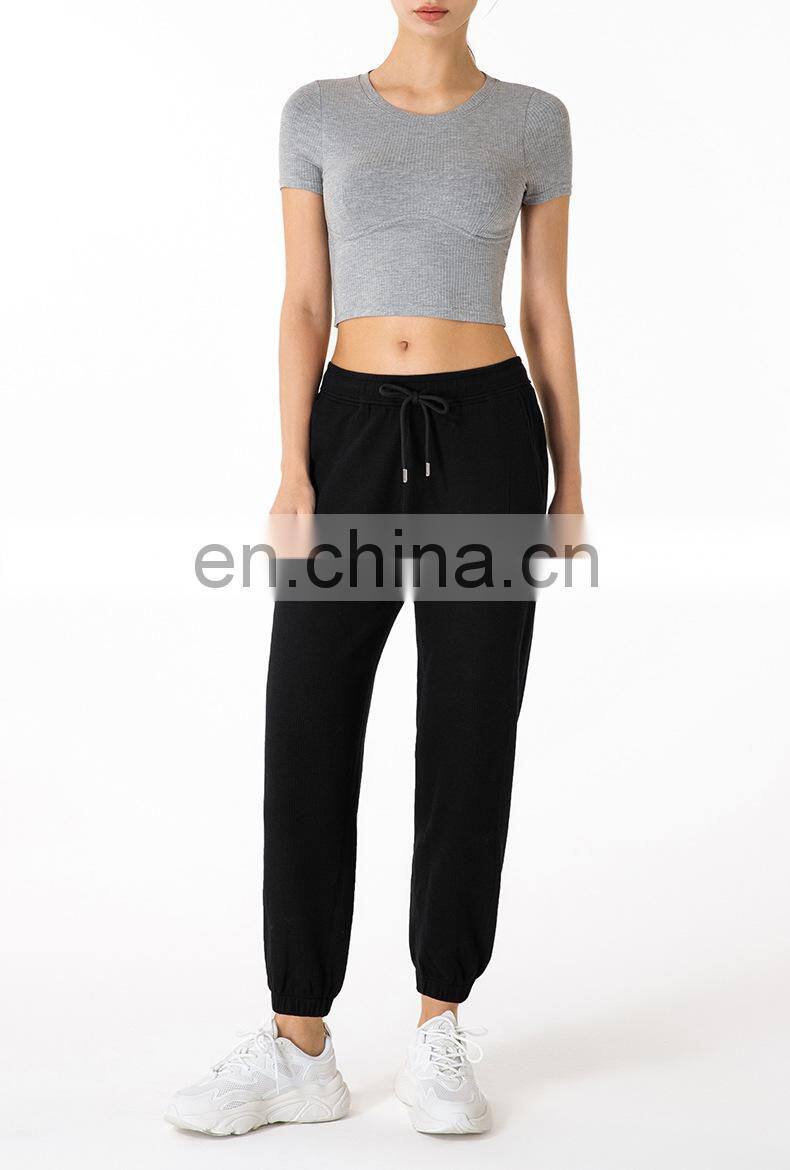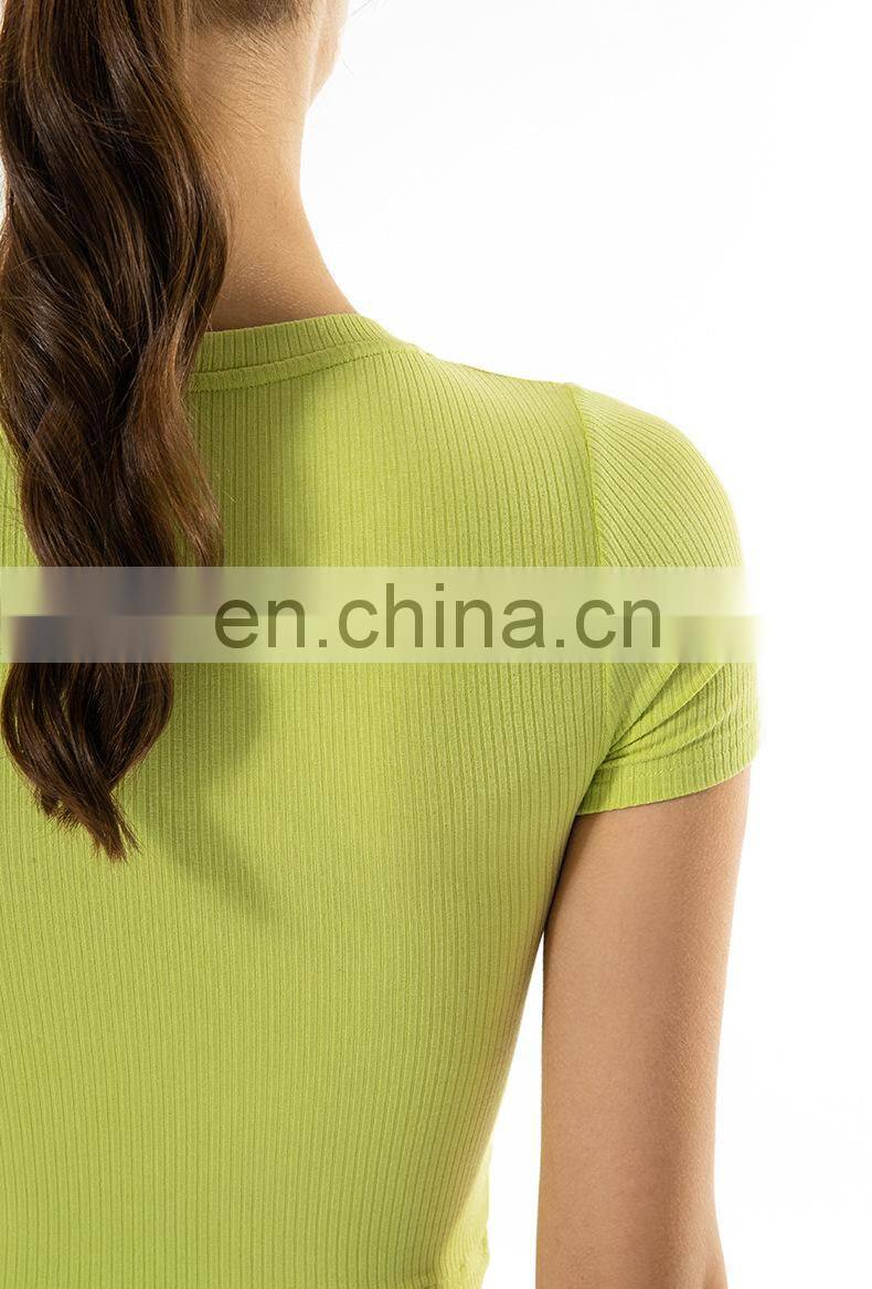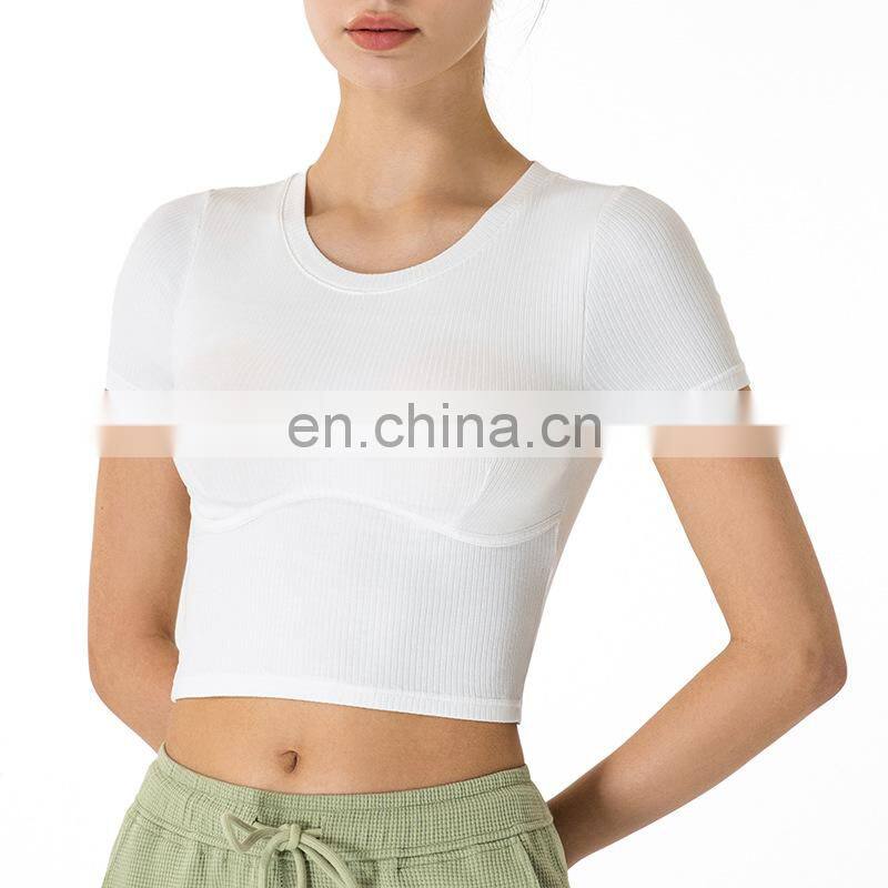 Wholesale Blank Custom Ribbed Breathable Fitness Sports Workout T-Shirt Crop Top Solid Color Gym Athletic Yoga Tee Shirts Women