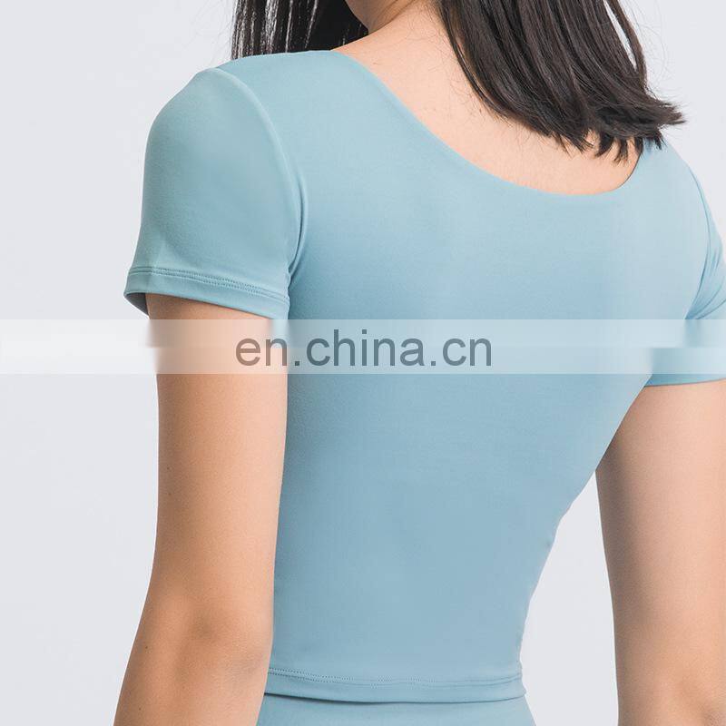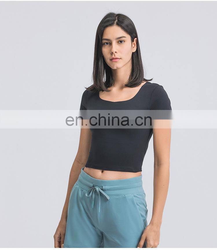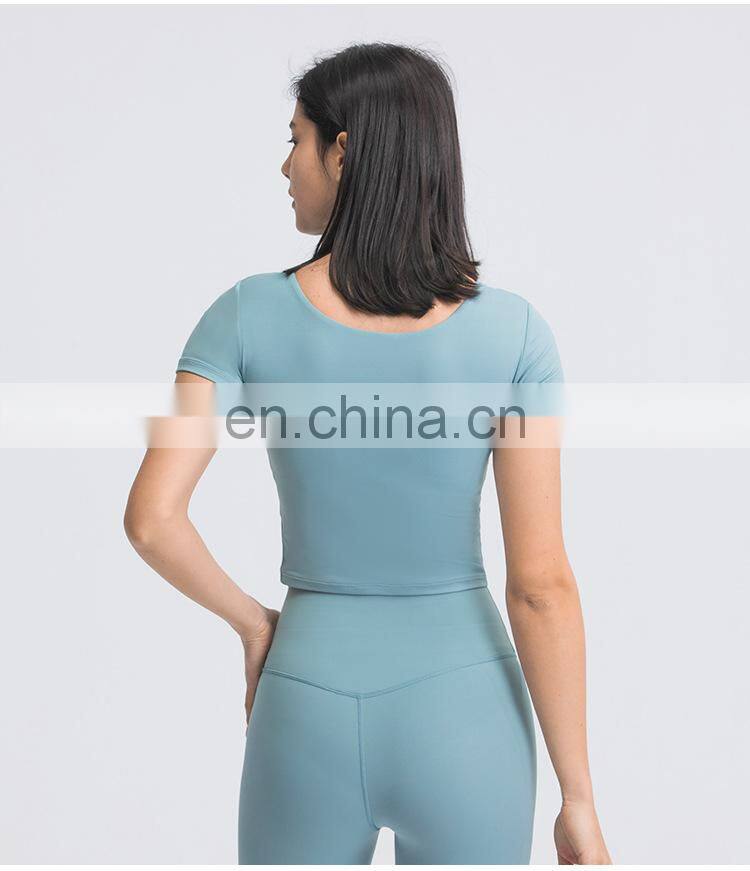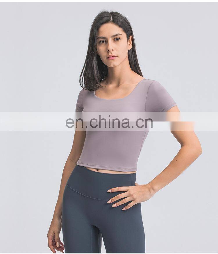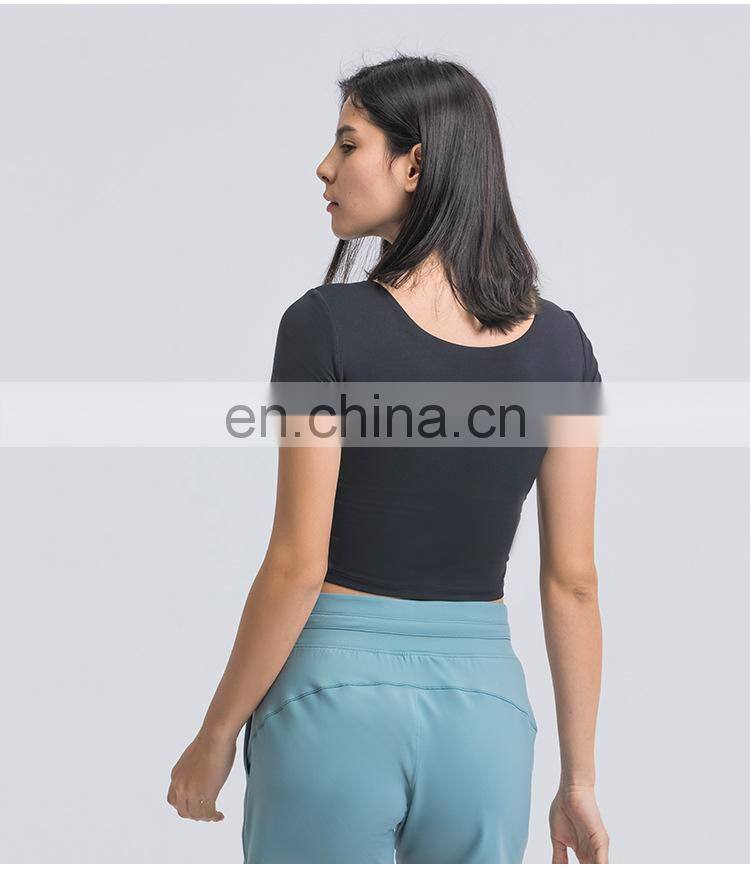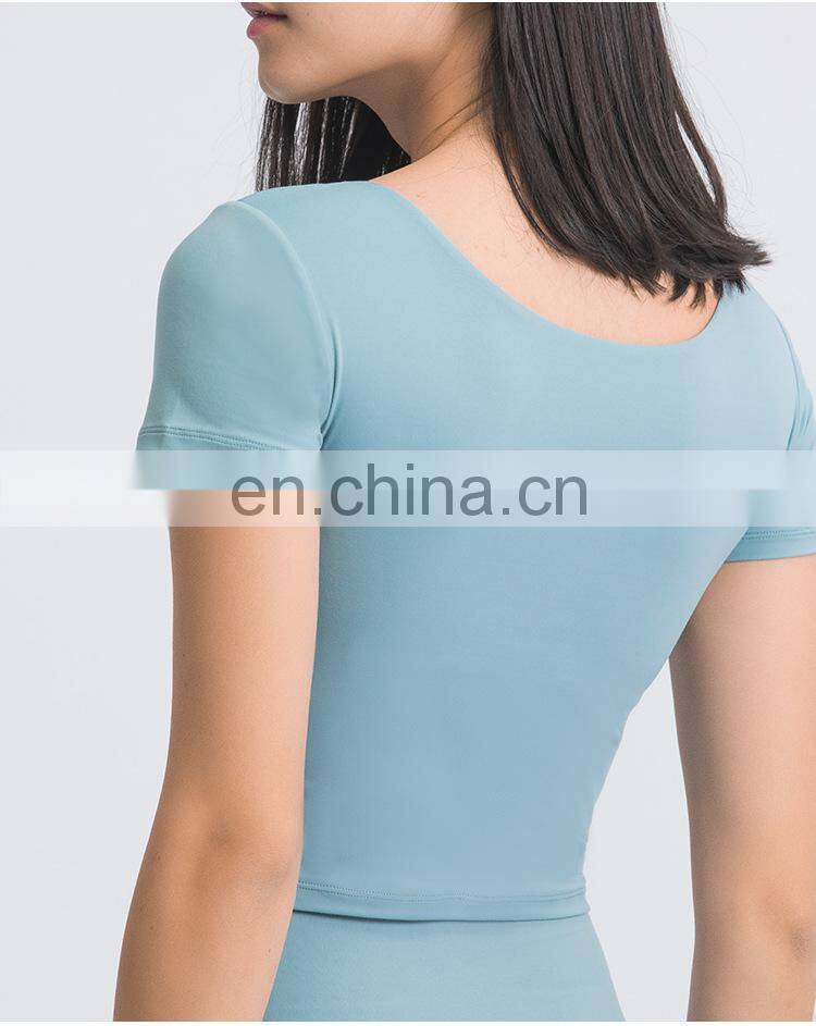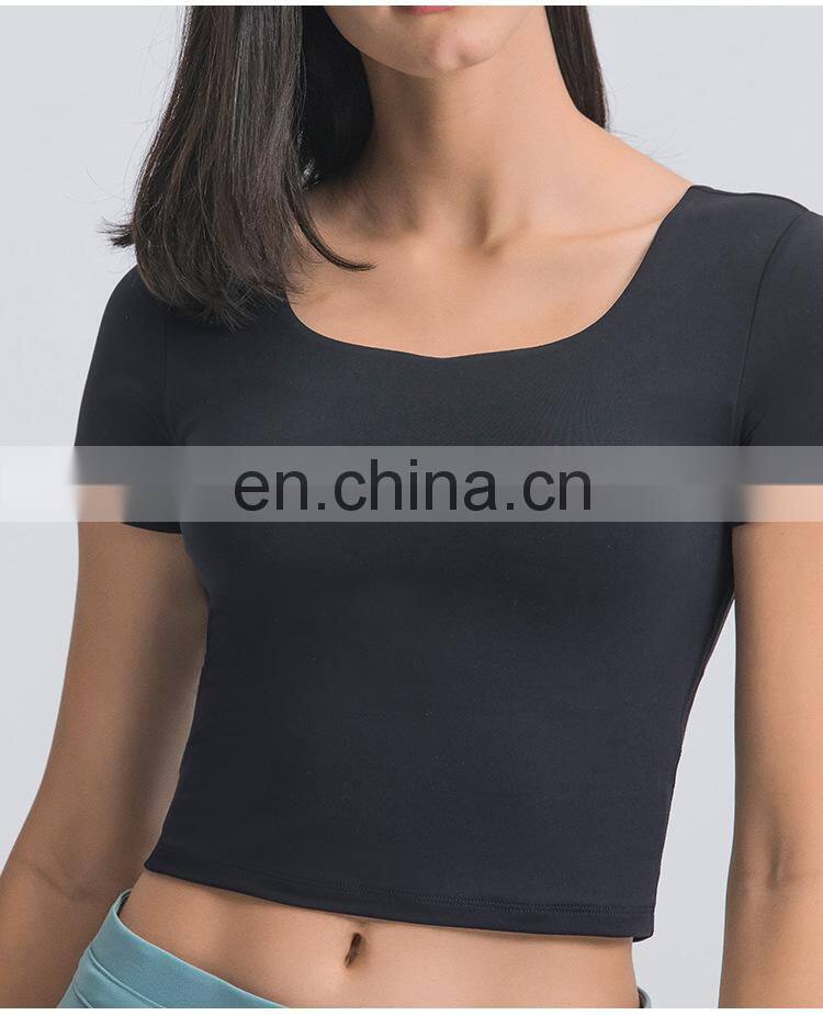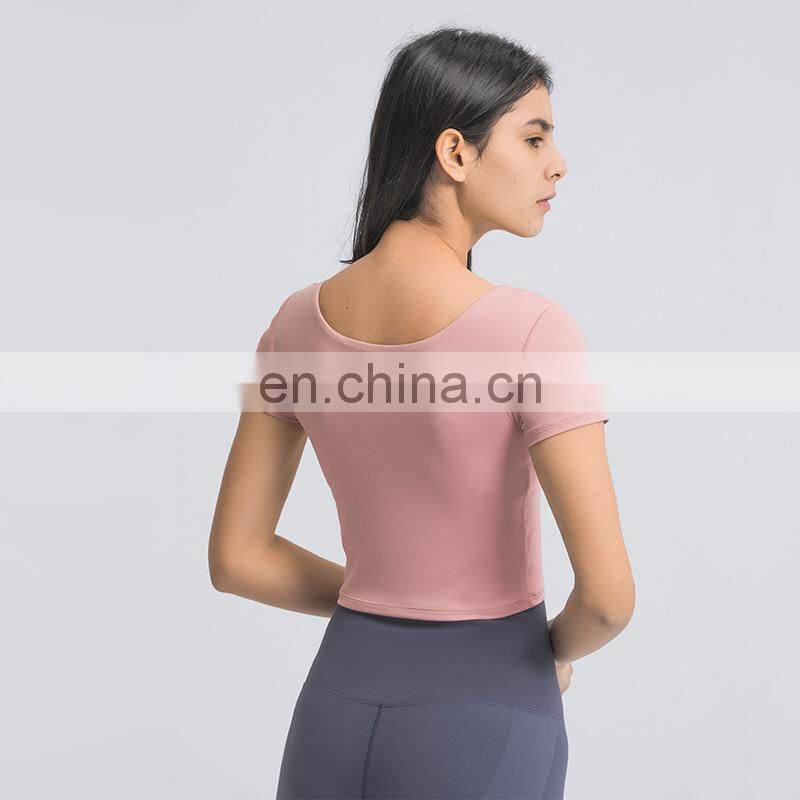 New Arrival Women Beauty Back Yoga Crop Tops Short Sleeve Tee Shirt With Removable Pads Workout Fitness Gym Clothes