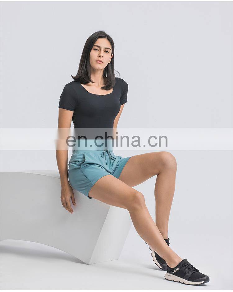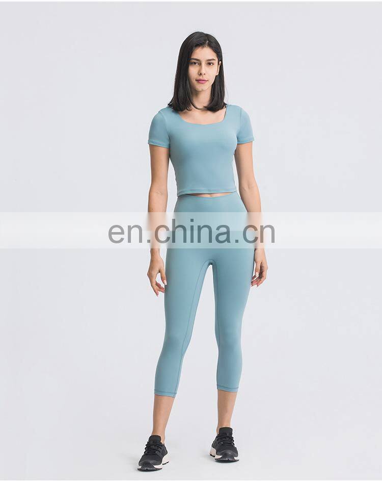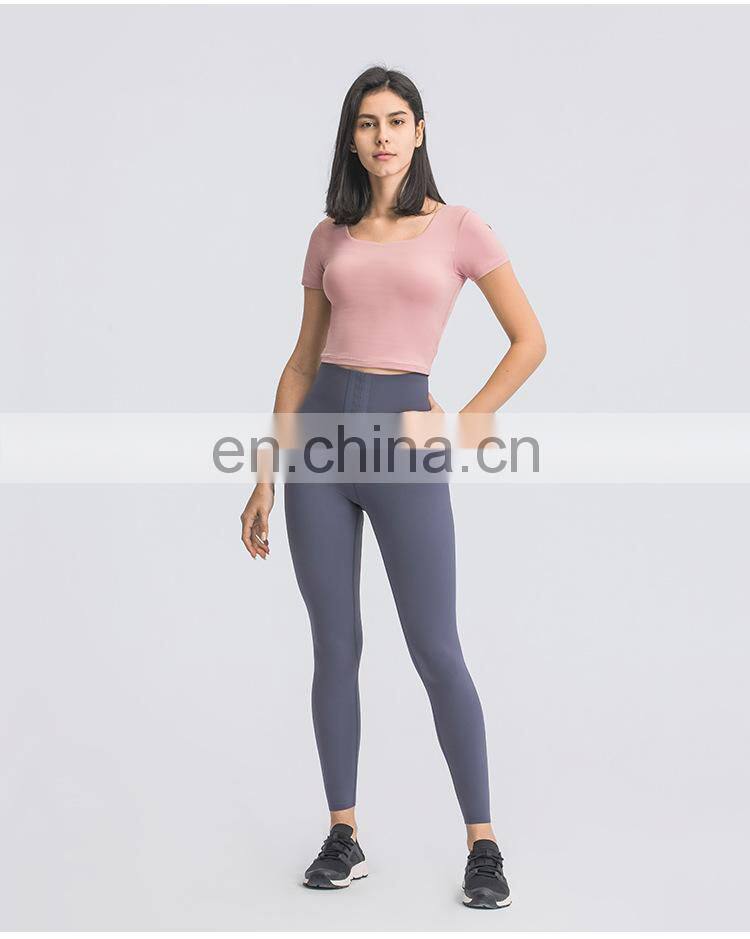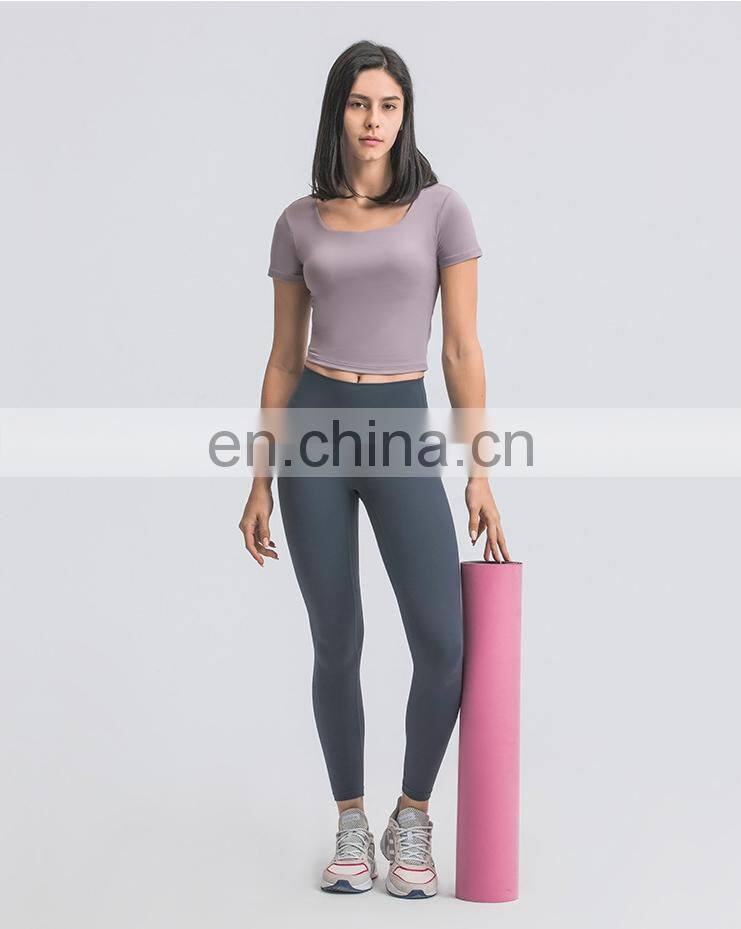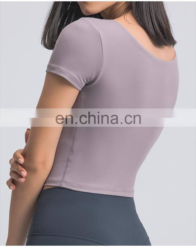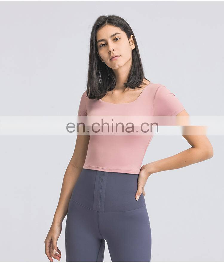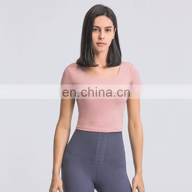 New Arrival Women Beauty Back Yoga Crop Tops Short Sleeve Tee Shirt With Removable Pads Workout Fitness Gym Clothes
