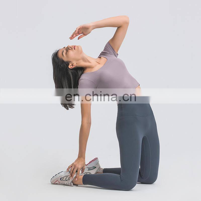 Wholesale New Yoga Crop Top Gym Fitness Sexy Sports T Shirt High Elasticity Comfort Custom Short Sleeve Yoga Crop Top For Women