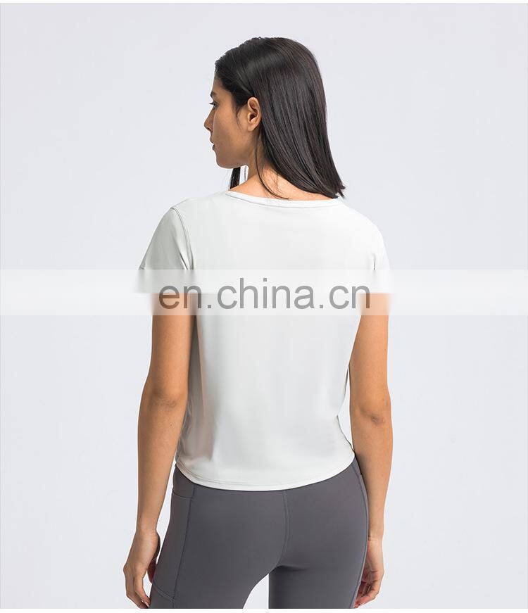 Wholesale New Yoga Crop Top Gym Fitness Sexy Sports T Shirt High Elasticity Comfort Custom Short Sleeve Yoga Crop Top For Women