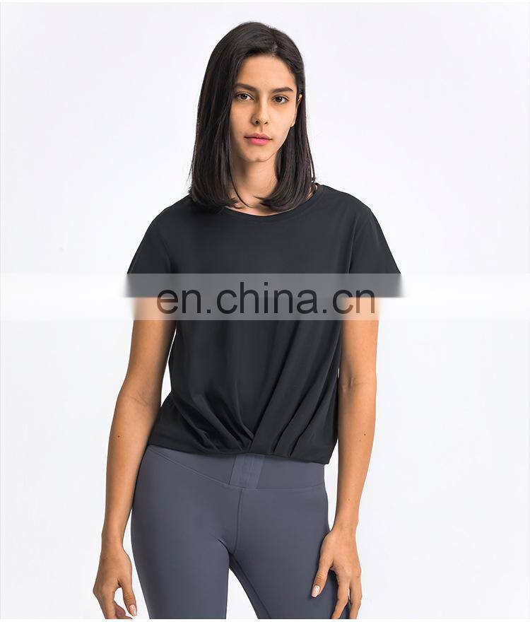 Summer Fashion Front Ruched Sport Fitness Clothing Loose Sweating-Wicking Workout Gym Wear Women Yoga T Shirt