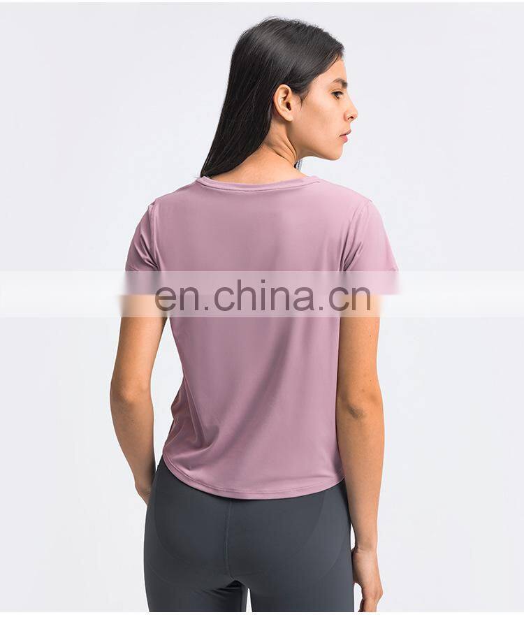 New Custom Logo High Quality Mesh Casual Sports Gym Top Women Fitness Workout Loose Short Sleeve Yoga T-shirt
