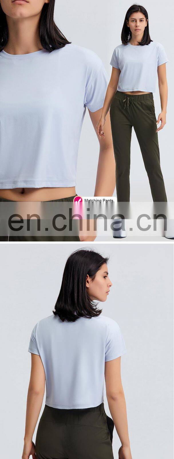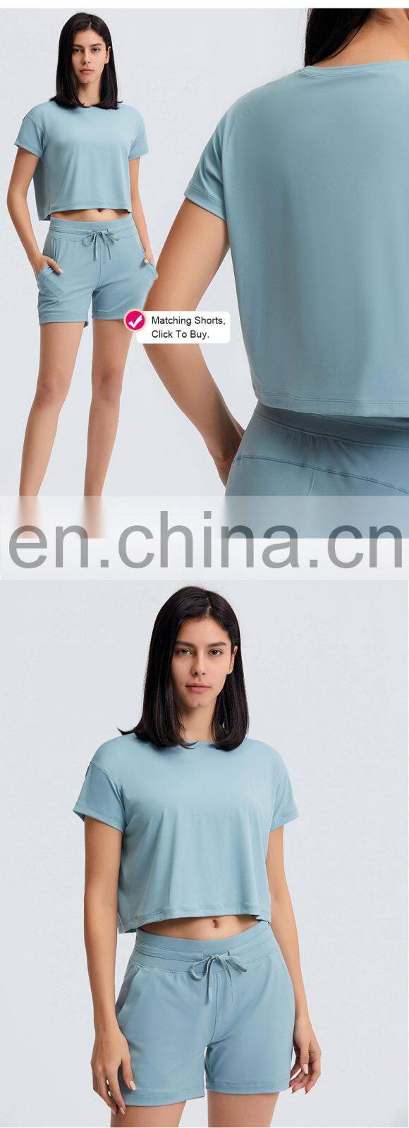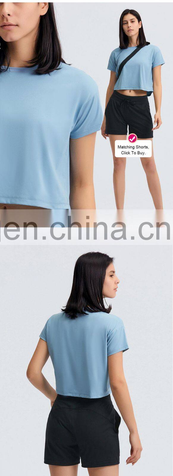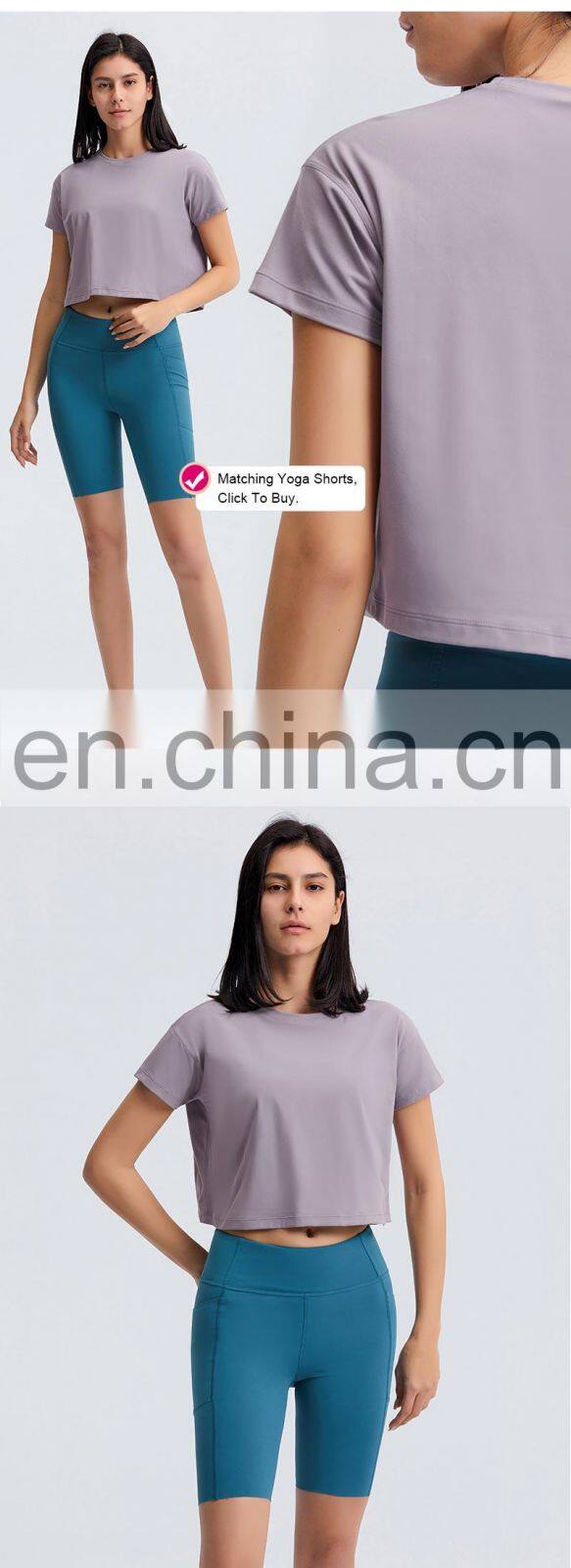 New Skin-friendly Basic Short Sleeve T-shirt Women Fitness Yoga Sports Crop Top Females Physical Training Gym Wear Tee