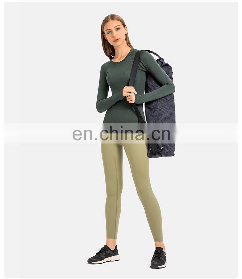 New Ribbed Nude Feeling Beauty Back Long Sleeves Solid Color T-shirt Women Gym Fitness Sportswear Clothing Top