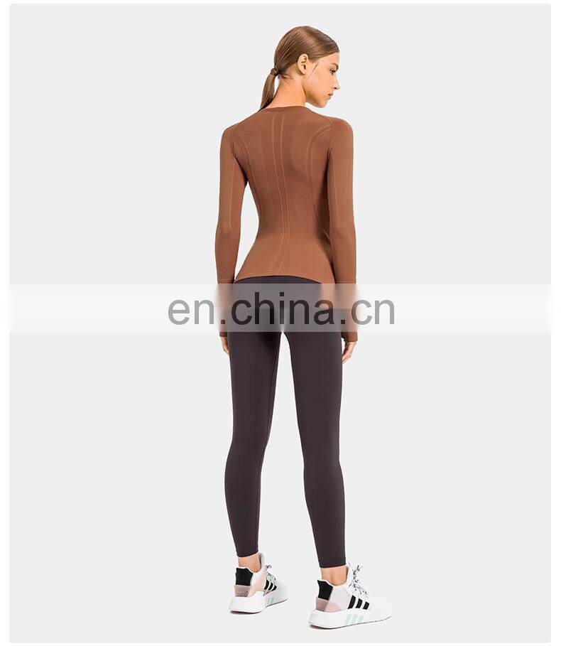 Custom Breathable Quick Dry Running Clothing High Elastic Sports Tshirt Gym Fitness Top Women Ribbed Long Sleeve Yoga T Shirt