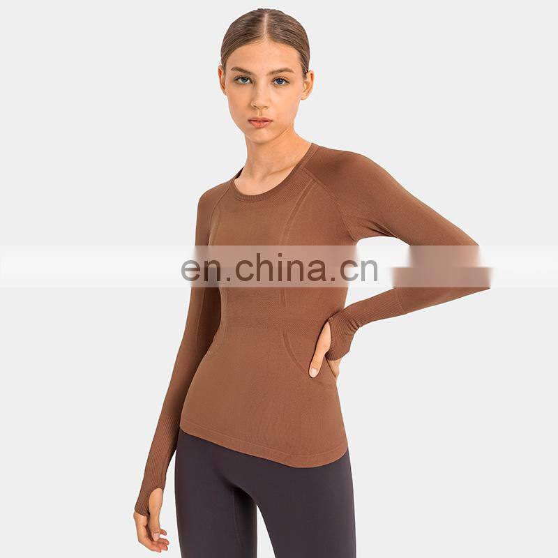 Wholesale Quick Dry Tops Custom Workout Wear Running T Shirt Sports Wear Gym Fitness Top Long Sleeve Yoga Shirt For Women