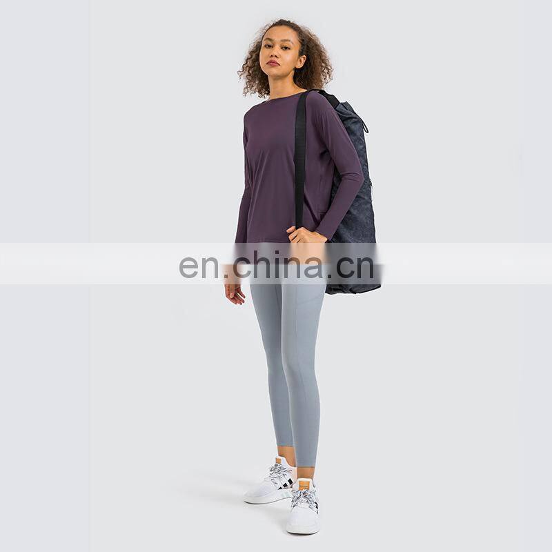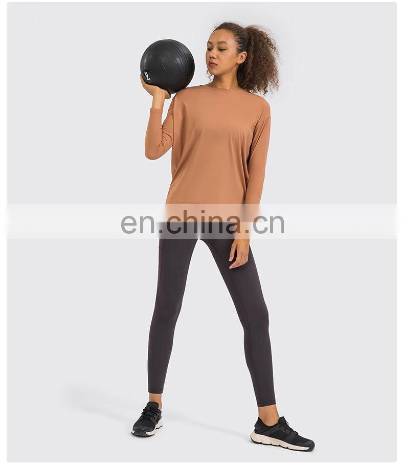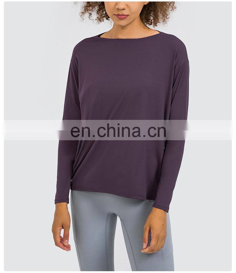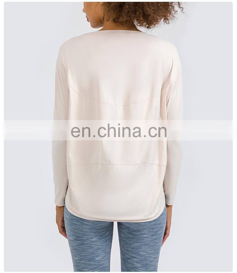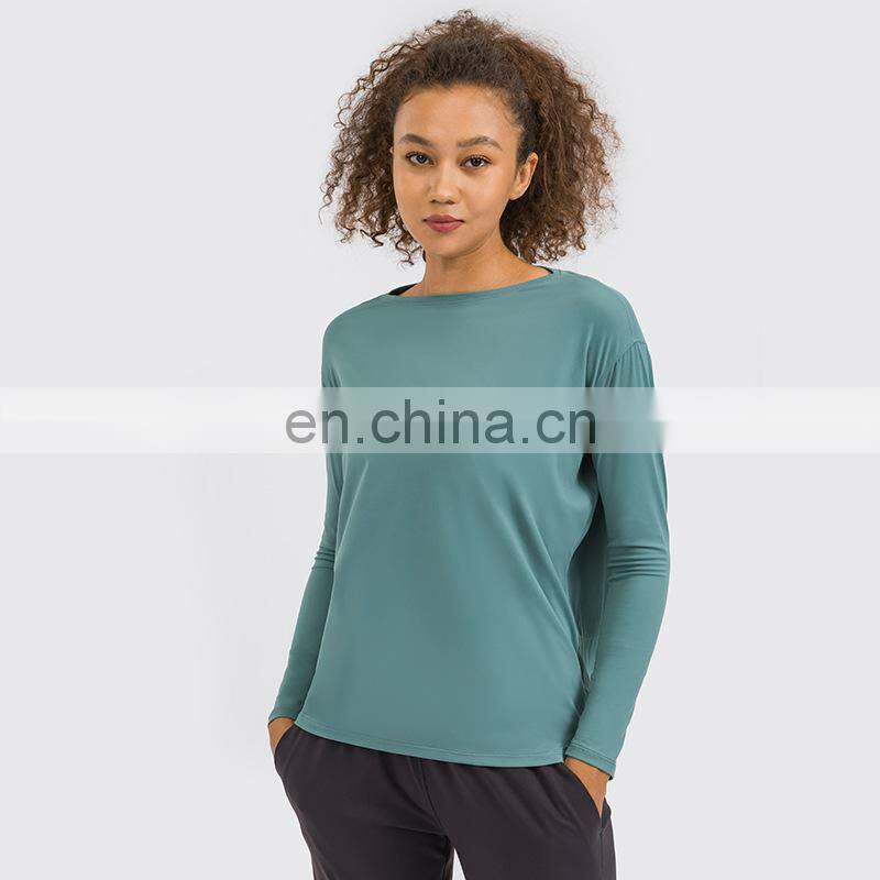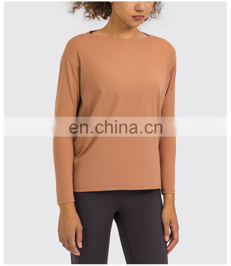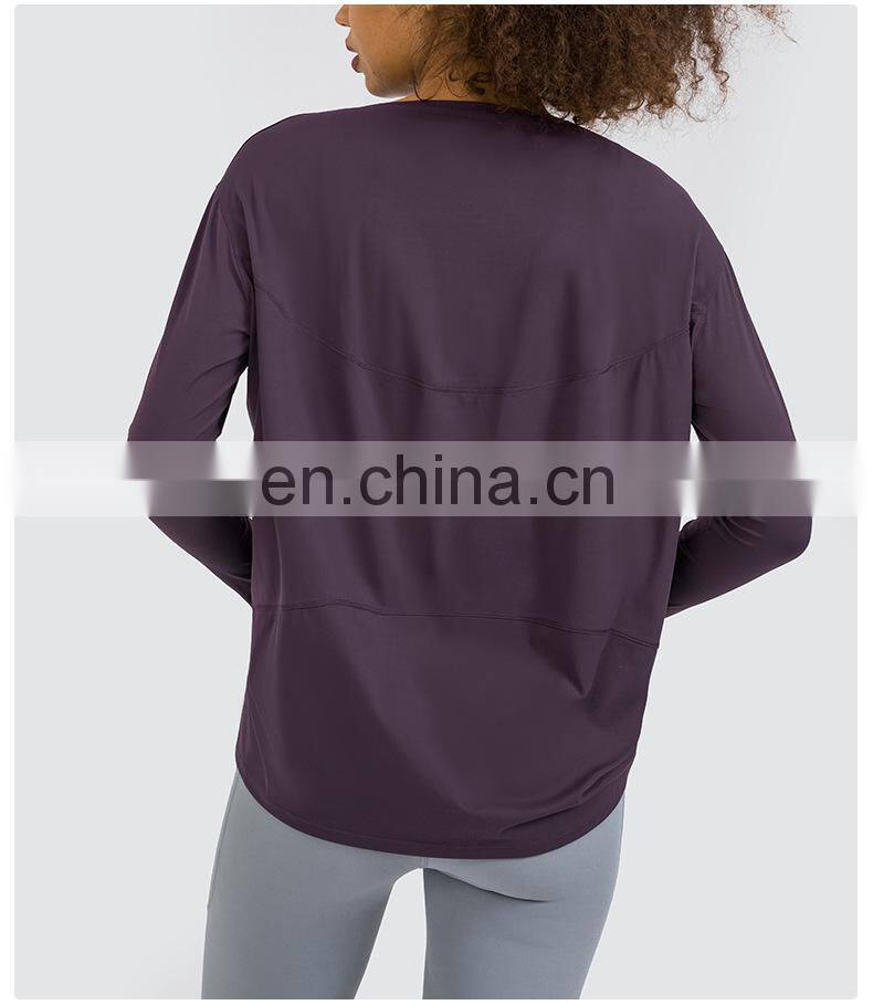 1 Pcs Custom Logo Good Quantity Wholesale Women Yoga Wear Tops Loose Style Long Sleeve Tee Women