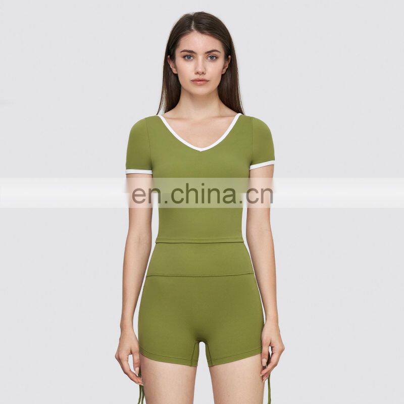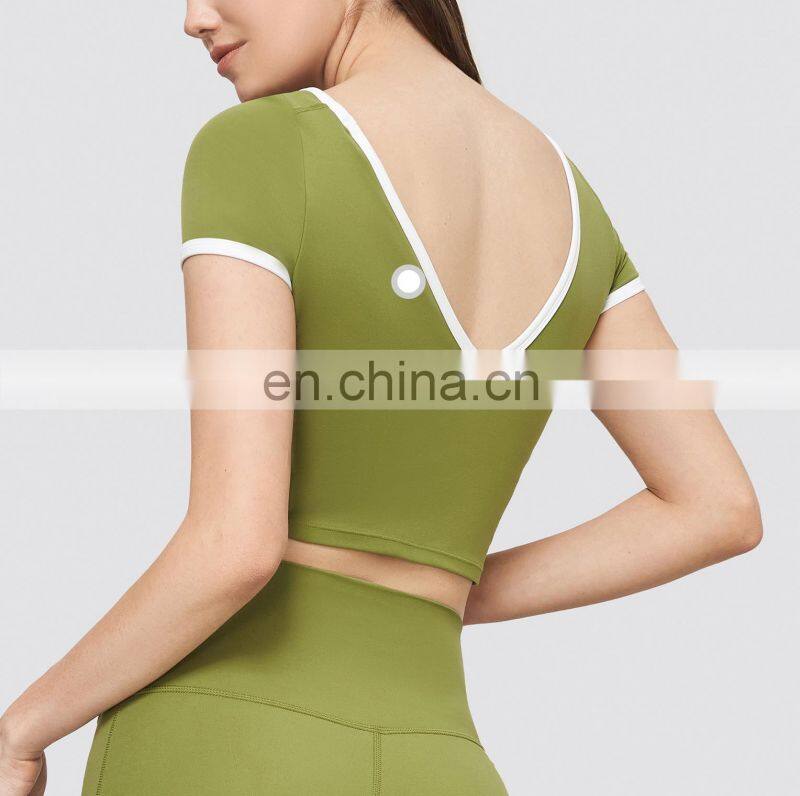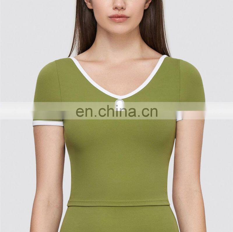 Soft Slim Fit Gym Fitness Sports Yoga Crop Top Built In Bra Padded Workout Running Training Wear Clothes T Shirts For Women