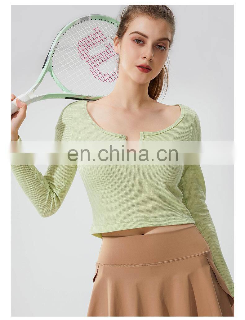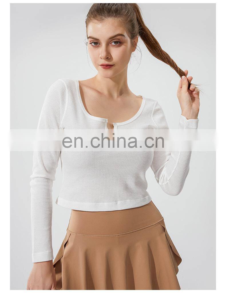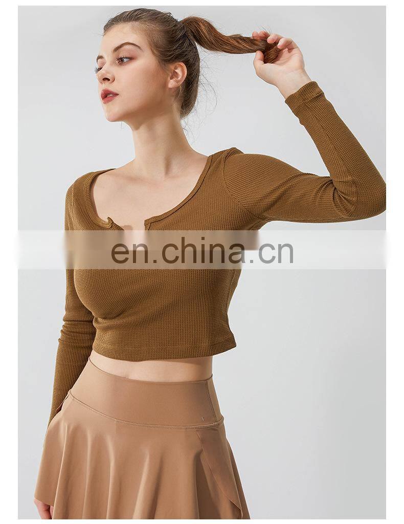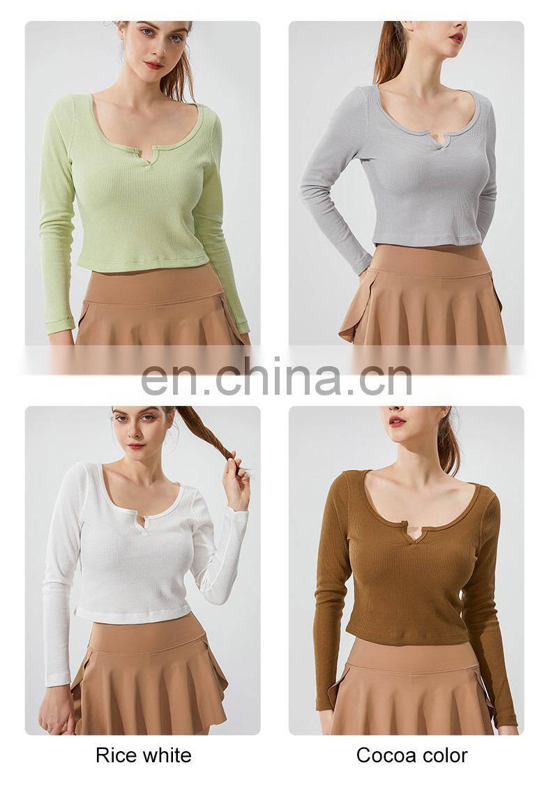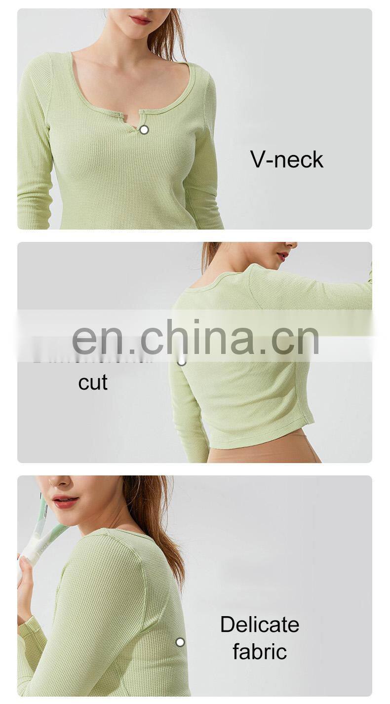 Custom Running Clothing Quick Dry Workout Wear Cross Button Slim Fit Sports Shirt Gym Fitness Top Women Long Sleeve Yoga T ShirtUS$ 8.35 - 8.35MOQ: 1 Piece