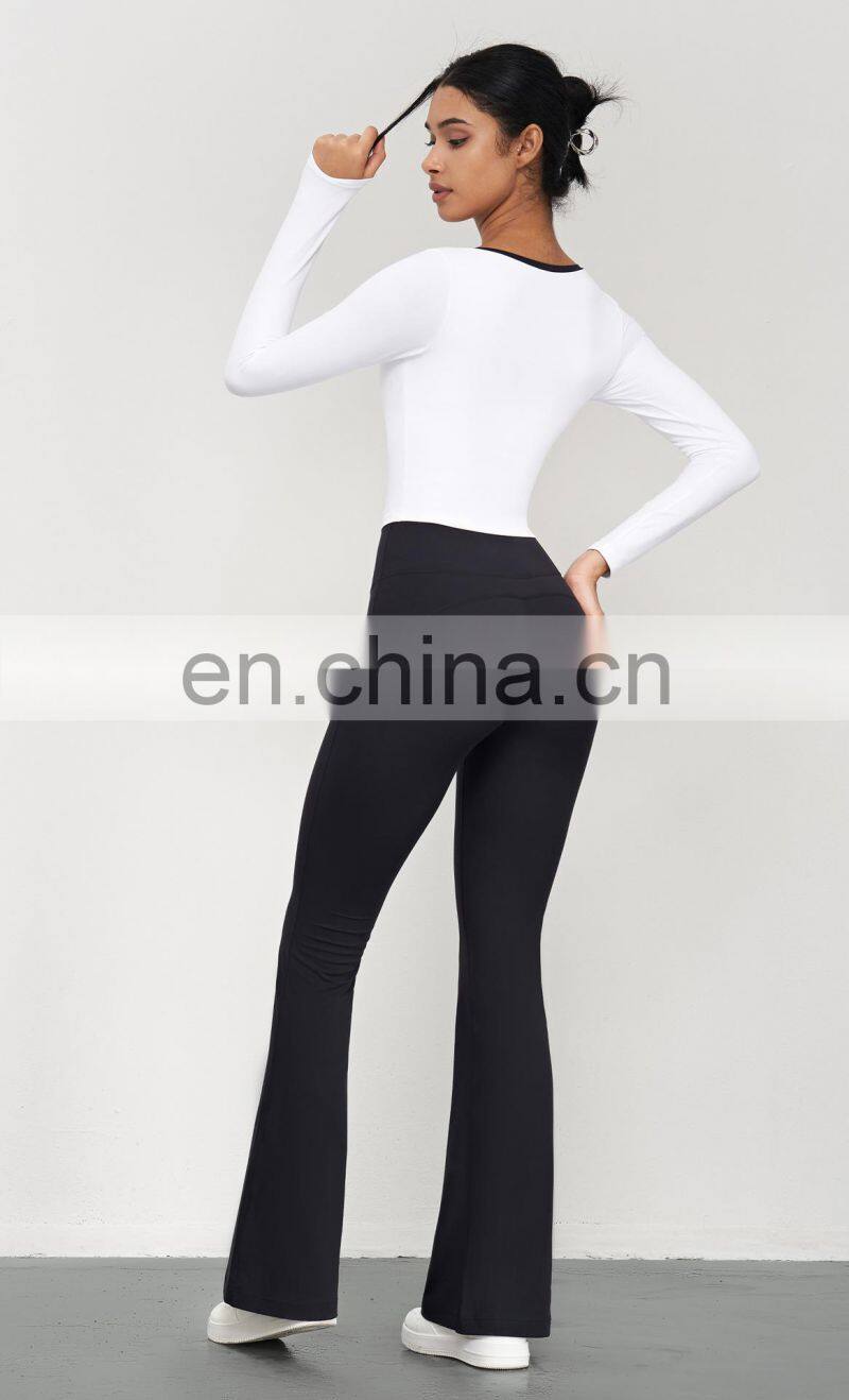 New Ladies T-shirt Running Wear Custom Sports Shirts Gym Fitness Top Women Long Sleeve Ribbed Strappy Halter Yoga T Shirt