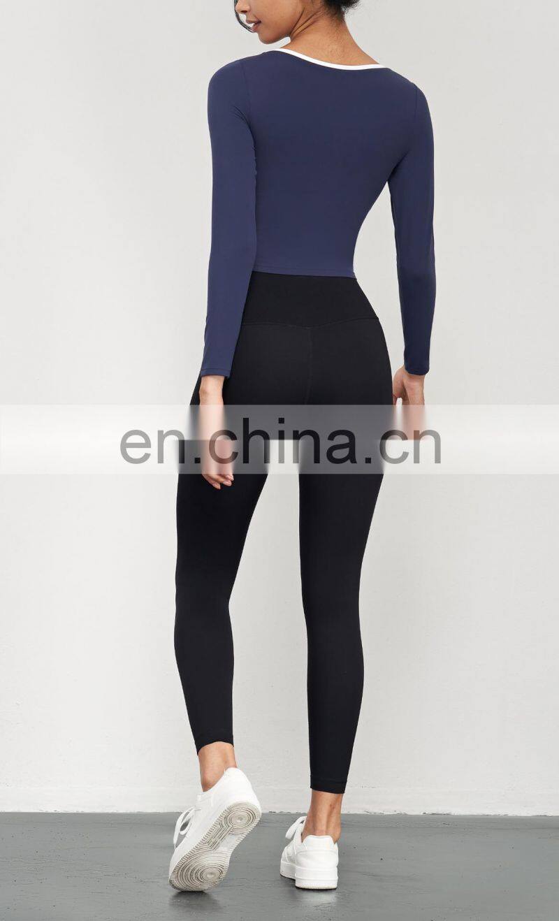 Breathable Running Fitness Clothing Contrasting Colors Crop Top Small High Neck Sports Tops Women Long Sleeve Yoga T Shirt