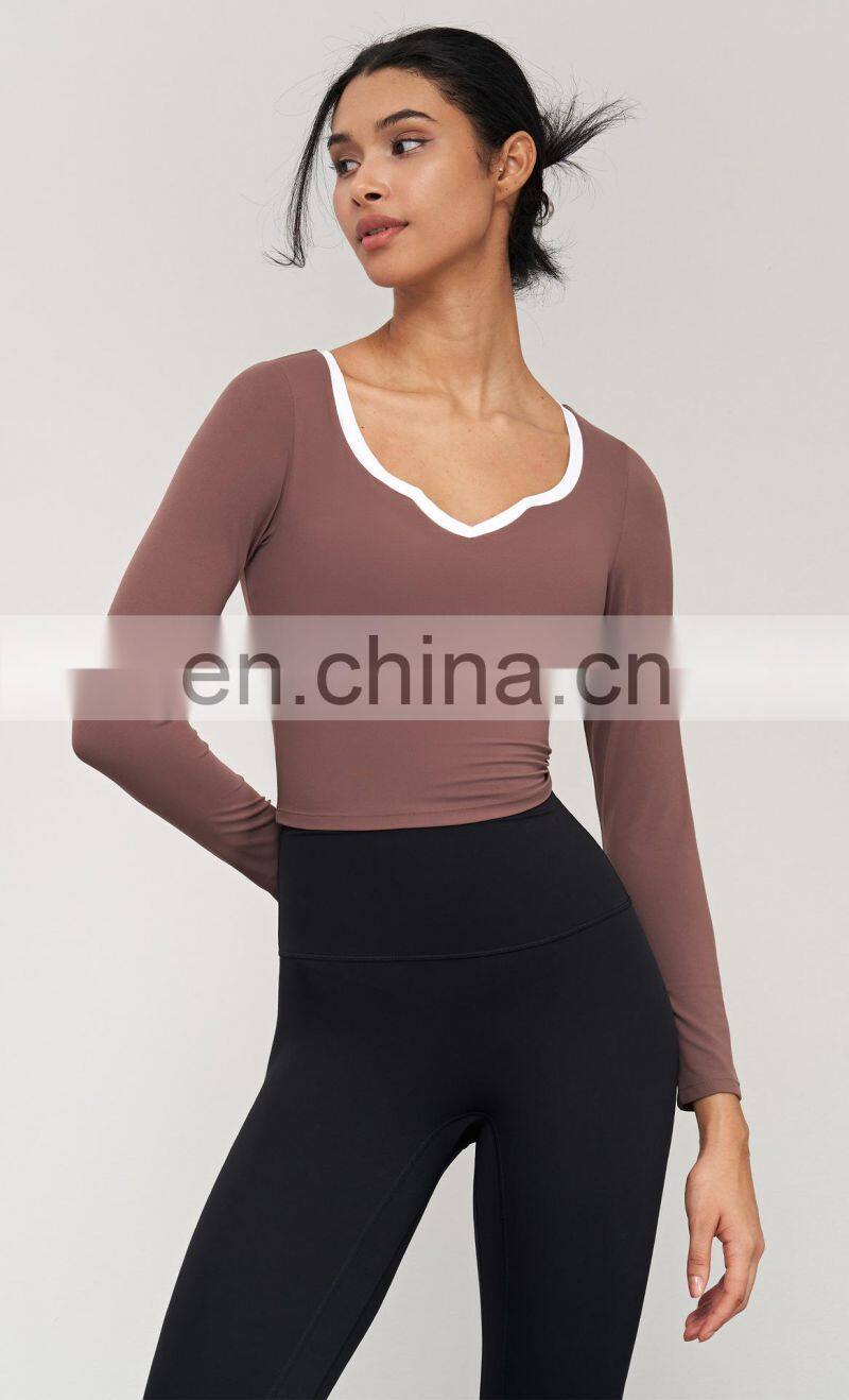 Wholesale Fashion Slim High Quality Running T-shirt Workout Wear Fitness Shirt Sports Tops Women Long Sleeve Yoga T Shirt