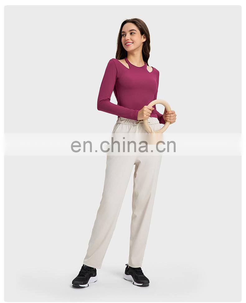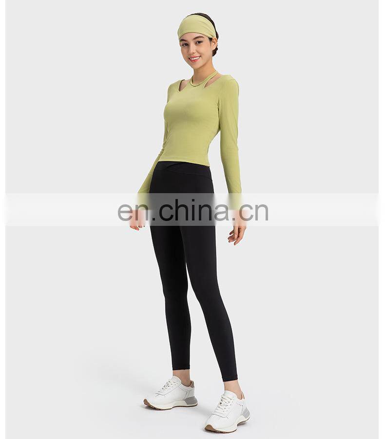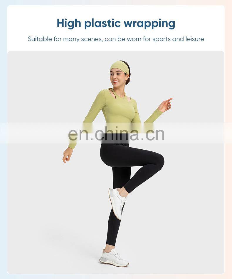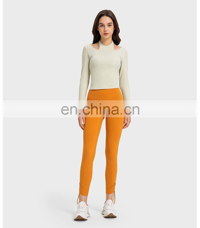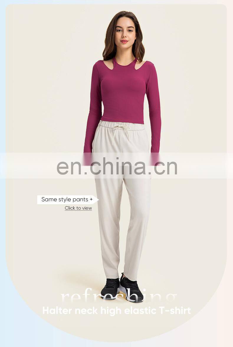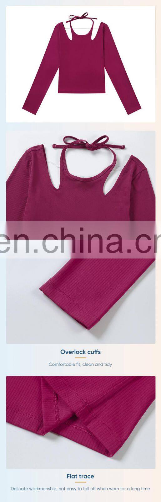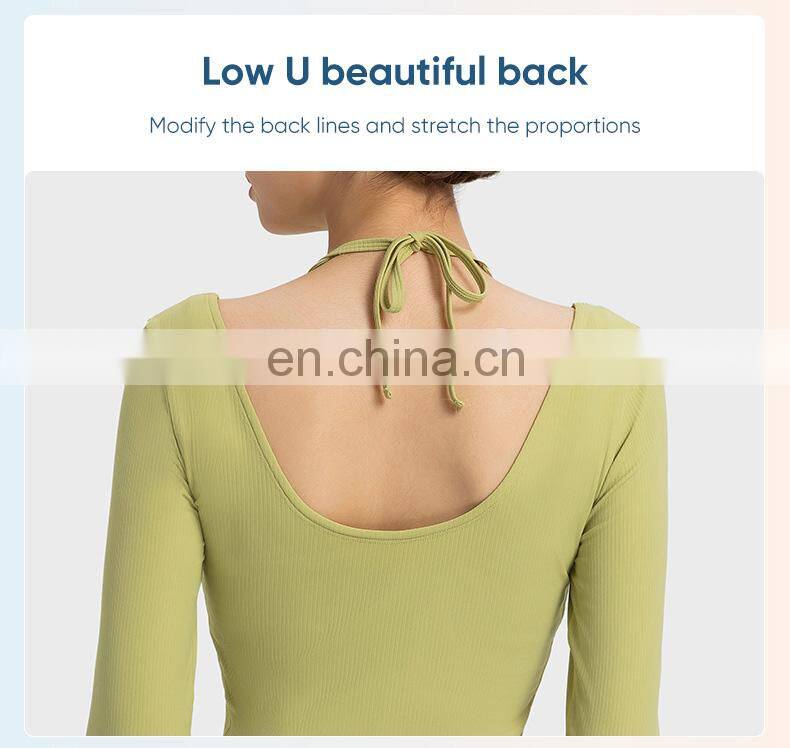New Ladies T-shirt Running Wear Custom Sports Shirts Gym Fitness Top Women Long Sleeve Ribbed Strappy Halter Yoga T Shirt