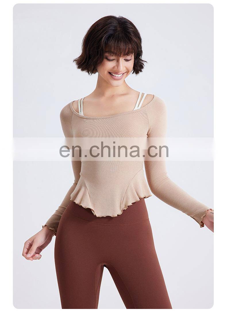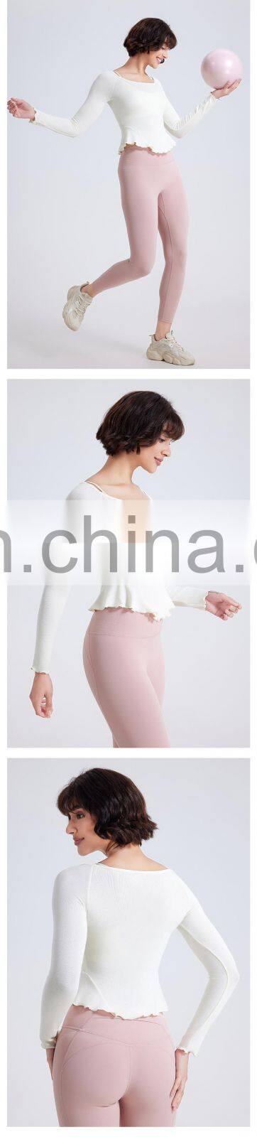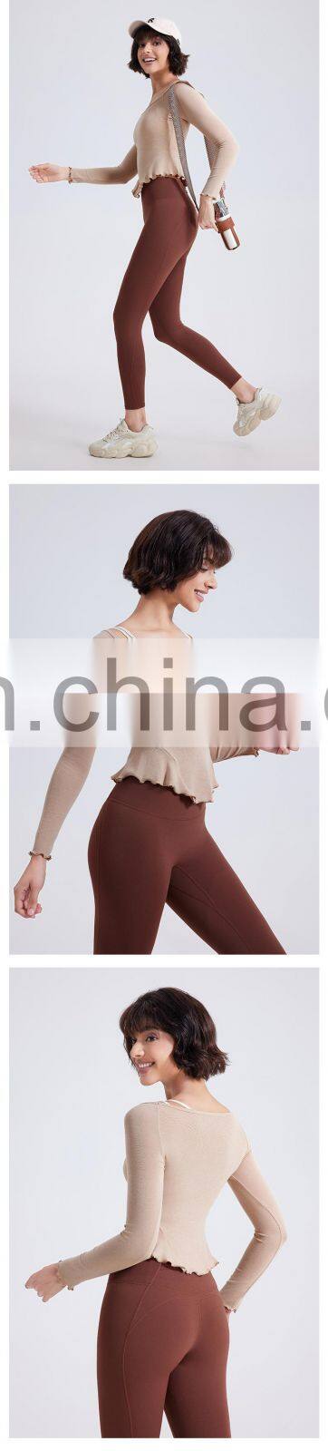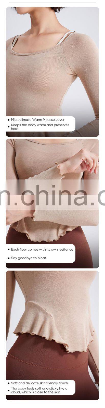 Warm Sportswear Nude Lace Slim Sports Shirts Custom Running Clothing Long Sleeve Tops Gym Fitness T Shirt Women Yoga Top