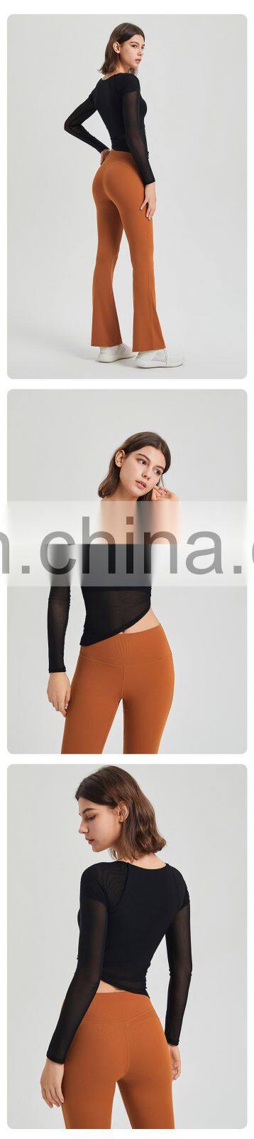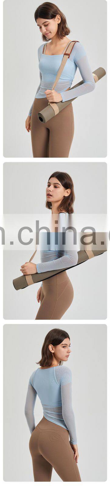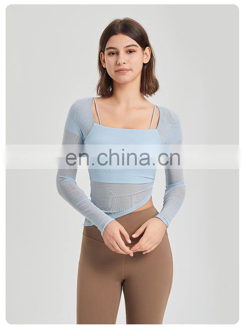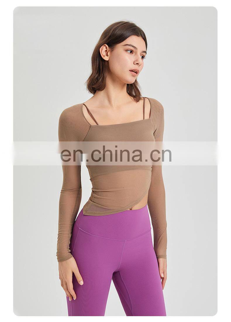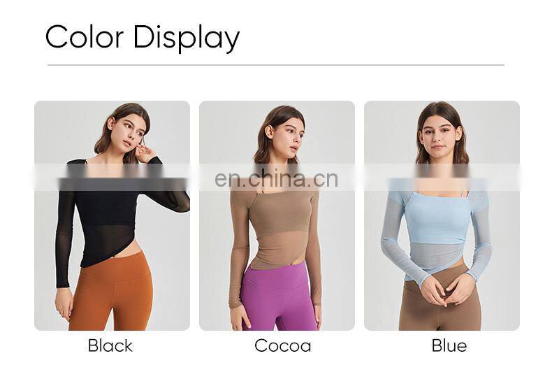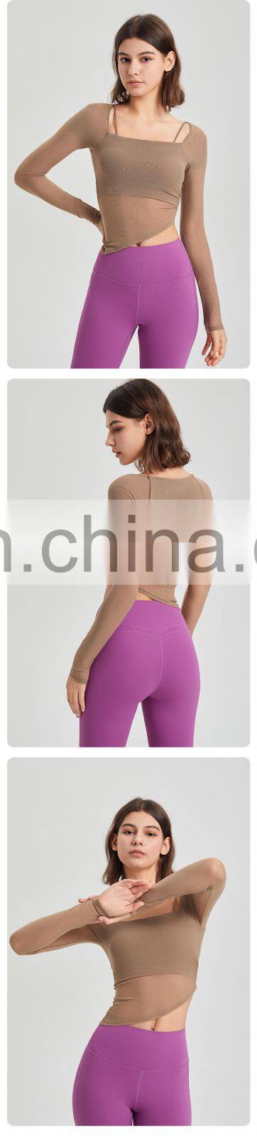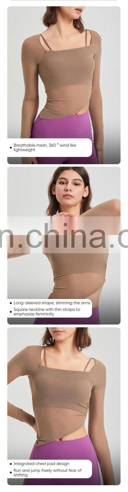 Custom Quick Dry Tshirt Breathable Mesh Square Neckline Sports Tops Women Long Sleeve Design Yoga T Shirt With Fixed Padded