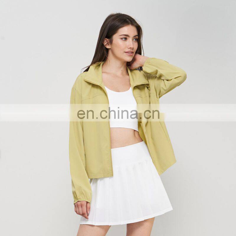 Wholesale Quick Dry Lightweight Cool Full Zip Anti-UV Workout Gym Jacket Side Pocket UPF50+ Outdoor Sports Activewear For Women