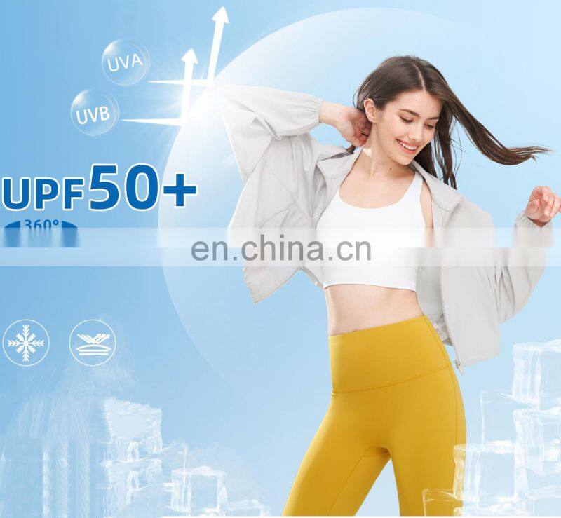 Wholesale Quick Dry Lightweight Cool Full Zip Anti-UV Workout Gym Jacket Side Pocket UPF50+ Outdoor Sports Activewear For Women