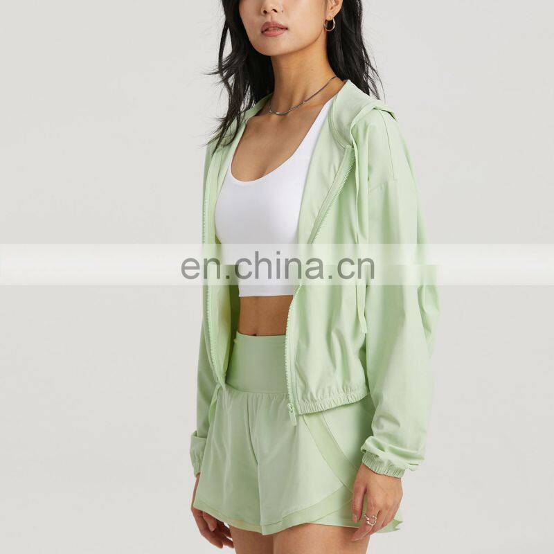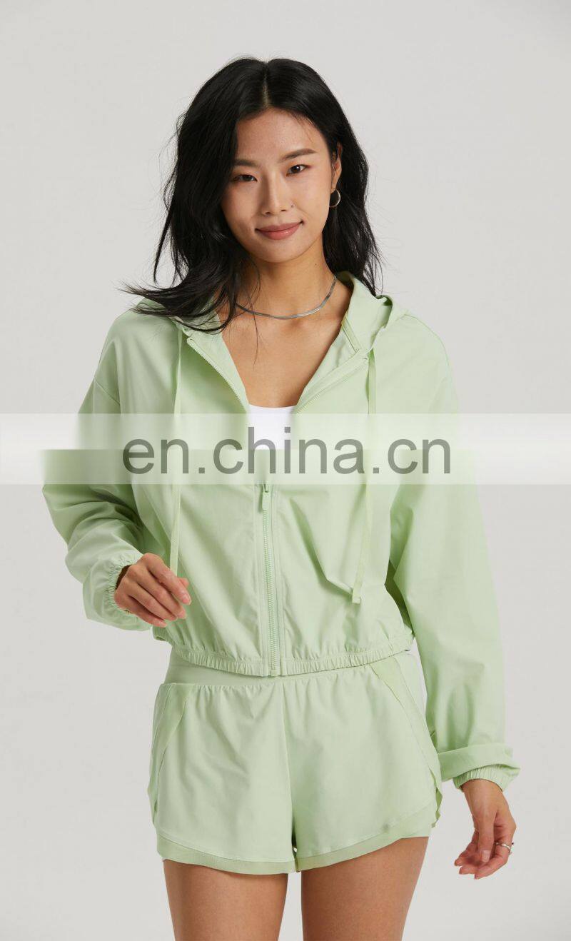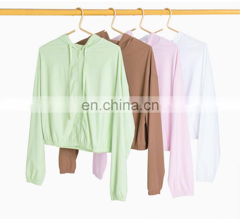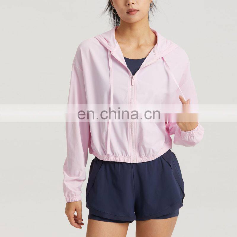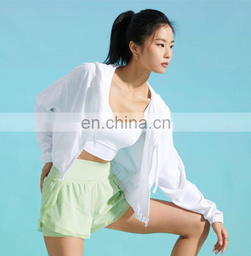 2023 Summer New Sun Proof UPF50+ Sports Fitness Clothing Anti UV Outdoor Running Training Wear Hooded Jacket For Women Workout