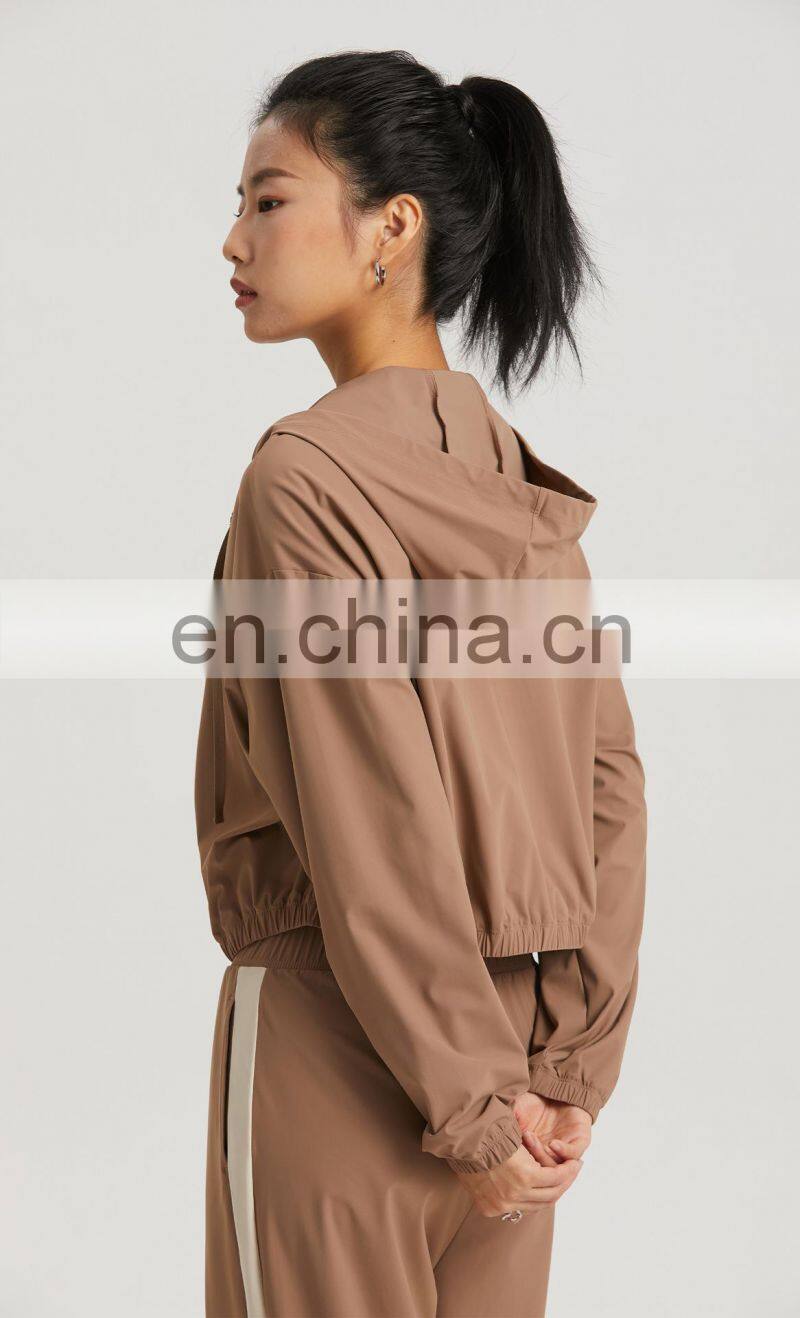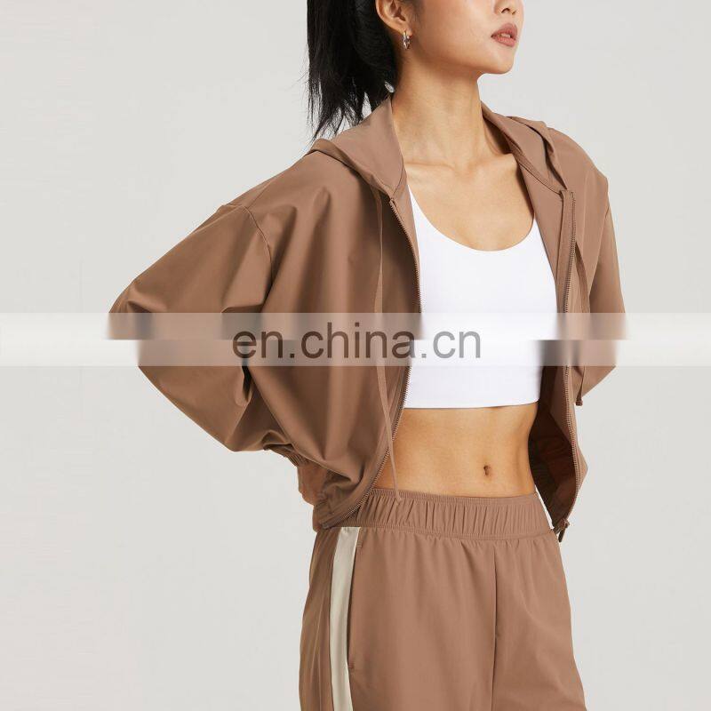 Top Selling Custom Logo Gym Yoga Wear Full Zip Hoodie Jacket Women Slim Compression Workout Fitness Activewear Crop Top