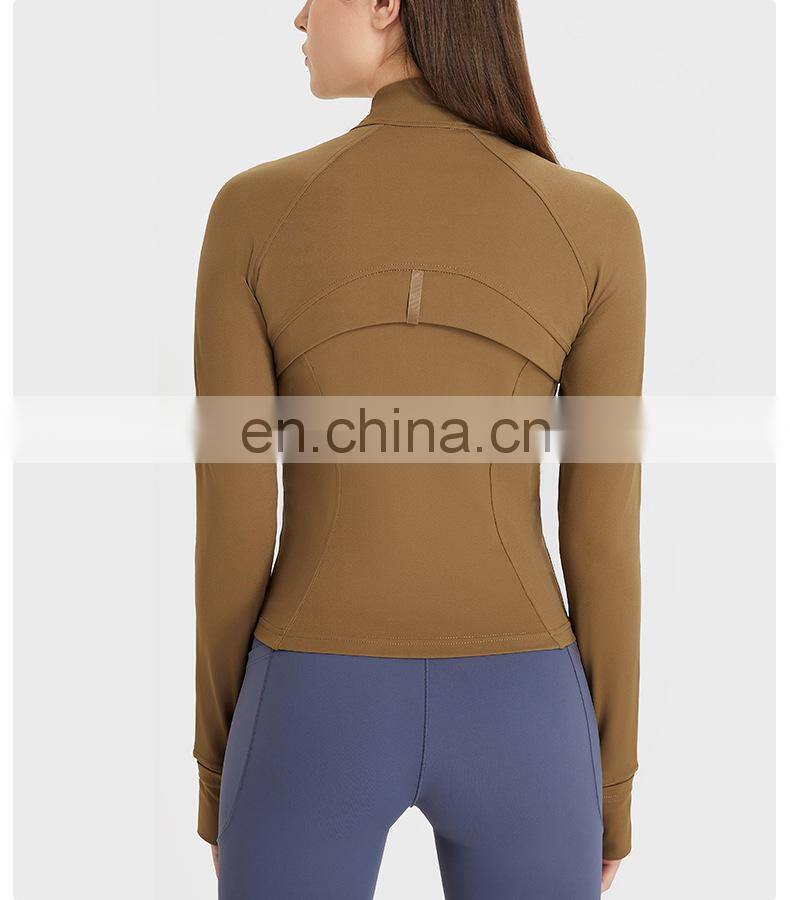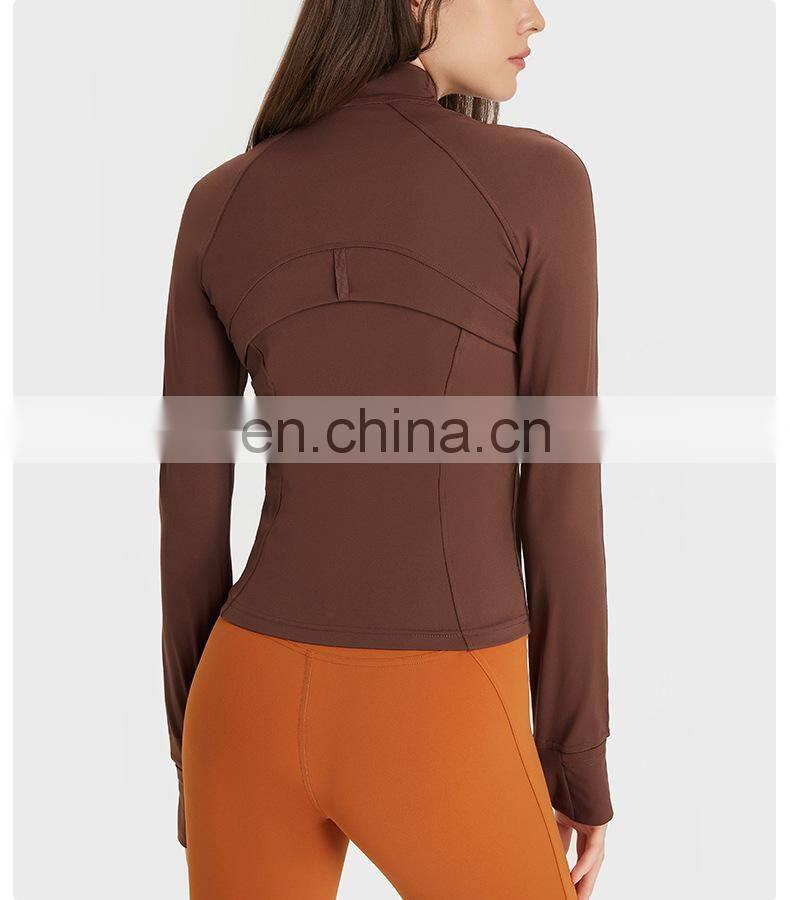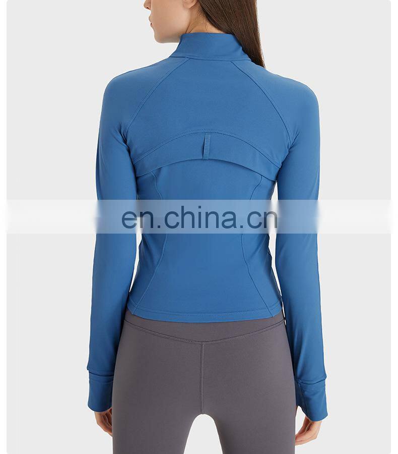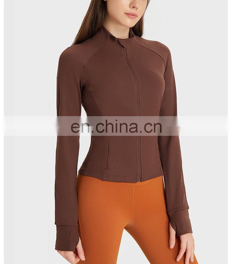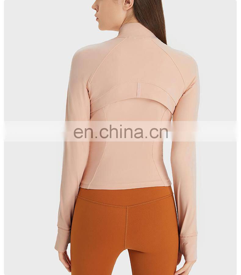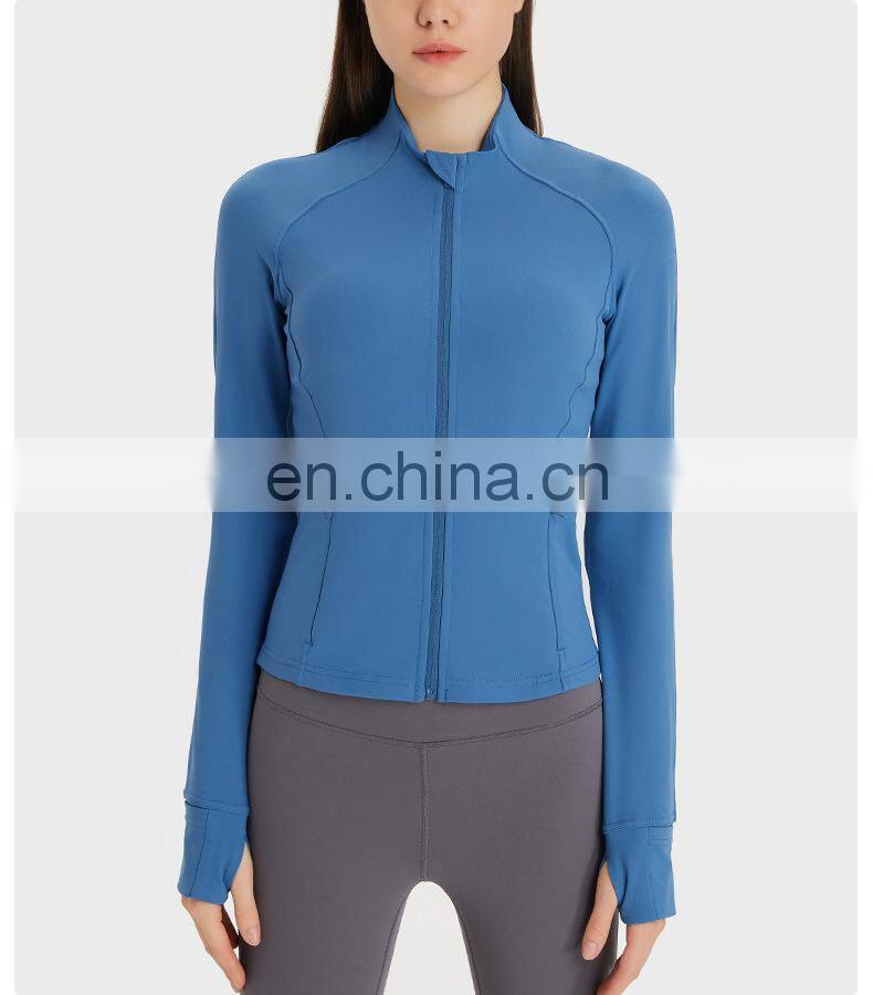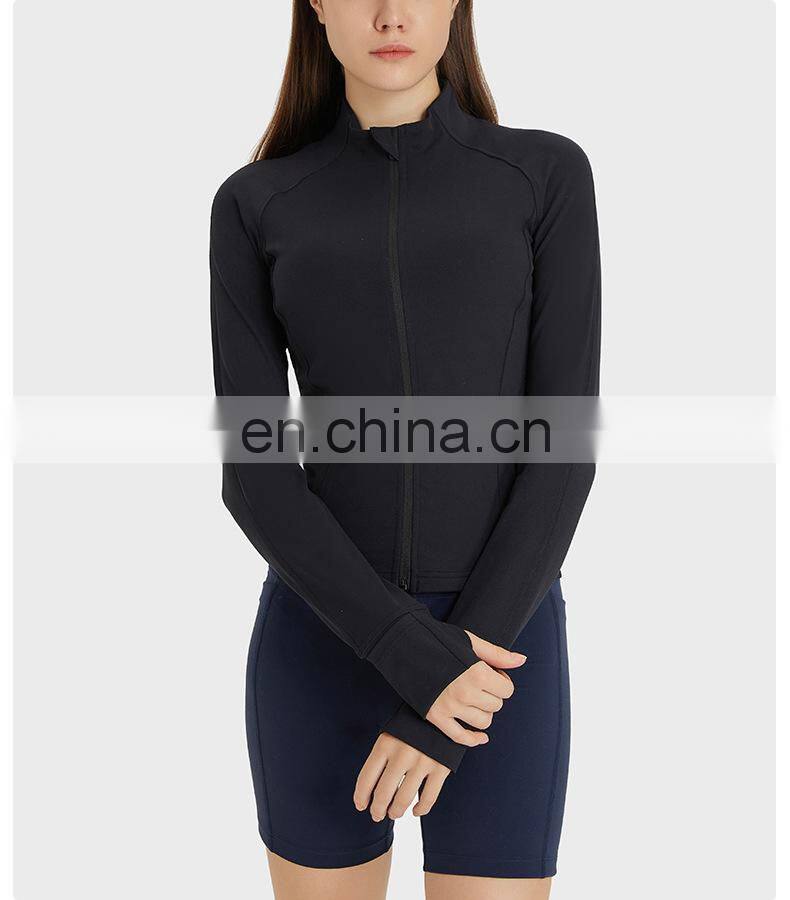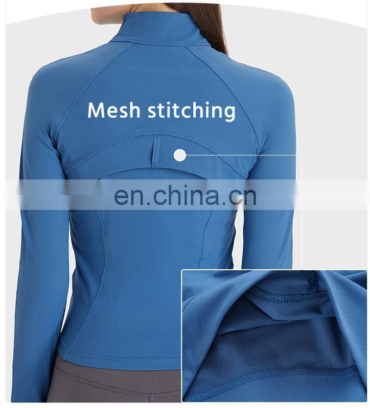 Wholesale Thumb Hole Mesh Stitching Slim Fit Yoga Jacket Women Long Sleeve Full-Zip Gym Fitness Wear Stand-up Collar Clothing