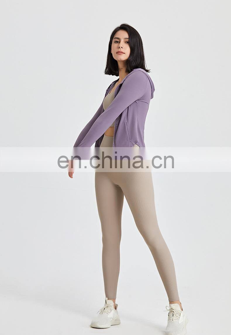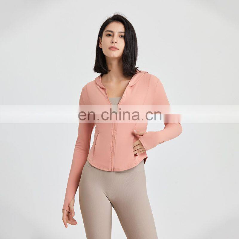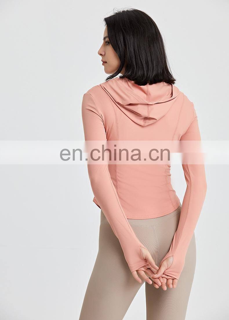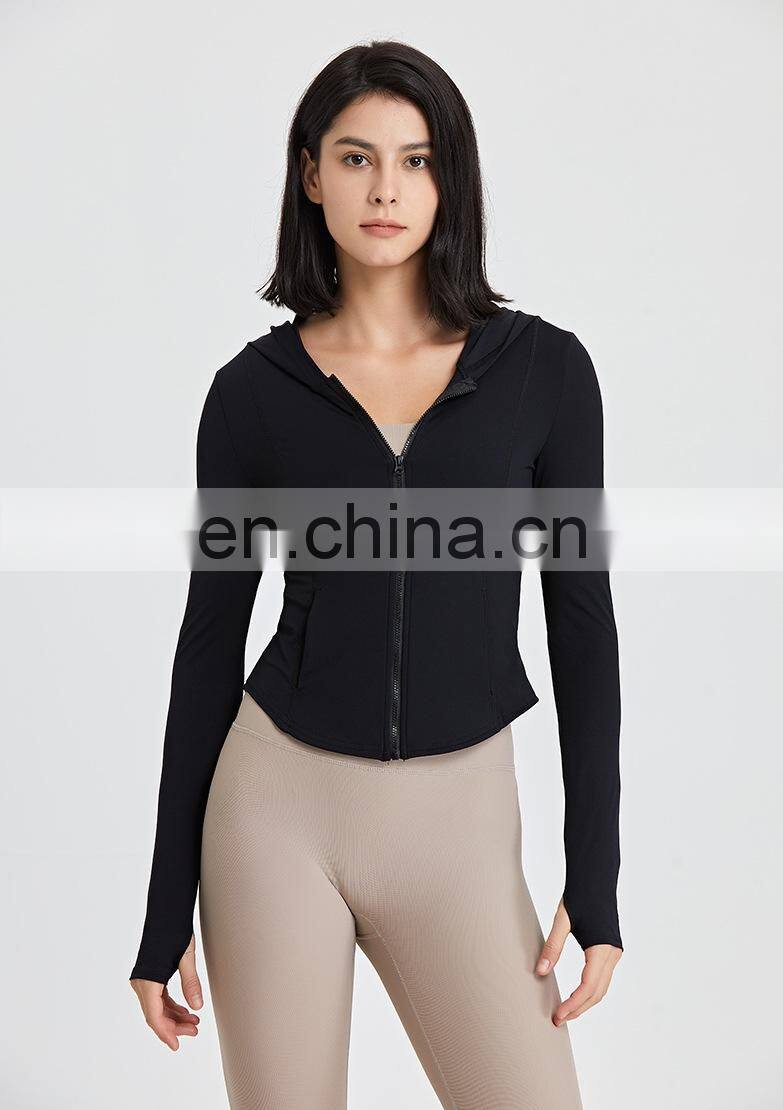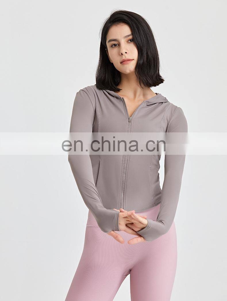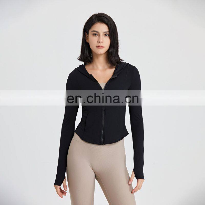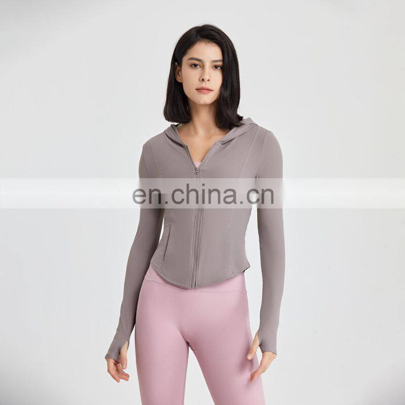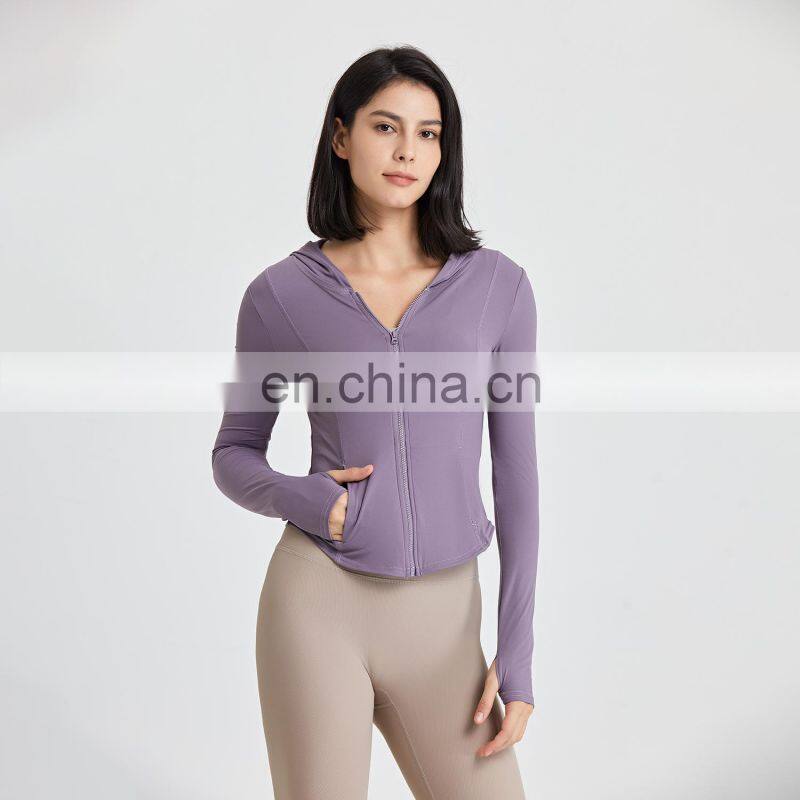 Top Selling Custom Logo Gym Yoga Wear Full Zip Hoodie Jacket Women Slim Compression Workout Fitness Activewear Crop Top