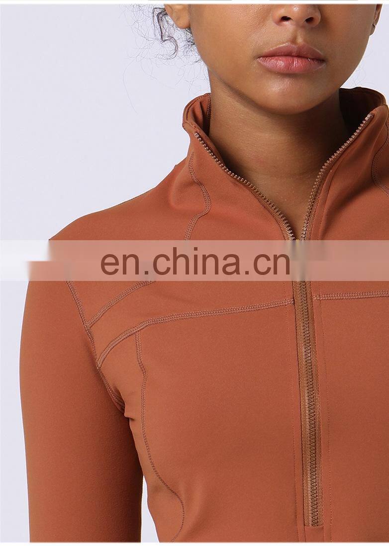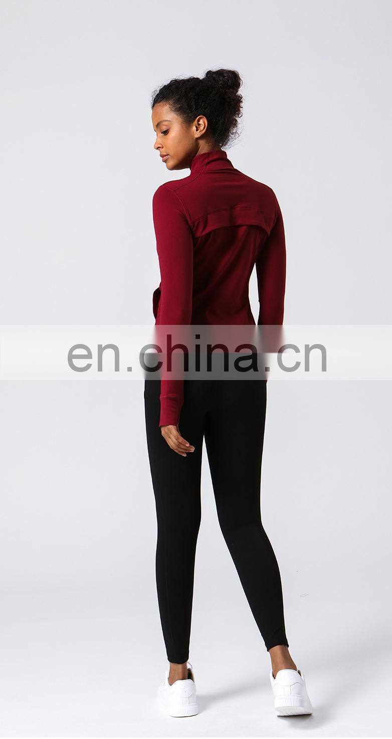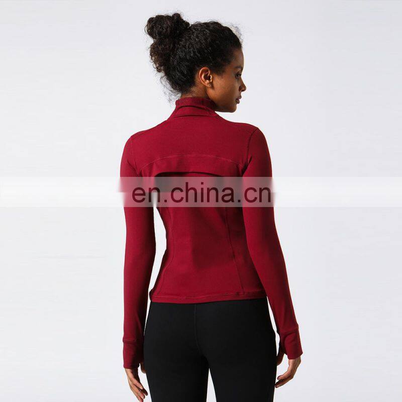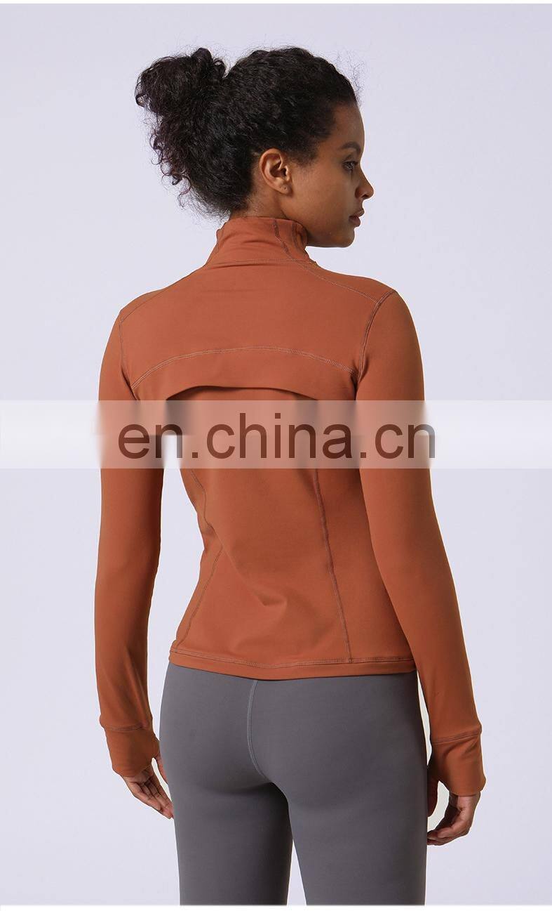 Custom Running Workout Sports Tops Wear Gym Fitness Stand Collar Long Sleeve Thumb Hole Zipper Jackets Yoga Jacket For Women