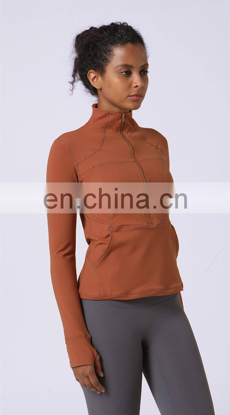 New Arrival Popular Long Sleeves Fitness Sports Coat Gym Activewear Half Zip Yoga Jacket Top For Women