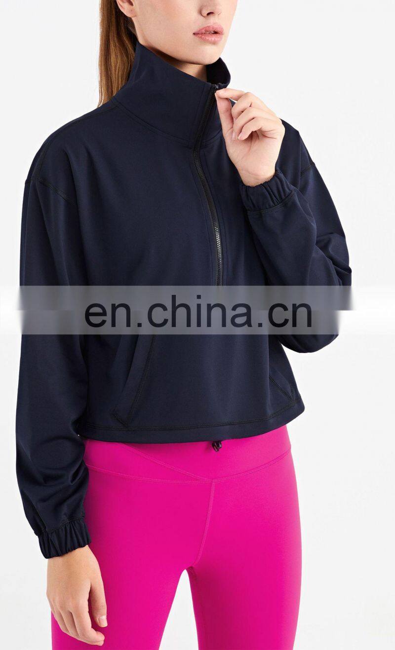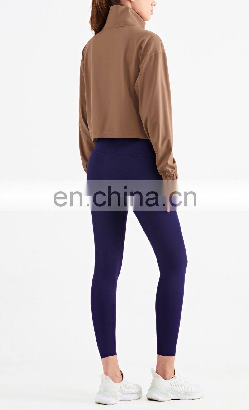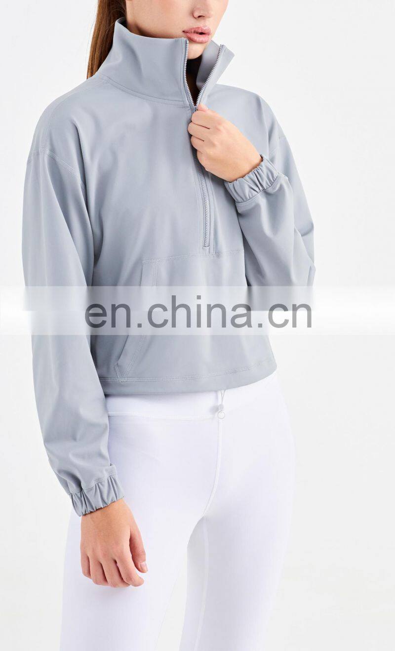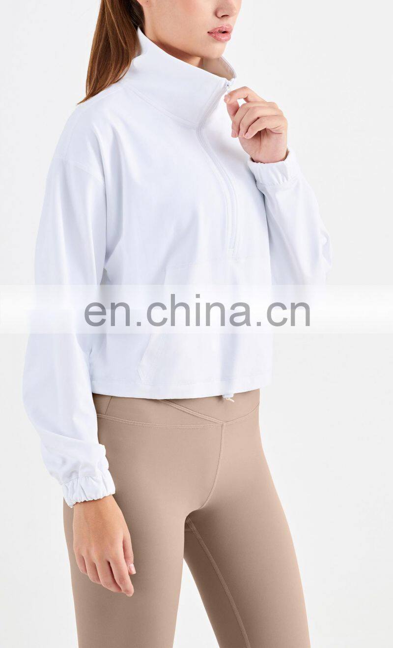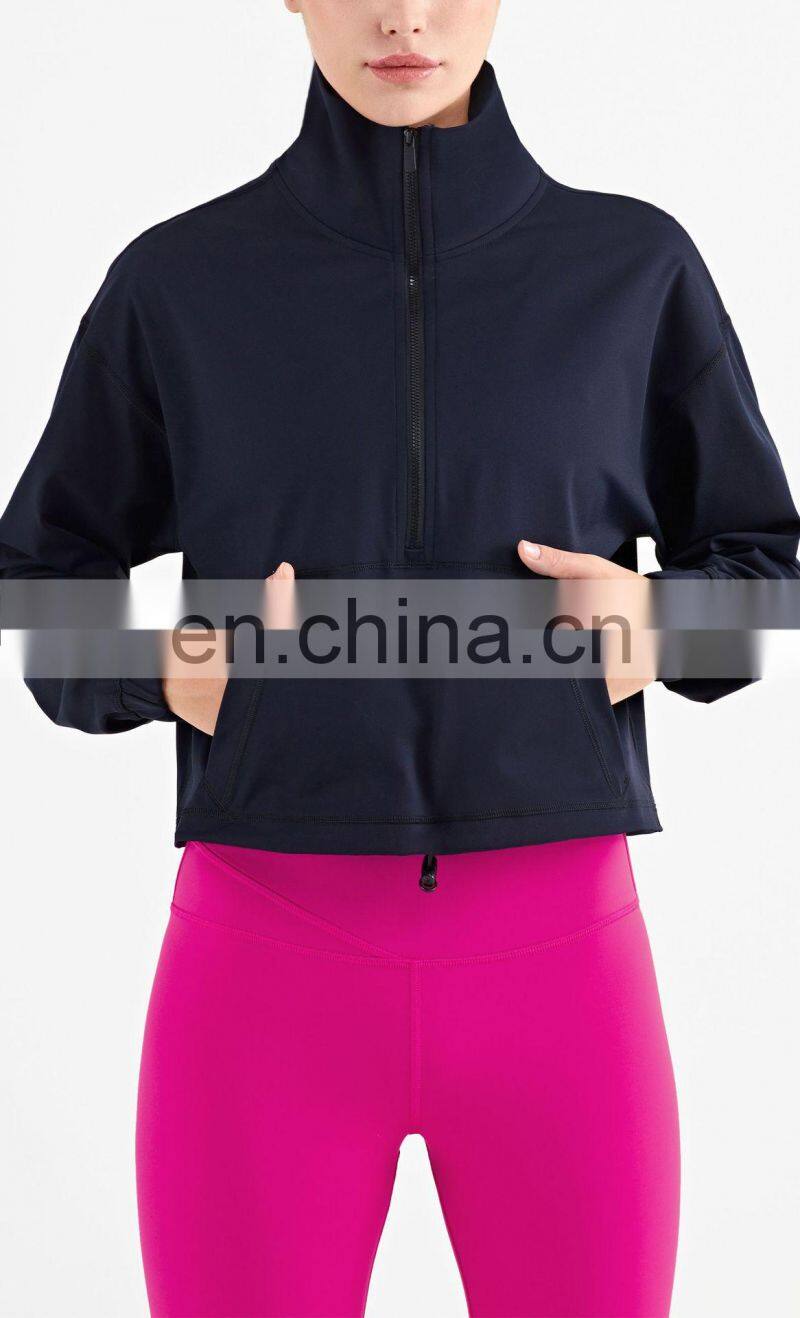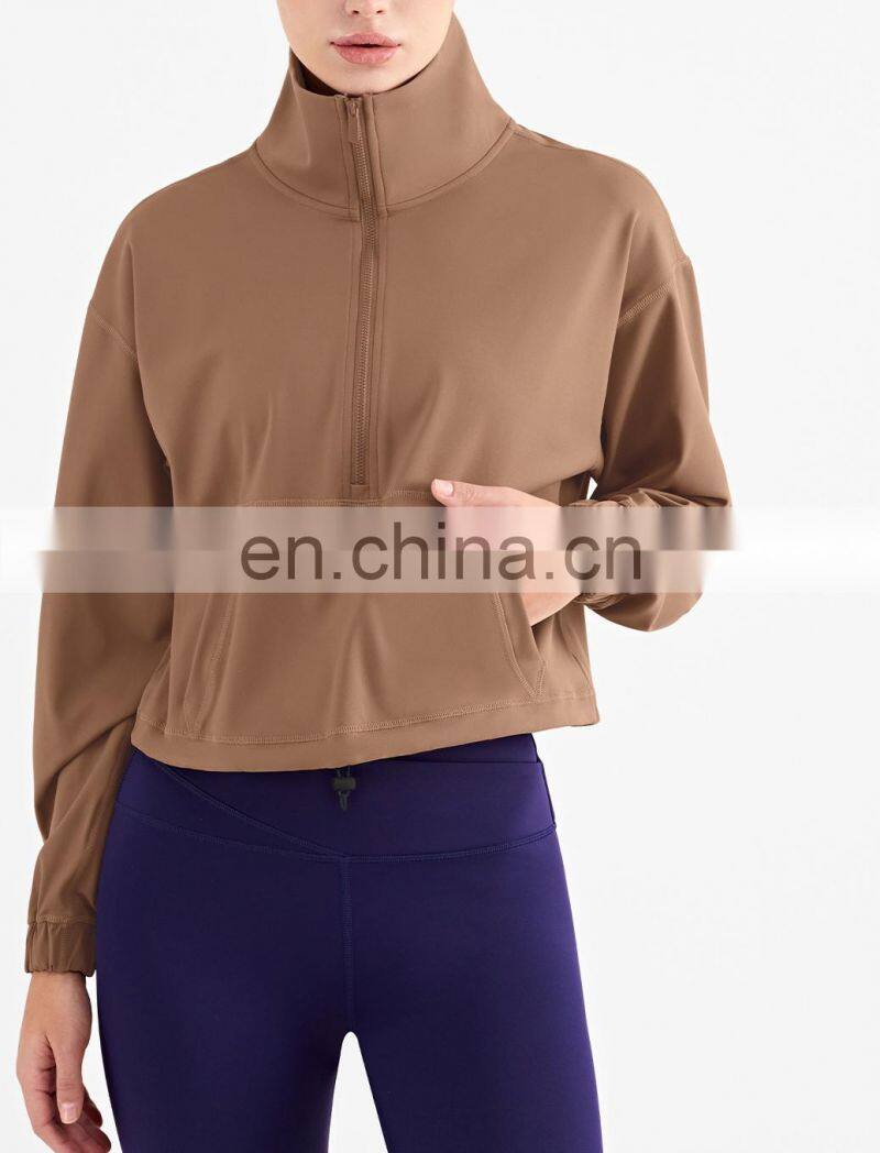 Wholesale New Women Half Zipper Yoga Tee Long Sleeves Solid Color T-shirt Women Gym Fitness Sportswear Clothing Jacket