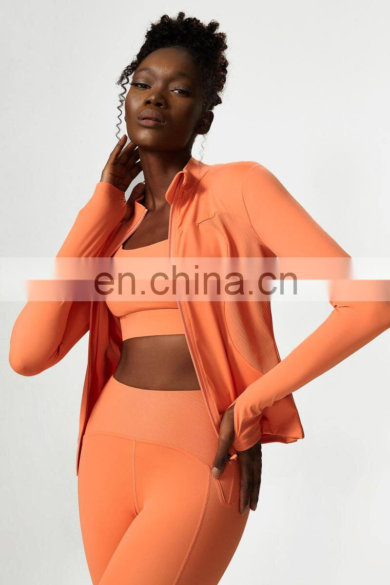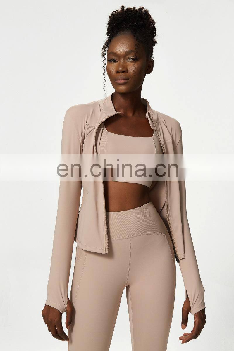 New Arrival Zipper Sweat Wicking Long Sleeves Fitness Sports Coat Gym Activewear Yoga Jacket Top For Women