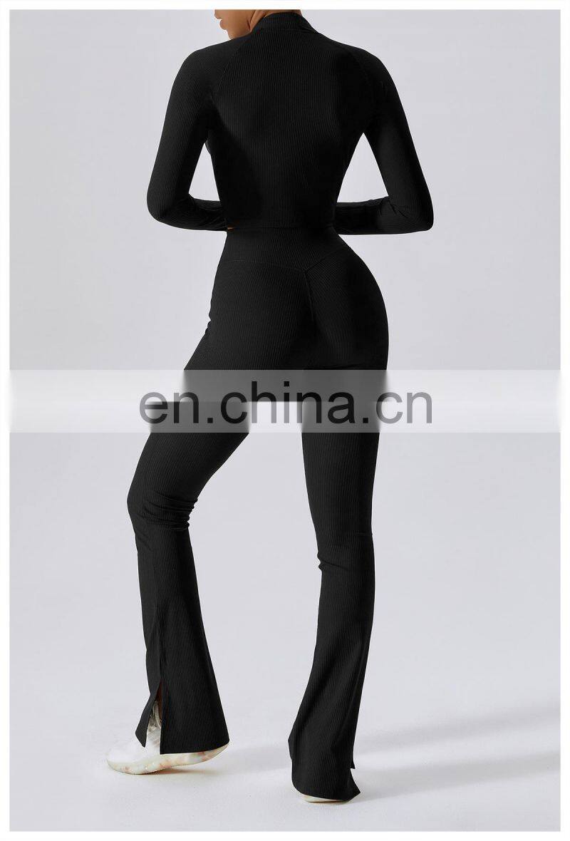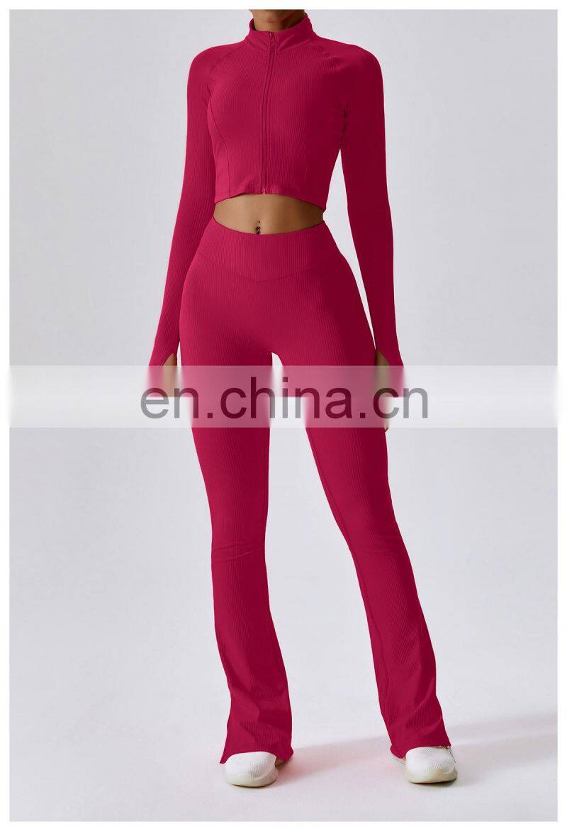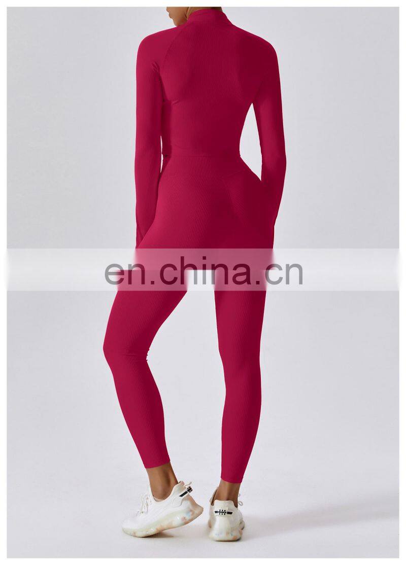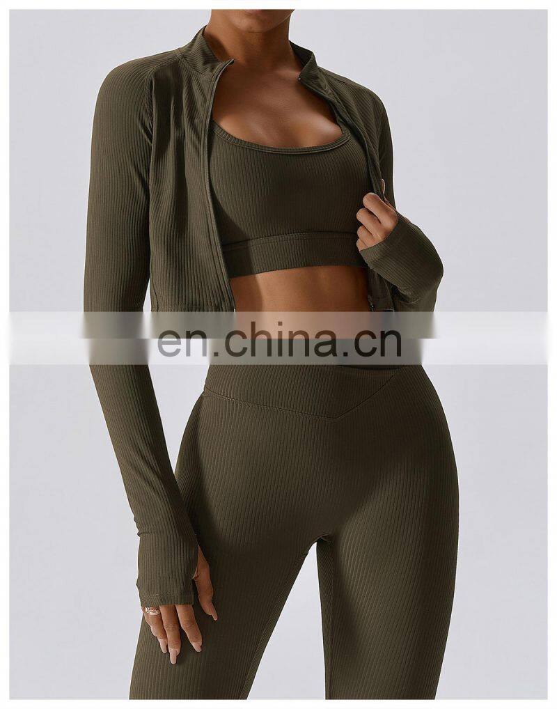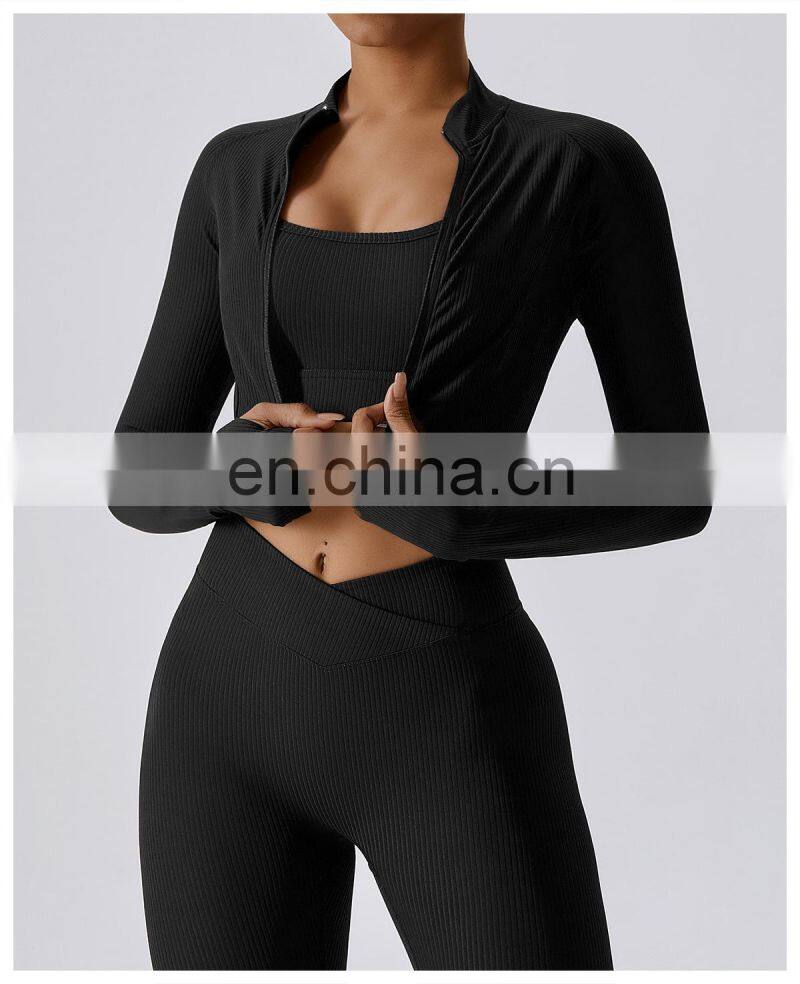 Home > Products > Jackets&Hoodies > Quick-Drying Long-Sleeved Crop Yoga Jacket Workout Wear Women Zipper Jacket Slim Fit Gym Fitness Ribbed Short Yoga Jackets