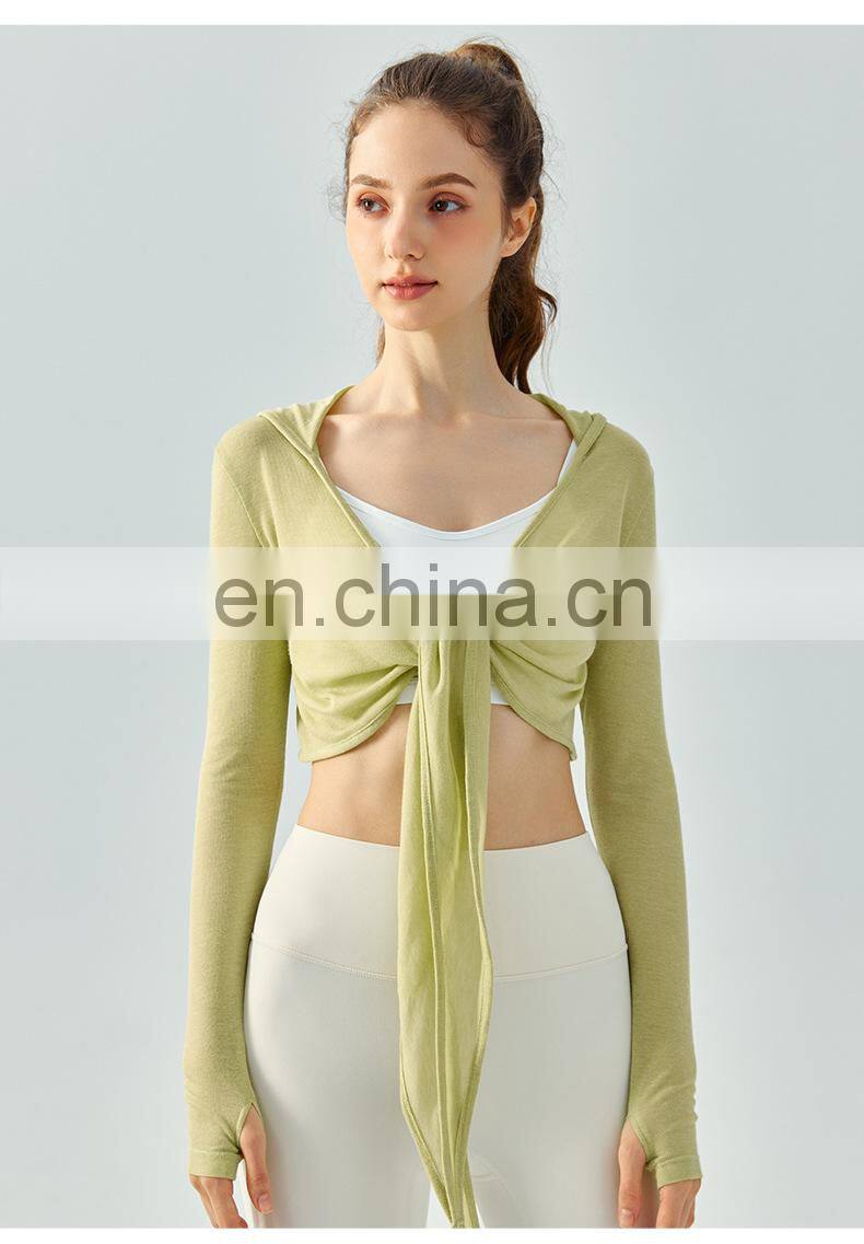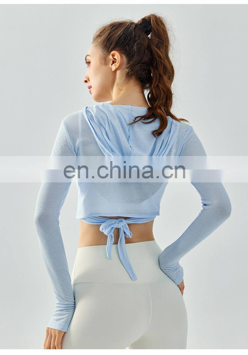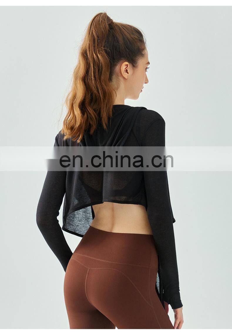Workout Crop Top Wholesalers Gym Wear Quick Dry Long Sleeve Sun Protection Women Cropped Hoodies Sweatshirts With Thumb Hole