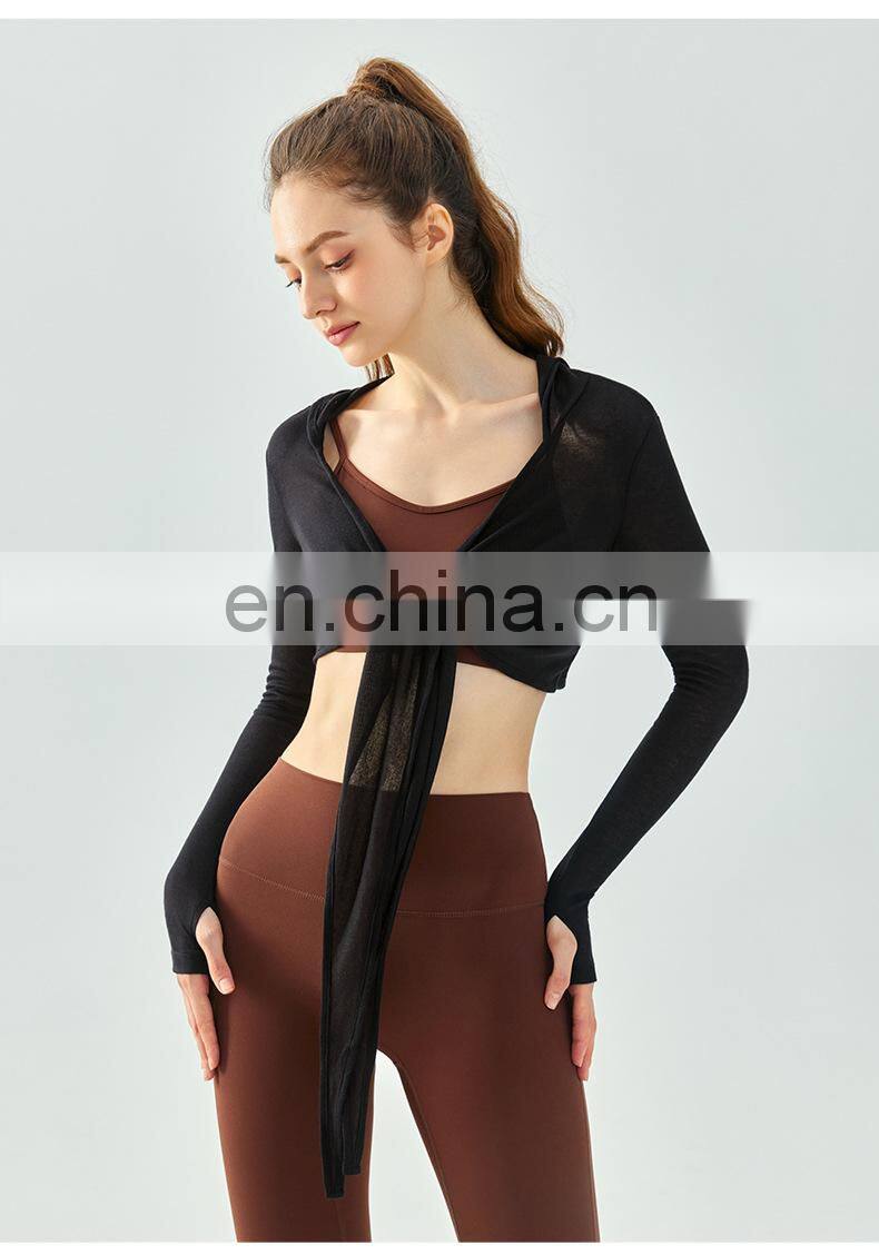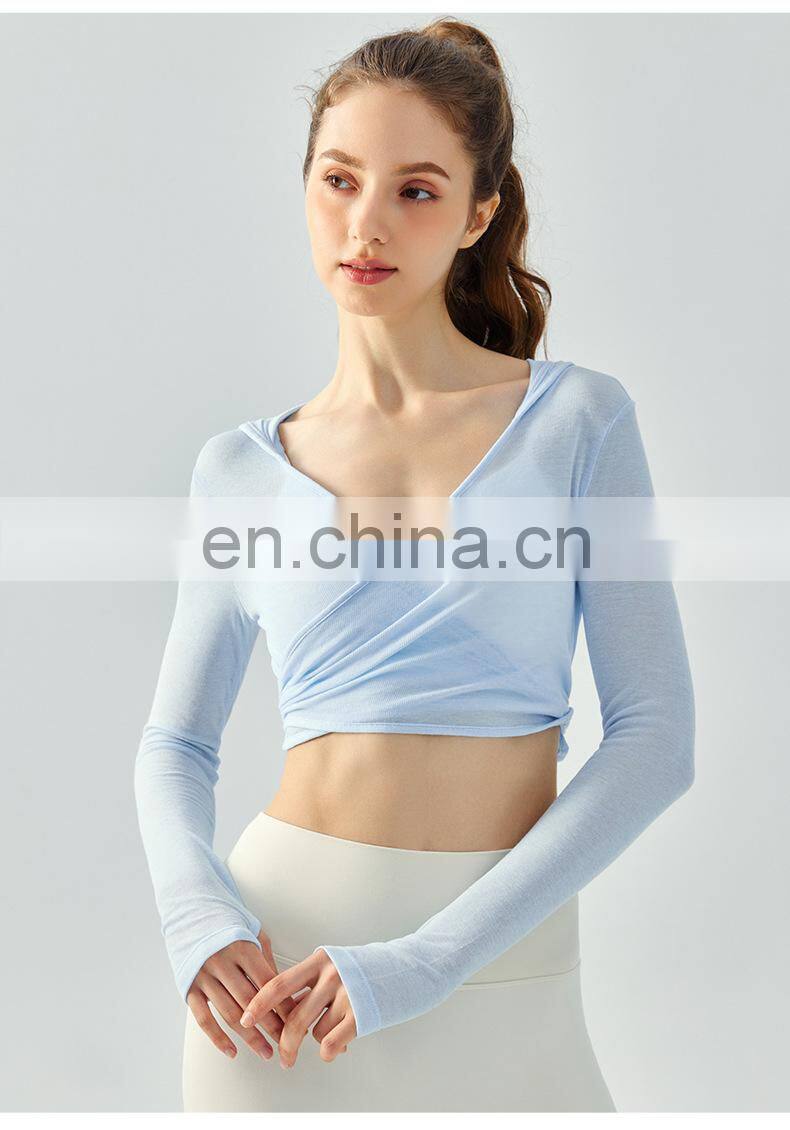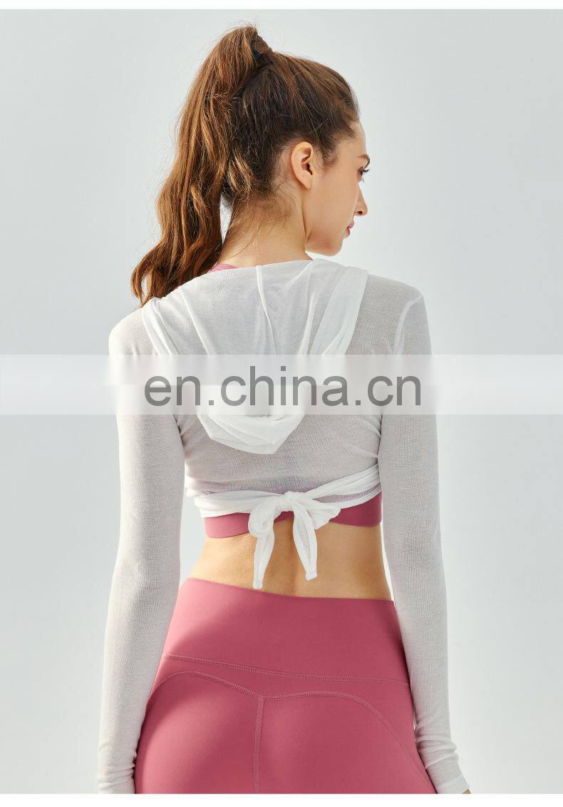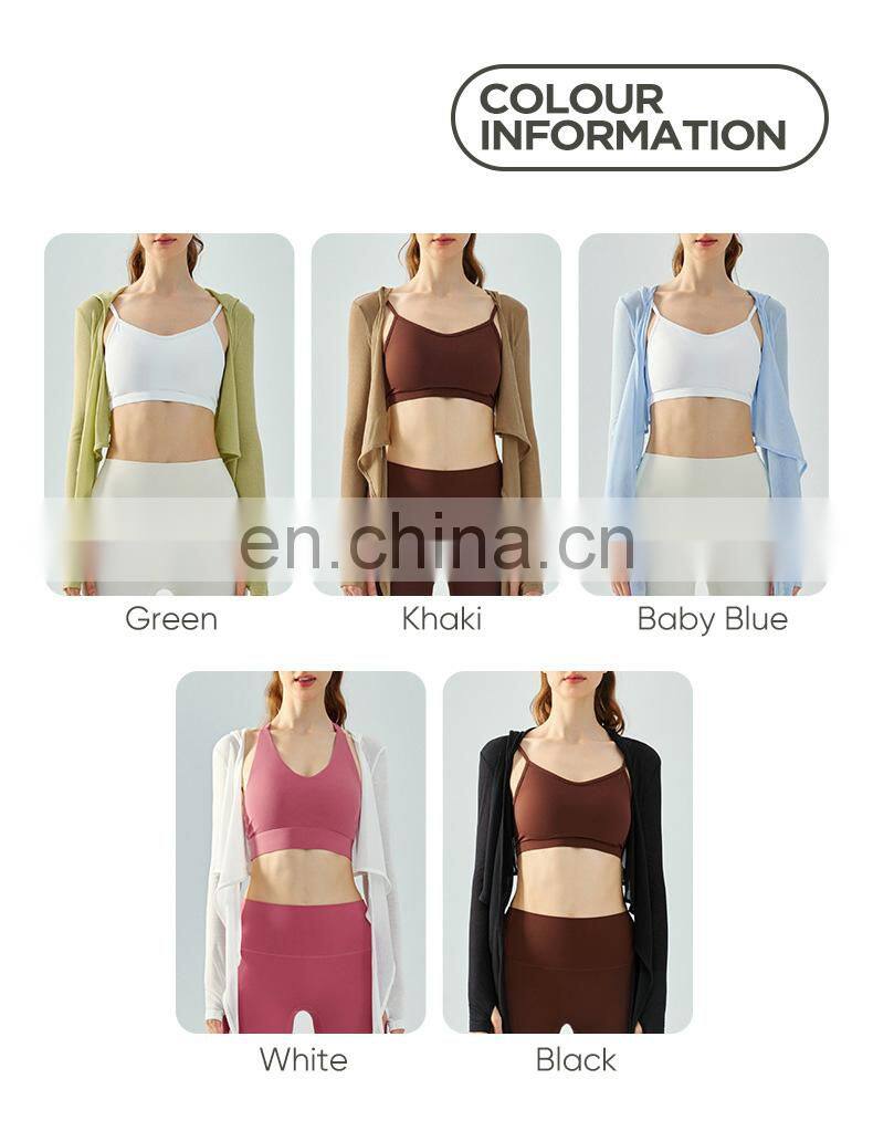 Workout Crop Top Wholesalers Gym Wear Quick Dry Long Sleeve Sun Protection Women Cropped Hoodies Sweatshirts With Thumb Hole