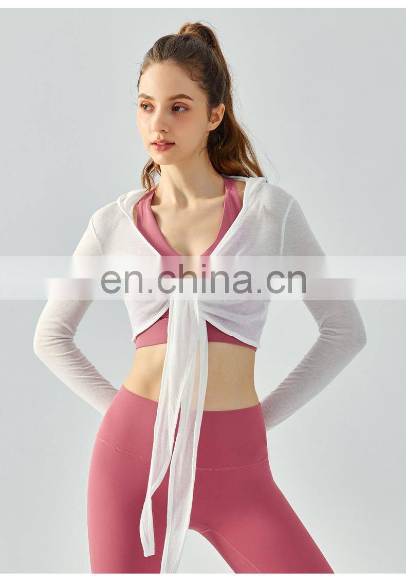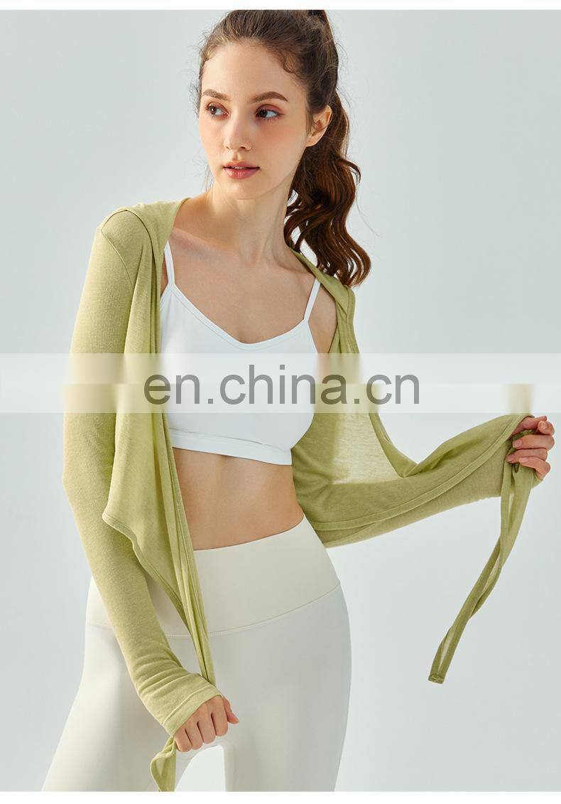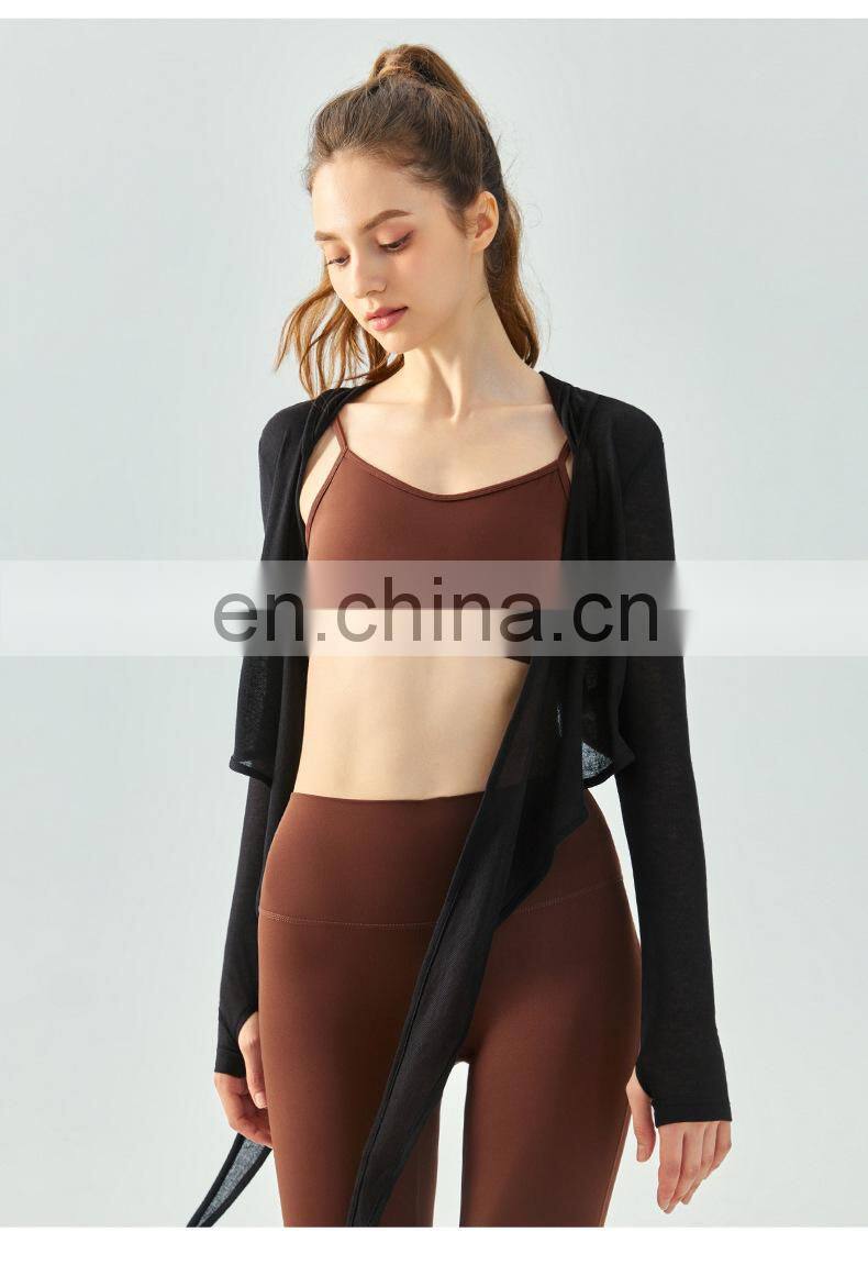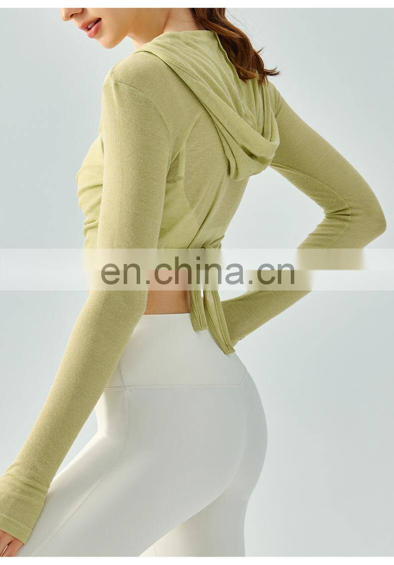 Wholesale Activewear Custom Running Workout Sports Wear Gym Fitness Long Sleeve Zipper Drawstring Jackets Women Yoga Jacket