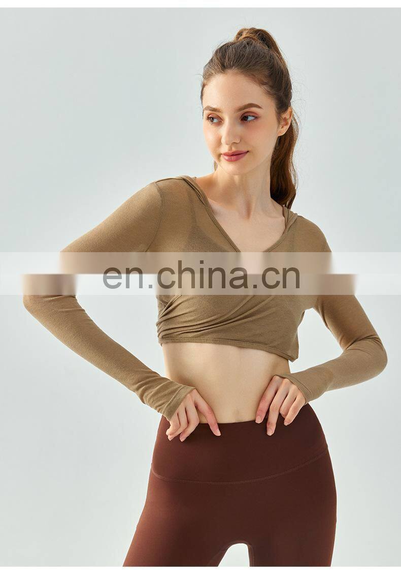 Wholesale 2024 High Quality Fashion Ladies Long Sleeve Workout T Shirt Custom Sports Crop Top Yoga Jacket For Women