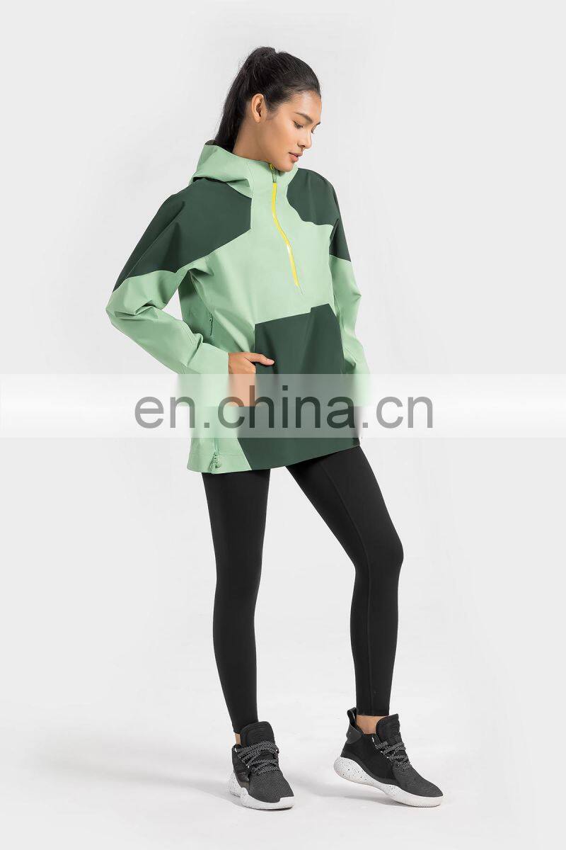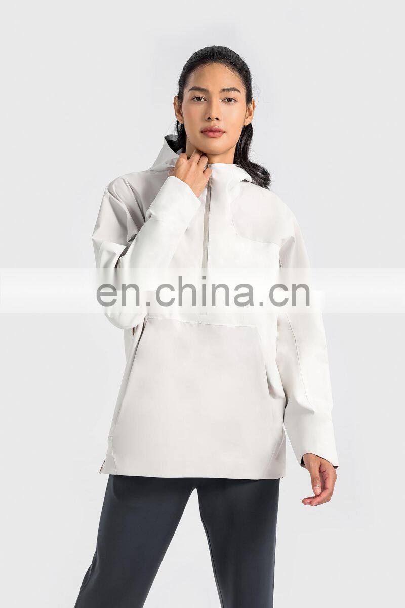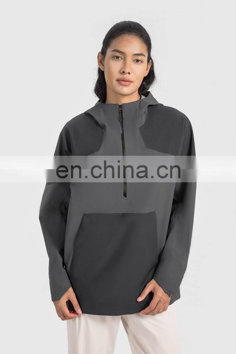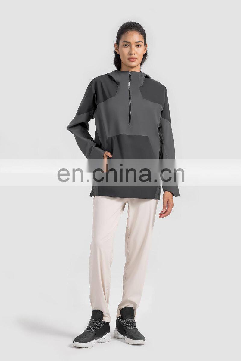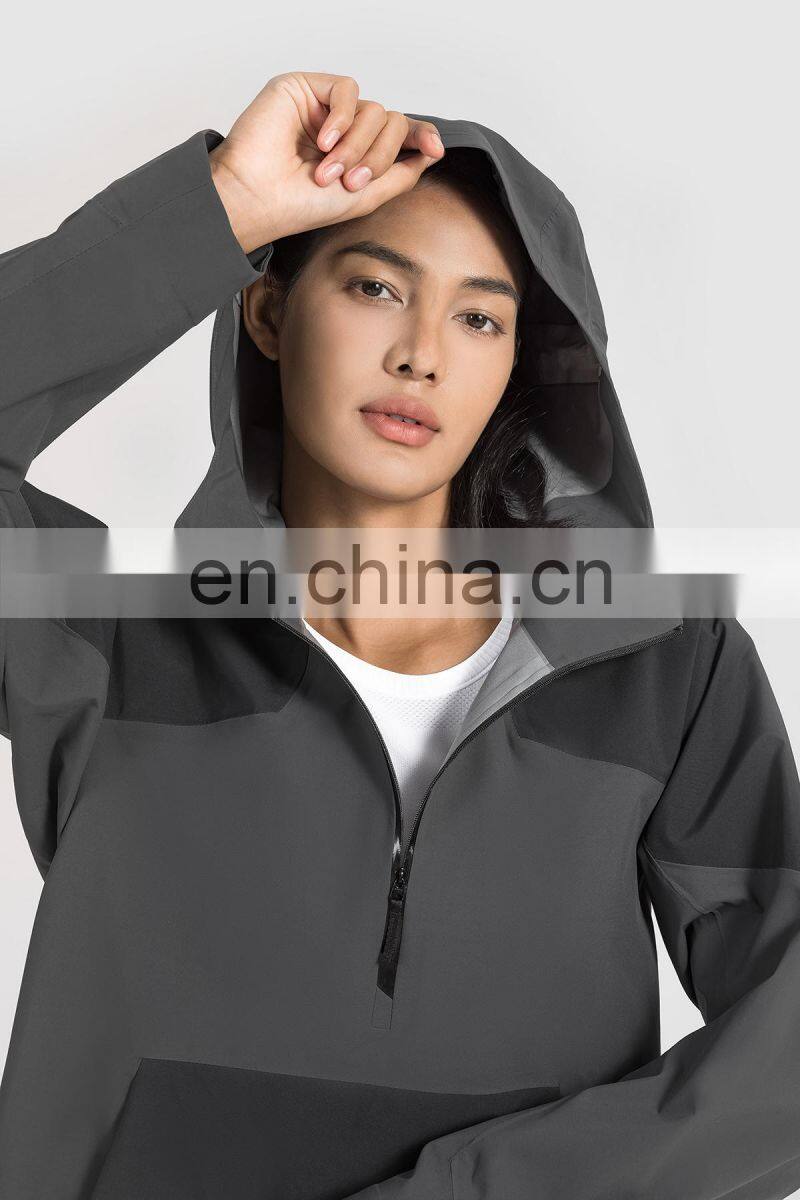 High Quality Women Half Zip Front Pocket Hooded Jackets Windbreaker Waterproof Gym Clothing Outdoor Running Hiking Pullover Tops